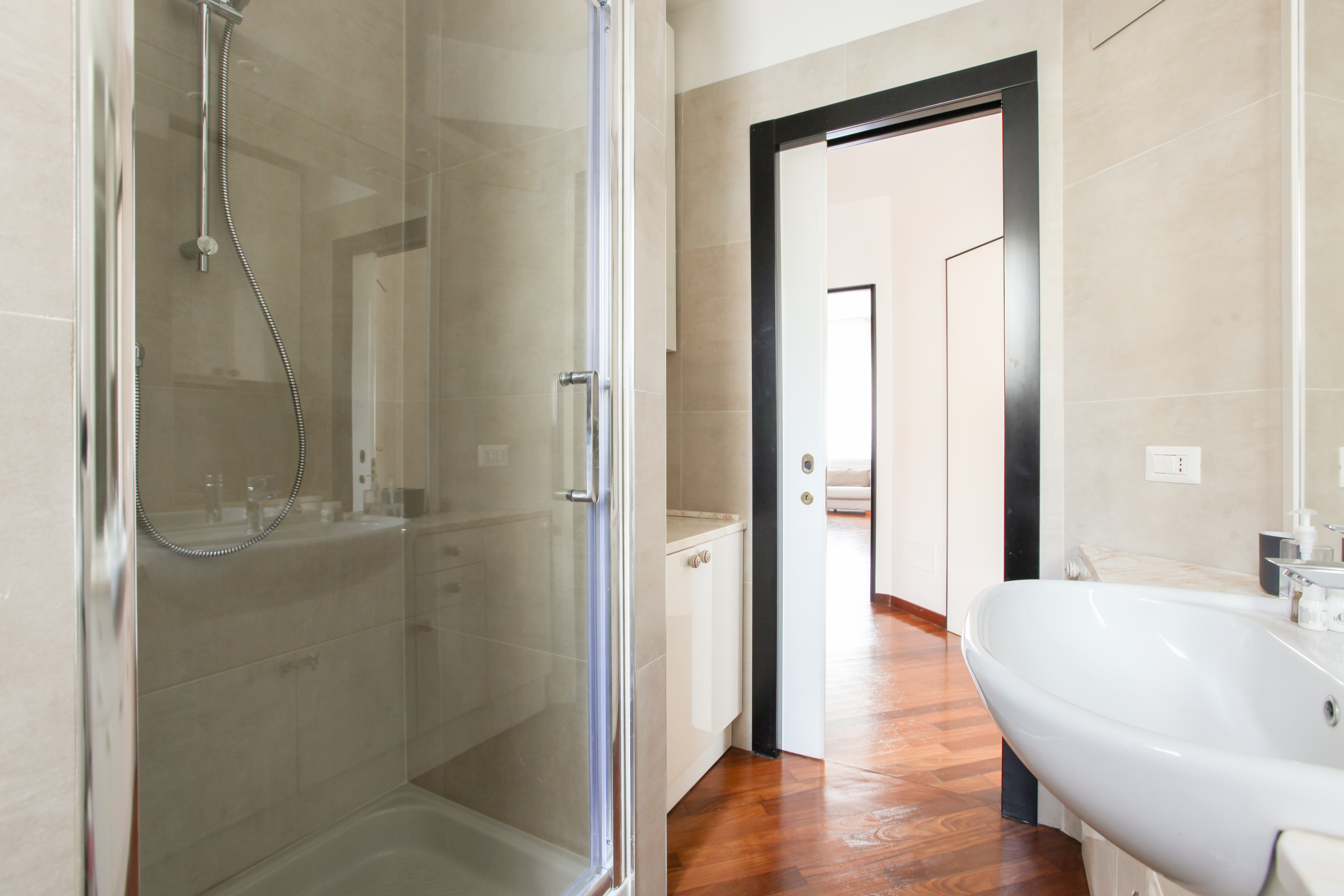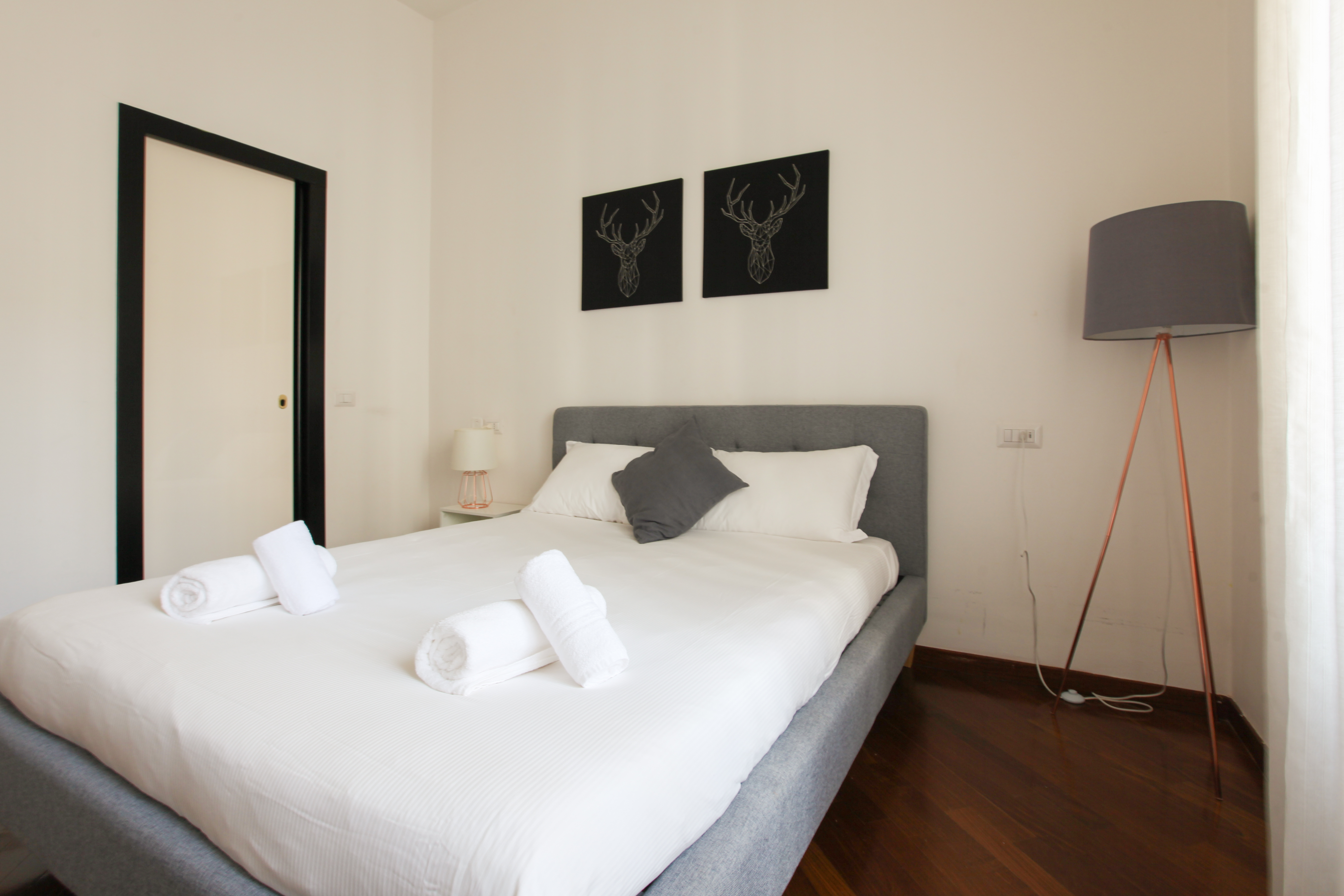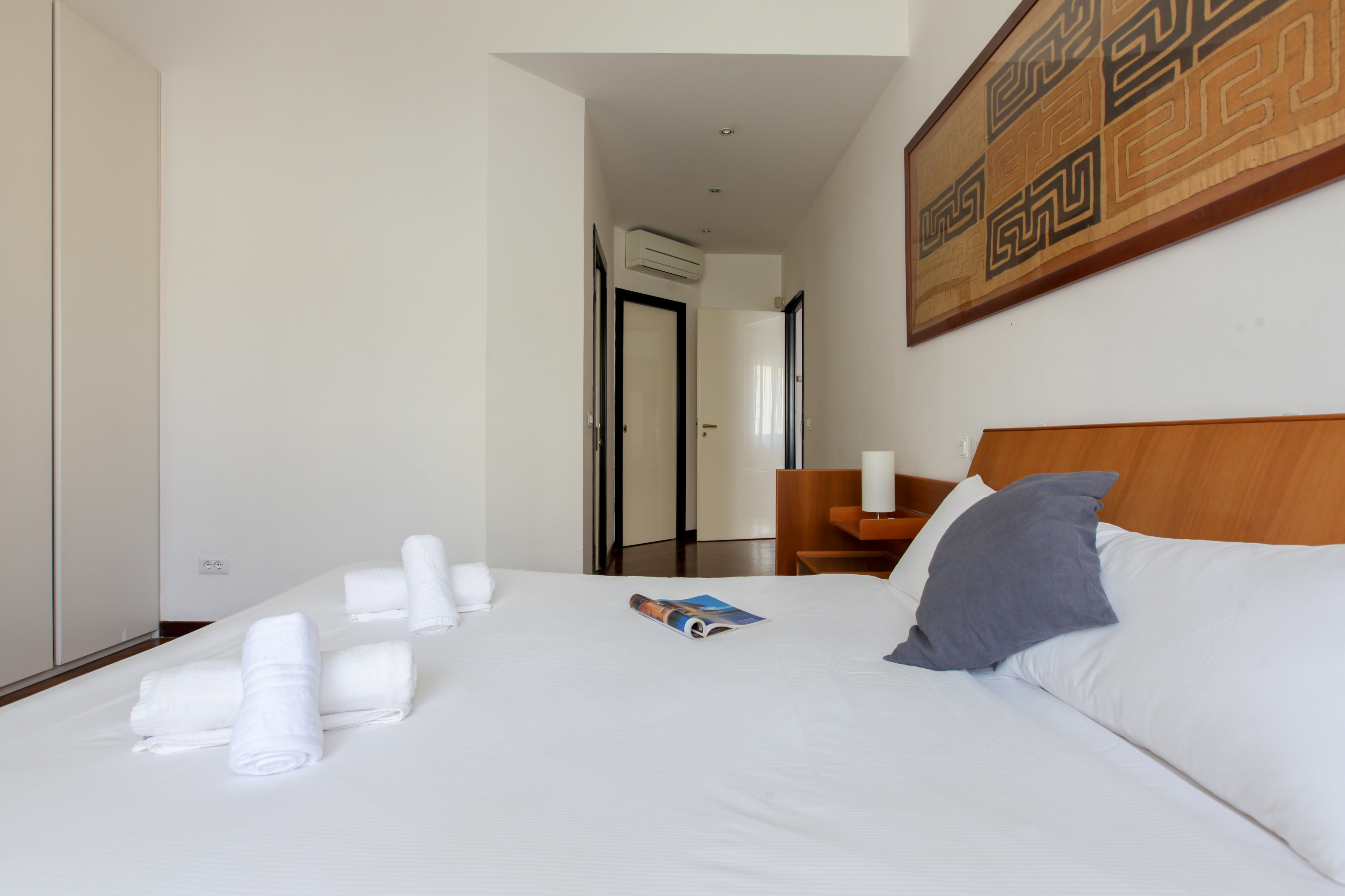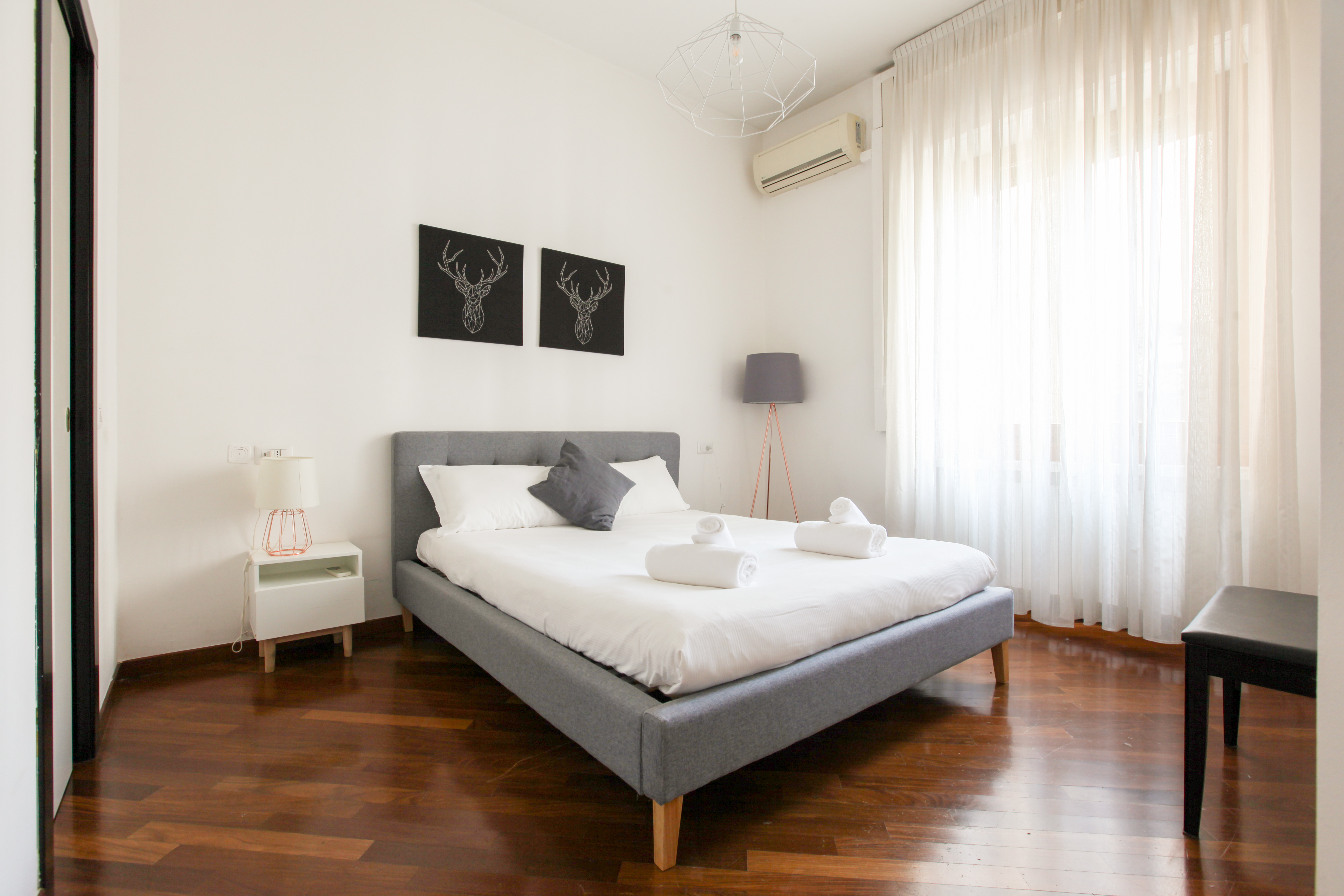All but a five-minute walk to the Corso Venezia – part of the city's upscale Quadrilatero della moda shopping district – this enviable apartment sits right at the heart of the fashion hubbub. Locally, the surrounding area is lovely, benefitting from calm squares, grand architectural statements, and the historic centre is easy to get to on foot – the Duomo di Milano is a twenty-minute stroll away. Back home, you'll find a bright and roomy living space with light neutral tones, soft thoughtful furnishings, chic replica prints and a stylish Castiglioni lamp. The kitchen is colourful and uplifting, with pops of red, plenty of sunlight coming in through the window and a charming dining spot to enjoy breakfast while planning out the day's trips. The bedrooms have their own personalities, with a children's bunk-bed room that will quickly put the kids at ease.