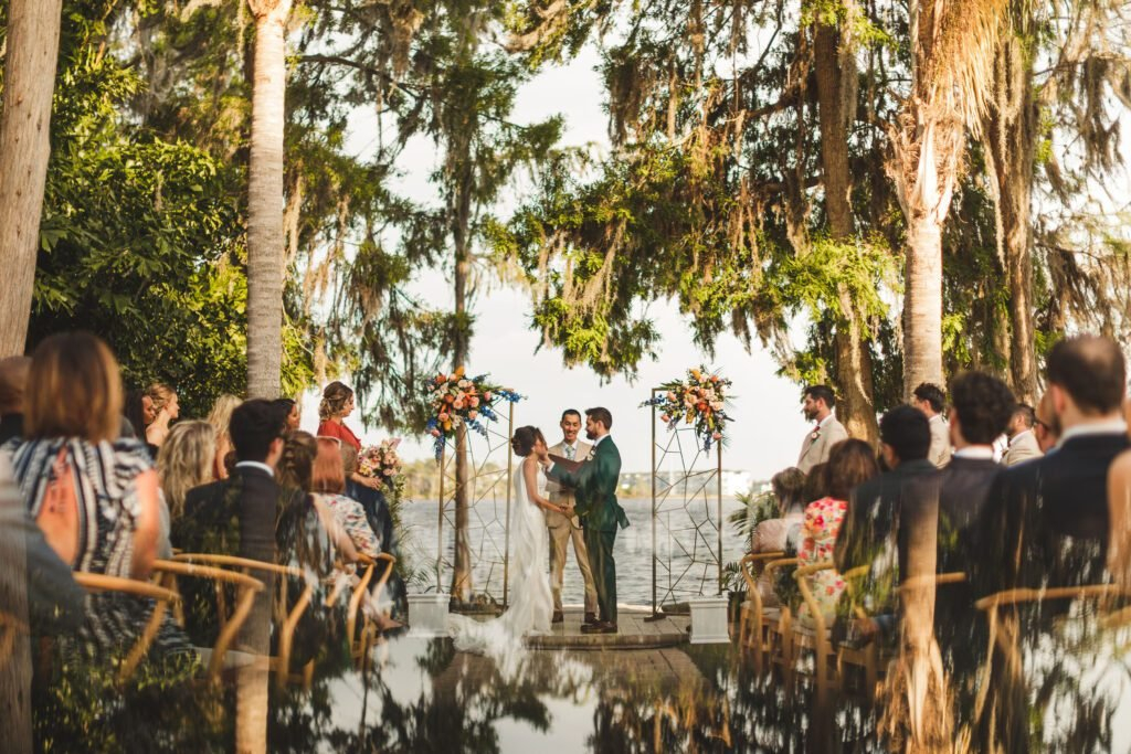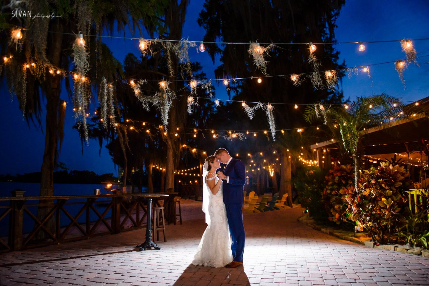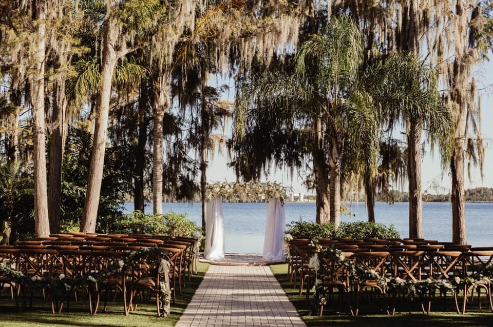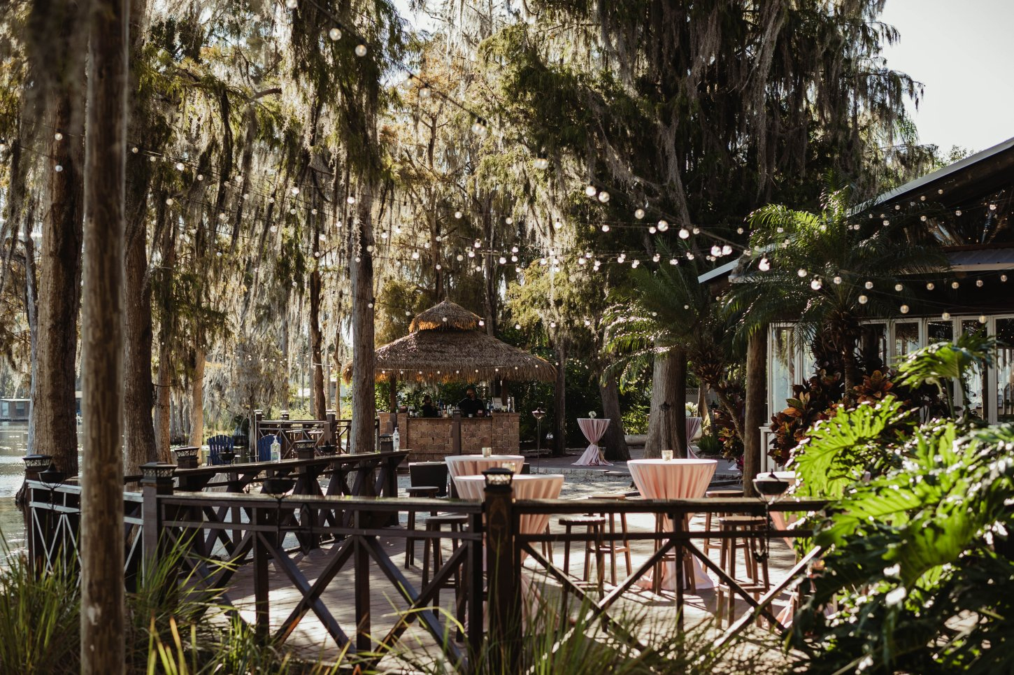 The natural and scenic beauty of Lake Bryan creates a wonderful backdrop for the ultimate wedding or event in paradise! Our venue truly is a hidden paradise in Orlando, completed with a tiki bar, twinkle lights and tiki torches.
