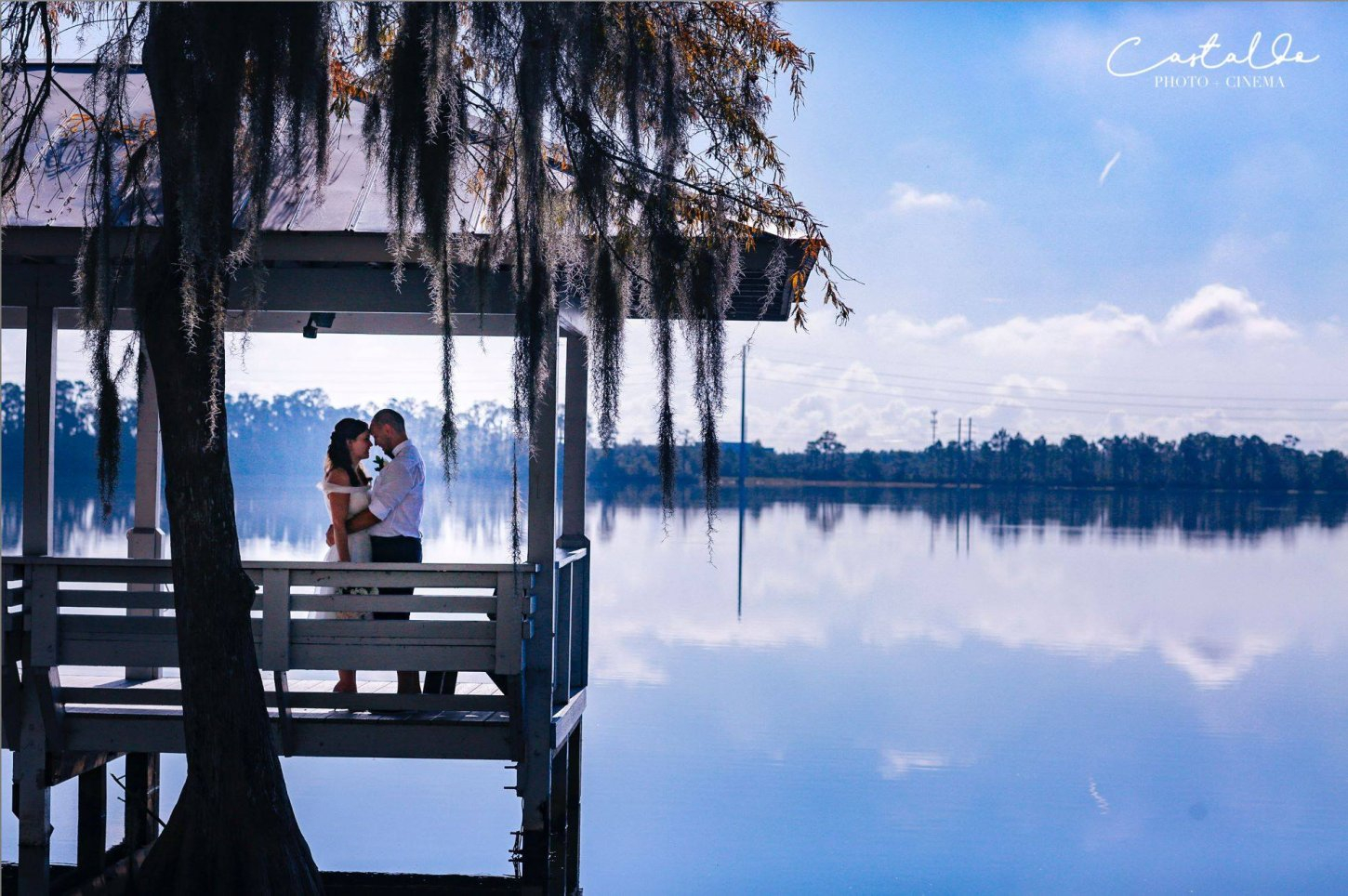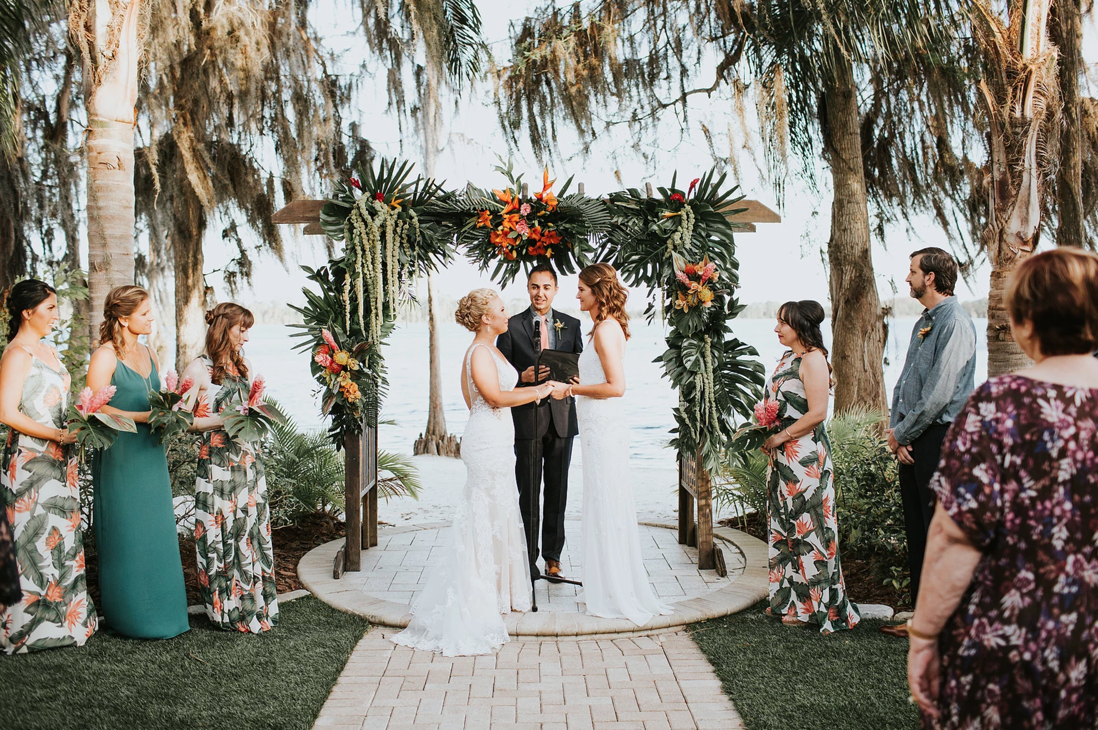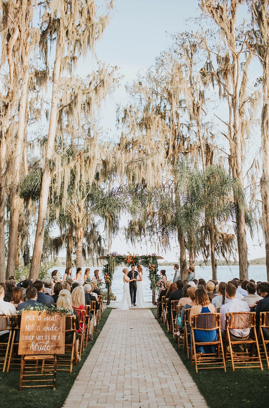 The natural and scenic beauty of Lake Bryan creates a wonderful backdrop for the ultimate wedding or event in paradise! Our venue truly is a hidden paradise in Orlando, completed with a tiki bar, twinkle lights and tiki torches.