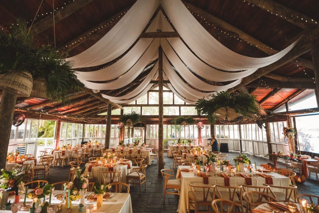 Our venue truly is a hidden paradise in Orlando, completed with a tiki bar, twinkle lights and tiki torches.