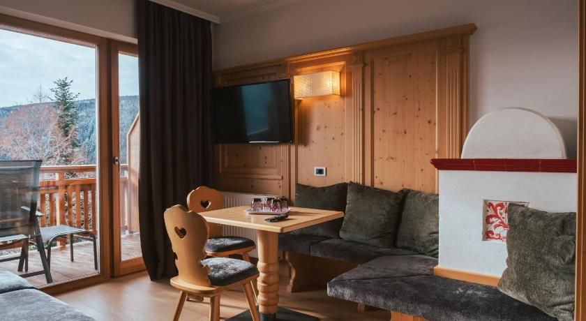 The daily buffet breakfast includes ham, cheese and eggs, followed by fresh fruit and mountain yogurt. The restaurant is open for dinner and specialises in both local and classic Italian cuisine.