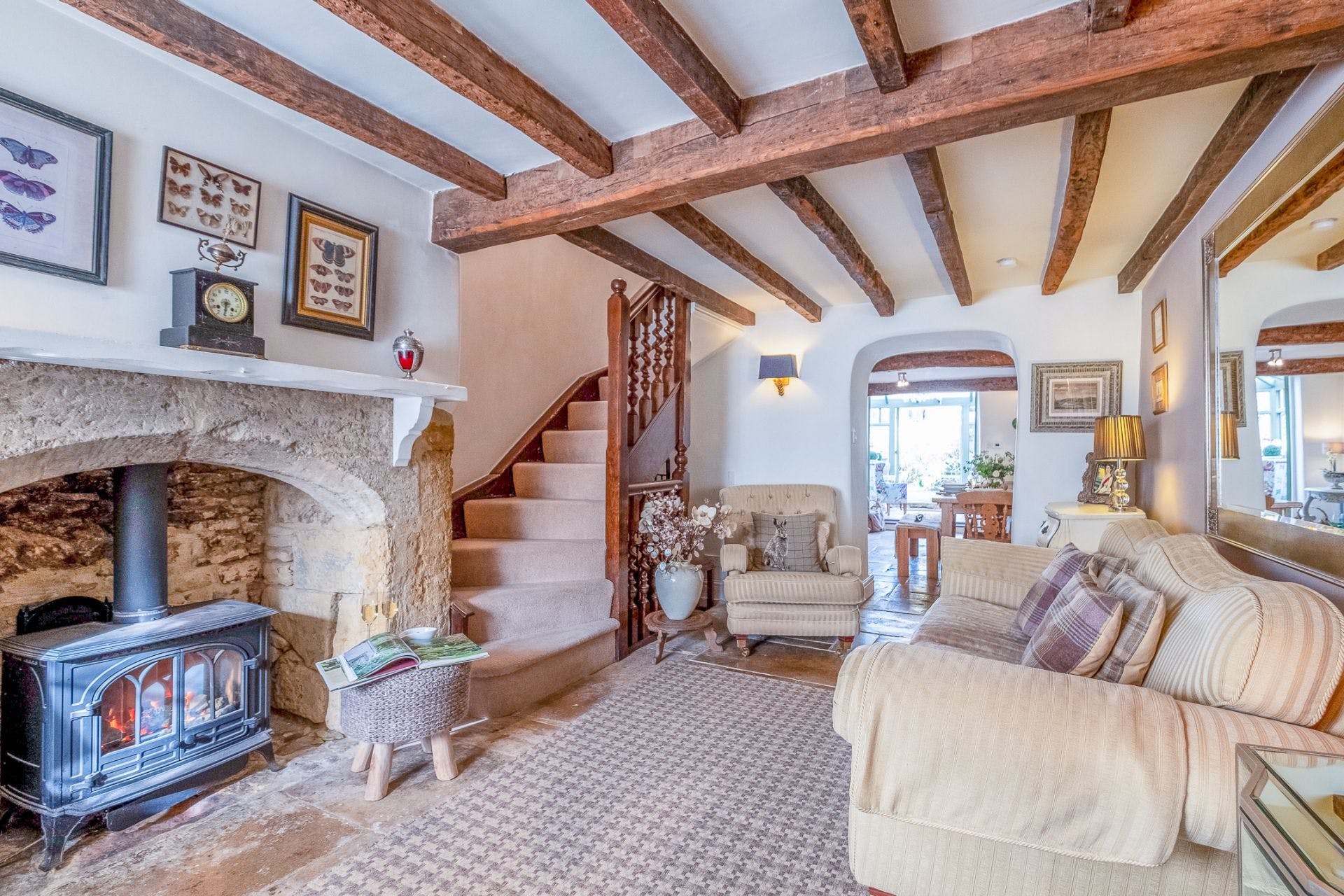 The epitome of cosy, this stunning country cottage in the heart of the Cotswold is brimming with character. Original features including exposed wooden beams, wood-burning stoves and stone infrastructure contrast with heaps of personality against the otherwise modern interiors.