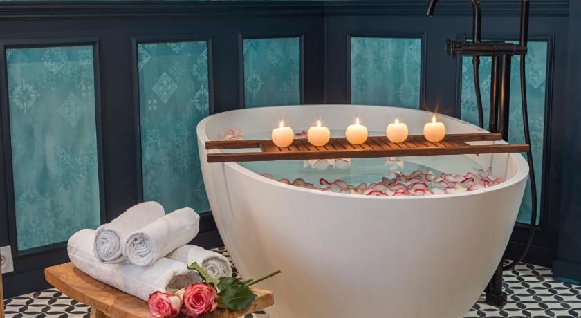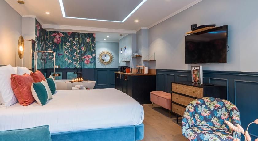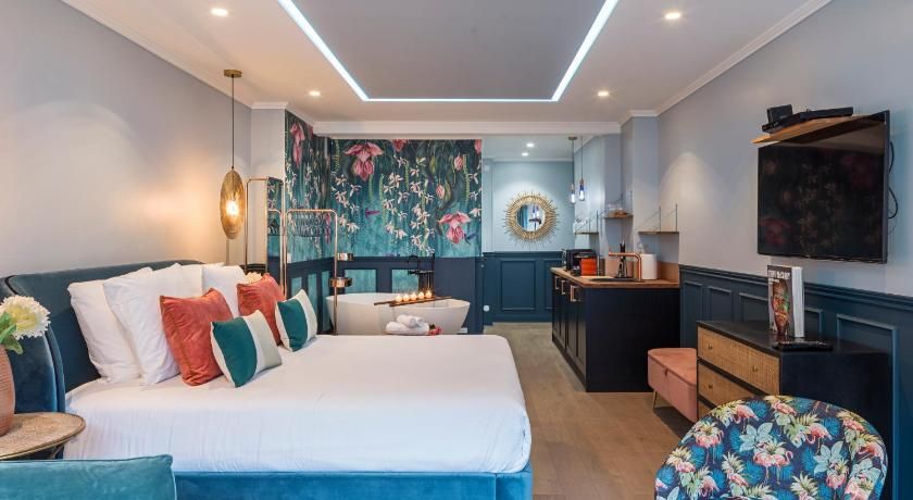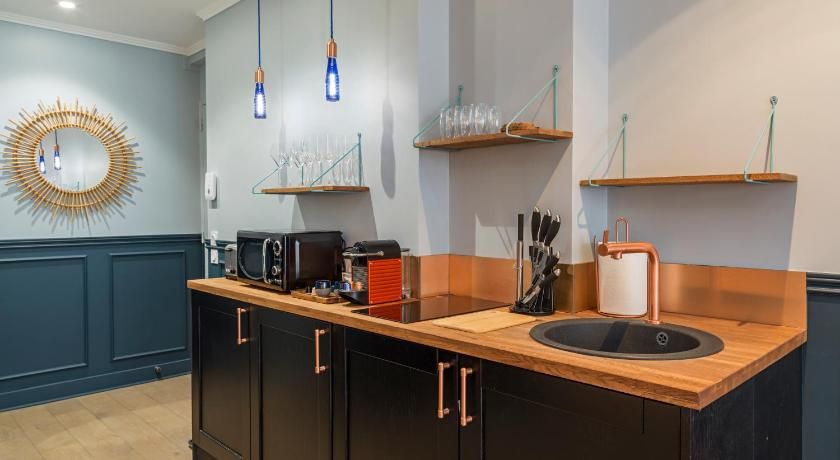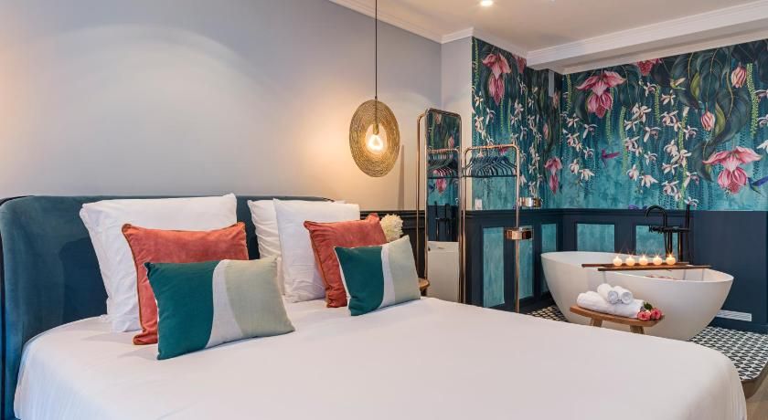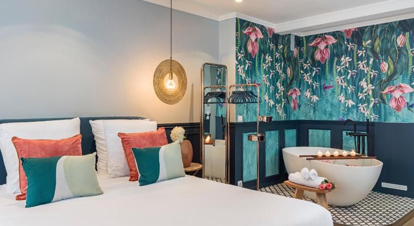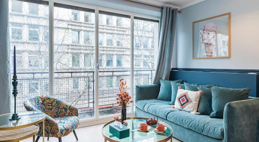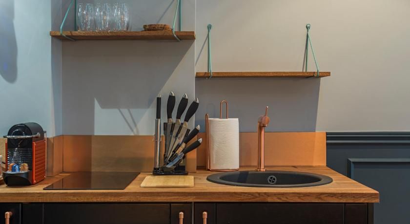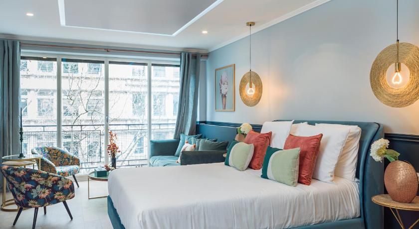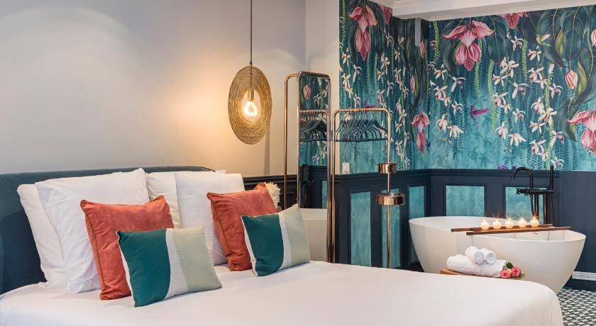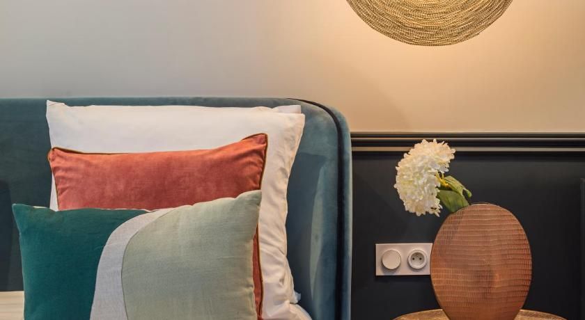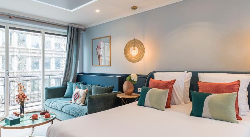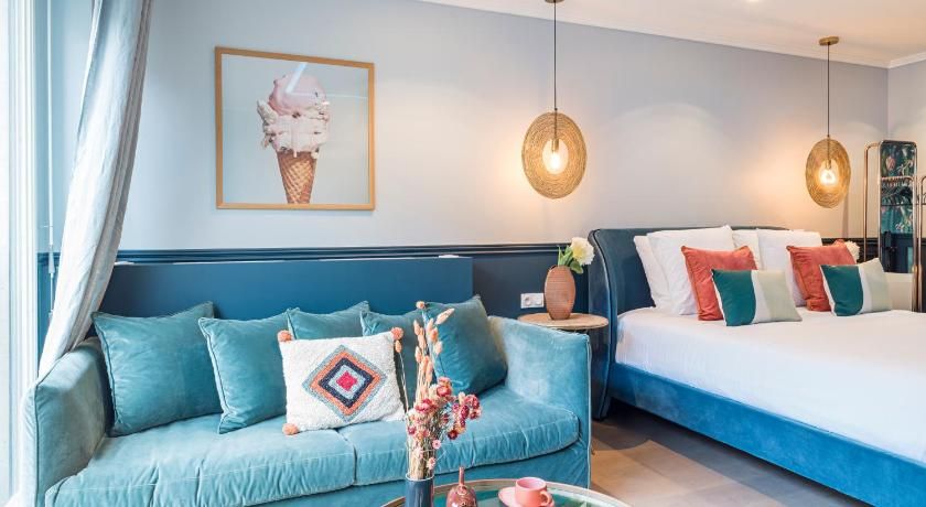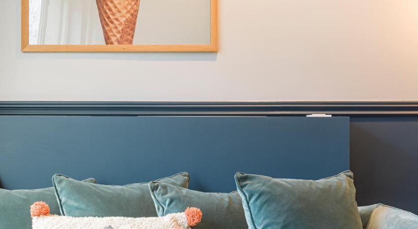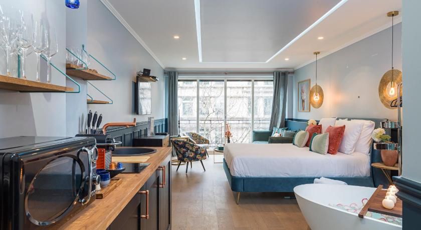 While the classic French features such as the tall windows as well as the original fireplace and gold vintage mirror are very much still in place, contemporary interiors freshen up this luminous apartment with contrasting vibrancy. Fun pops of colour liven up the white walls through tasteful artwork centrepieces in every room. We particularly love the living room set up, where the colourful sofas and rug complement the same hues seen in the prints on the wall. And with an array of art galleries within ten minutes walking distance (including the Pompidou centre, just seven minutes away) – there's no better spot for art lovers than this home. Steps away from the famous rue des Rosiers and its charming boutiques and cafe culture, you'll be in the centre of it all in this prime Marais location. Yet feel rest assured in knowing that your apartment is situated offset enough to enjoy a bit of peace at the end of the day should you need it.