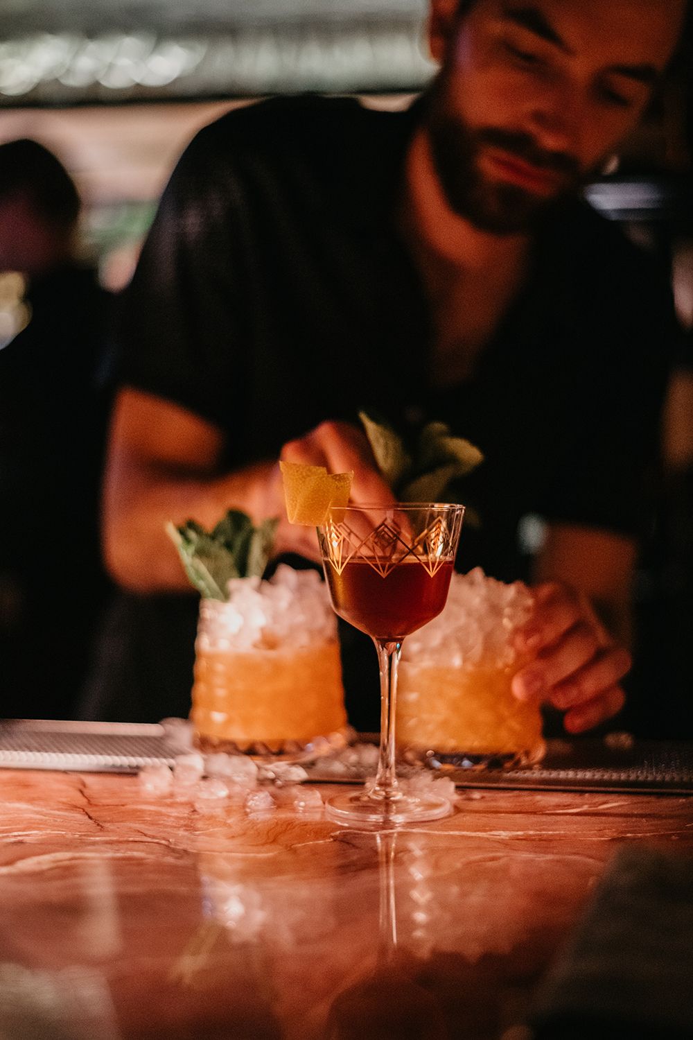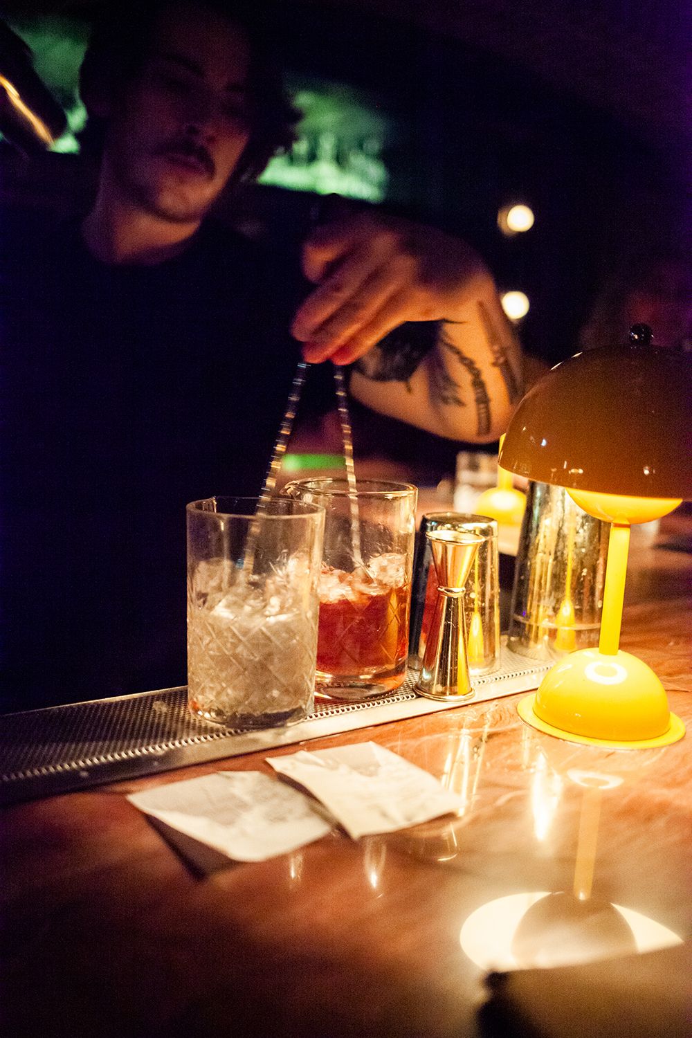 Prickett Richard is a cocktail bar located in the underbelly of Comery Block Barbecue. You’ll find the entrance in the back alley just off the corner of 17th Avenue and 6th Street SW. Look for the steel door and head inside. You’ll see a kitchen on your left, don’t go in there, just head downstairs and through the wooden clad door straight ahead. Reservations are recommended, but walk-ins are available based on availability.