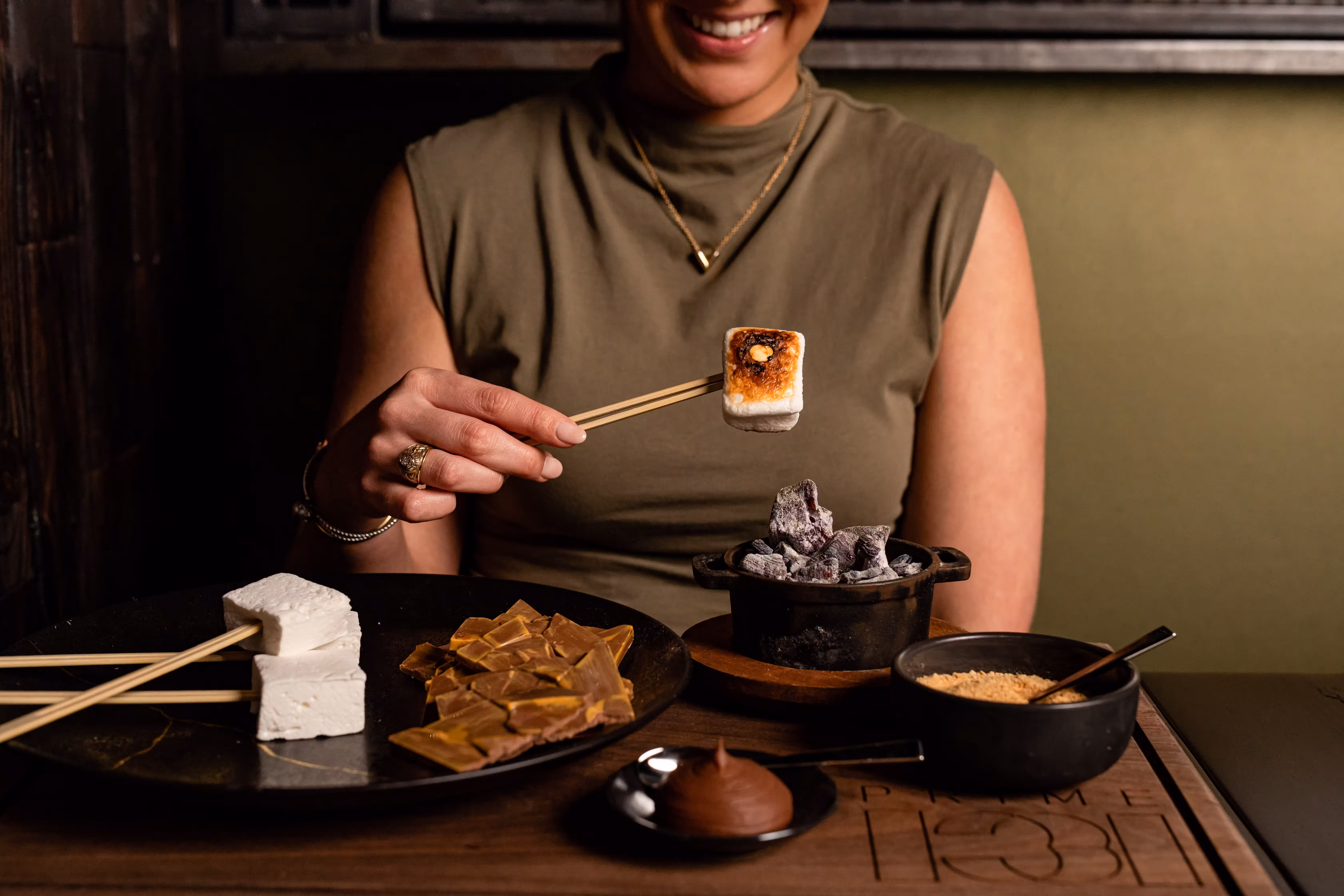 A Berg Hospitality Group original concept, Prime 131 is a live-fire steakhouse and sushi bar within a revamped industrial space at The Docks at Timbergrove. Evoking the electric ambiance of New York’s chic yet edgy Meatpacking District in the early 90s, Prime 131 ignites a fresh dining experience in Houston where the artistry of grilling takes center stage. A protein-forward concept with Korean and Japanese influence, Prime 131 creates a completely unique meat experience where diners watch their meal be prepared on four central wood fire grills and two Josper charcoal ovens. In addition, a full sushi bar and four Korean barbeque style tables offer curated experiences featuring some of the most exclusive cuts in the world.