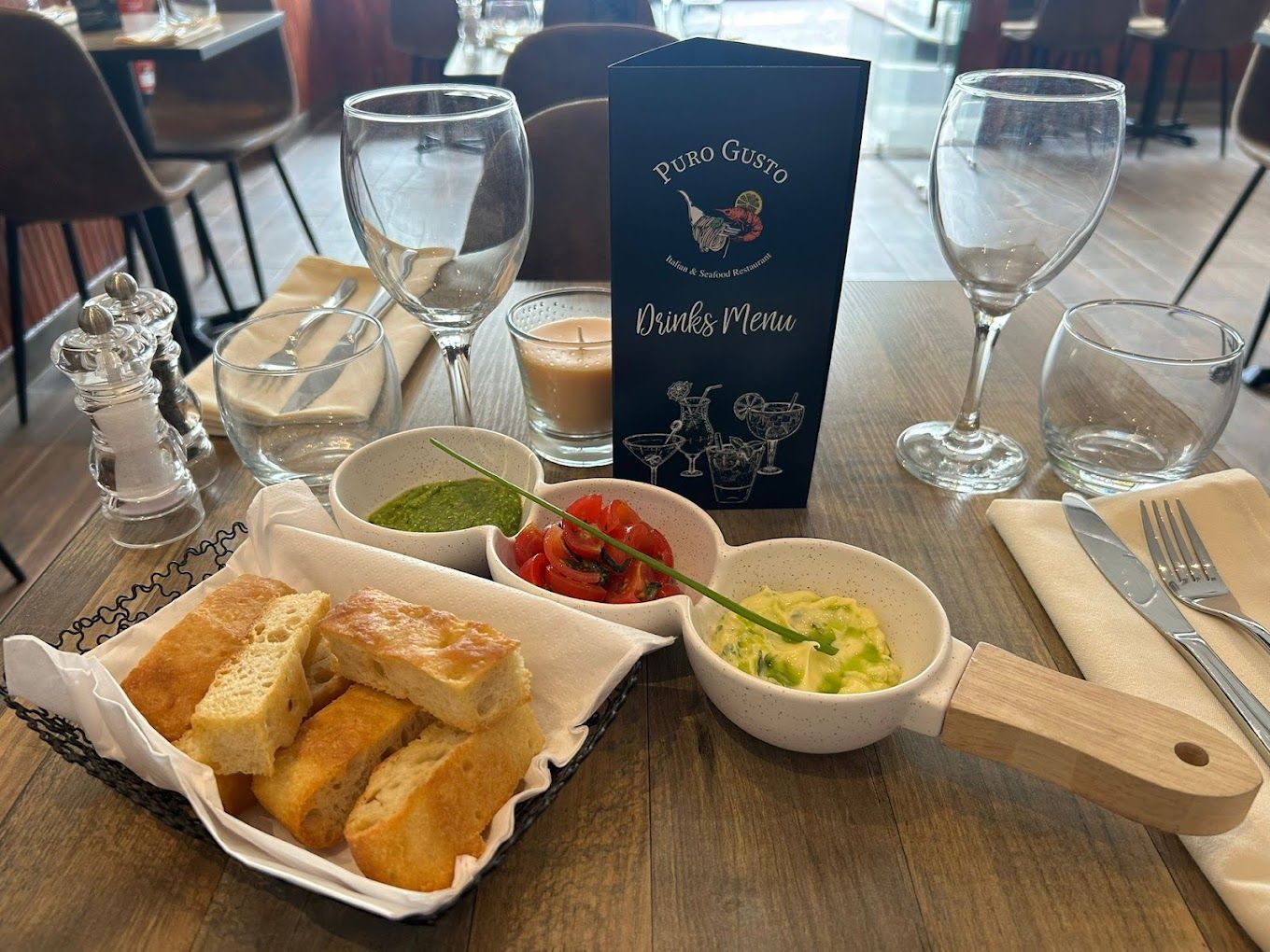 Italian and Seafood Restaurant.New opning in Bournemouth.What Puro Gusto is? Simple, a chance to discover the Italian culinary tradition with homemade pasta, local fresh seafood and Italian crued hams.Poducts in our dishes are freshly imported from Italy to ensure an authentic experience.Grew up in a small village next to Florence, Tuscany, the owner and head-chef Erikselda, prepared a menu with her favourite dishes wishing to share the flavours she loves the most.You will have the opportunity to travel the italian flavours just a few minutes from home!So what are you waiting for? Book your table and enjoy the trip.