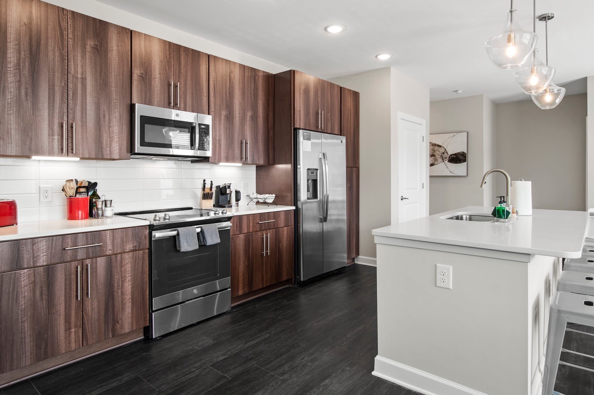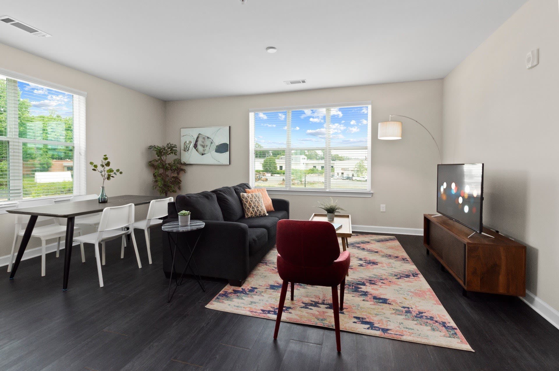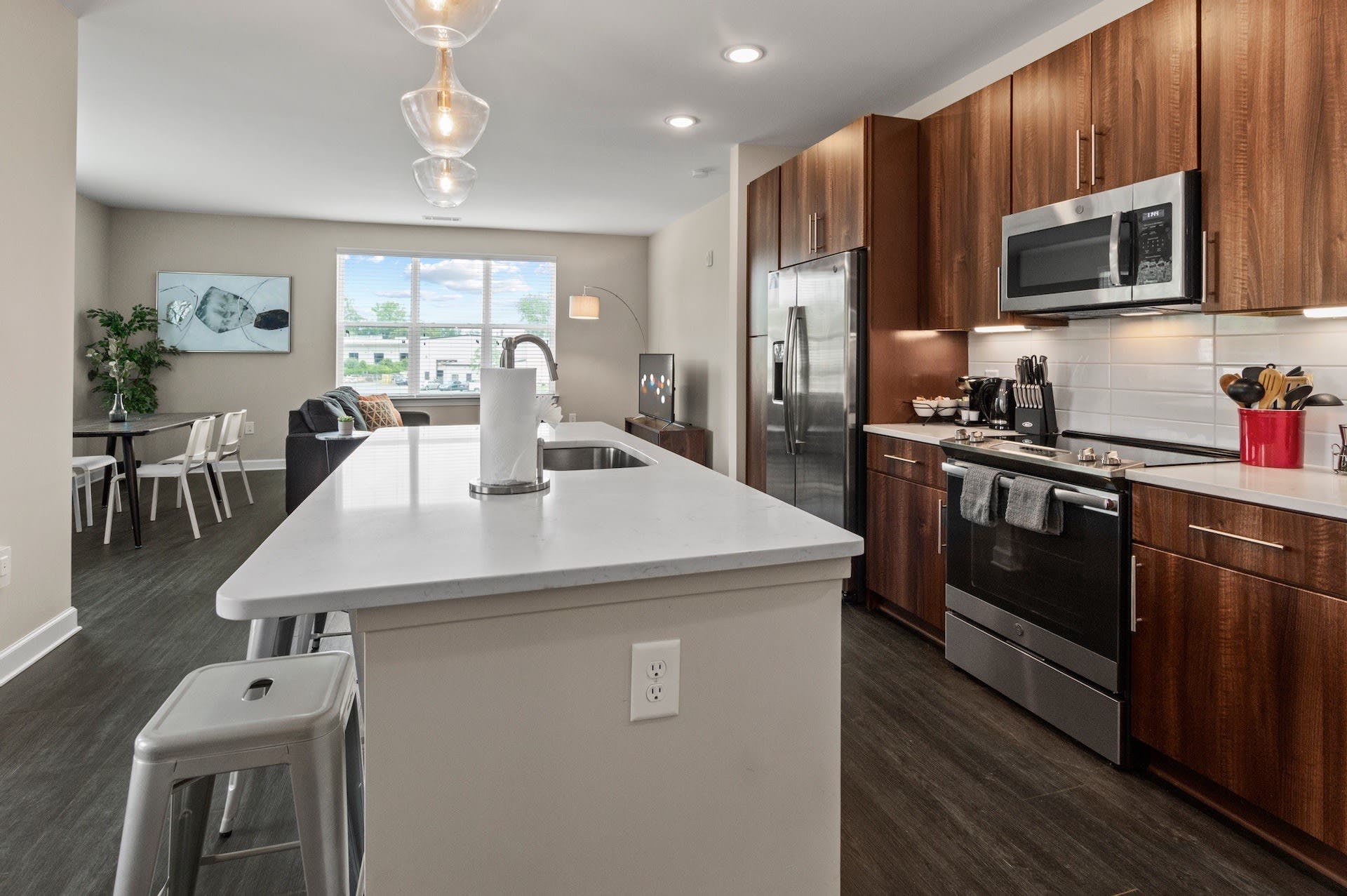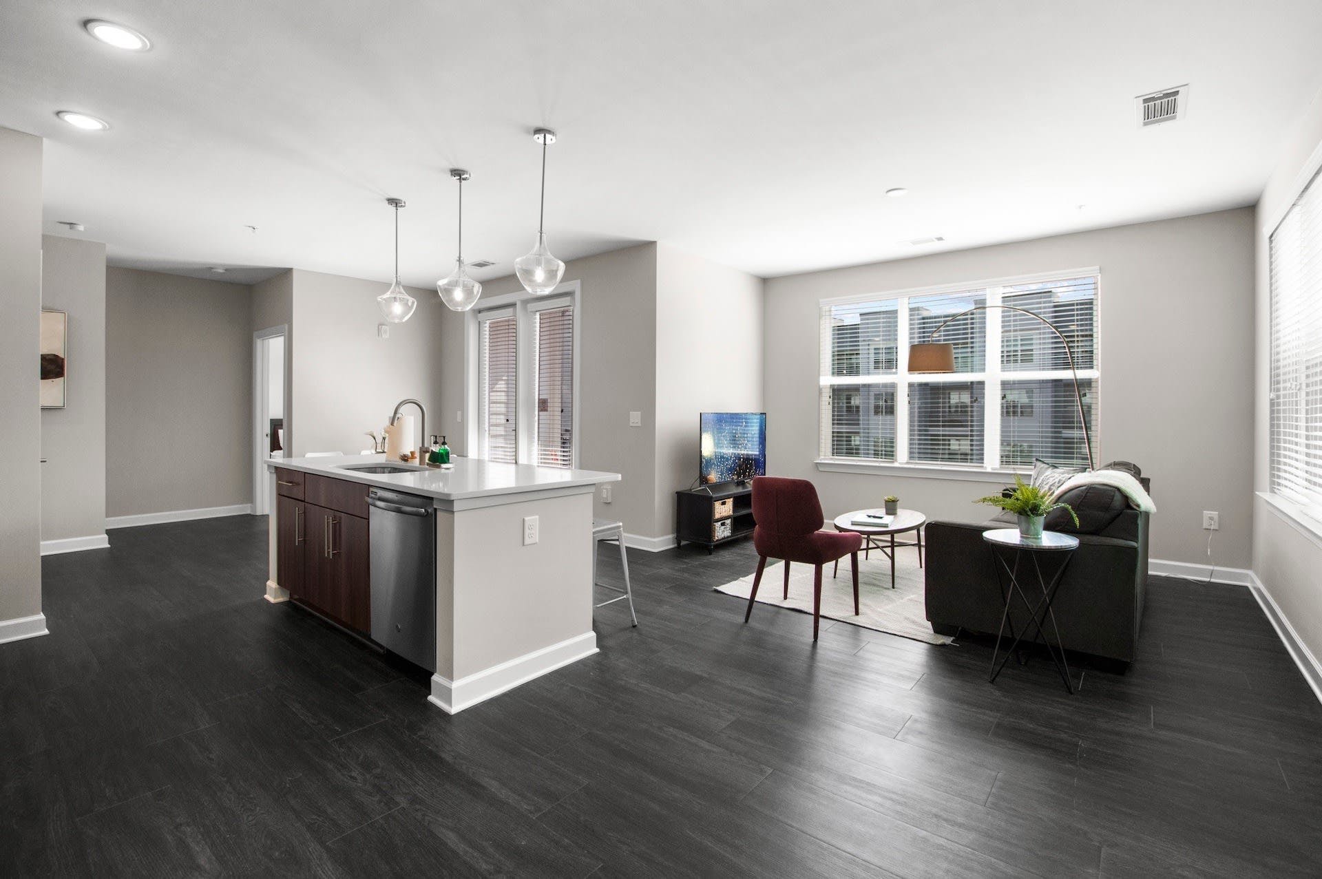 This bright FreeMoreWest apartment is ideally located to explore the Queen City. You’ll be a short stroll away from neighbourhood parks, bars and restaurants, as well as just a ten-minute drive from everything Uptown Charlotte has to offer. Start your day with some laps of the pool, before a day of exploring. In the afternoon, head to the shared lounge and break the ice with residents over a game of pool or table football. This home has everything you need for either a short or long-term stay, including comfortable furnishings, a fully-equipped kitchen, and a stylish breakfast bar where your sous chefs can hang out. Elsewhere, there's a barbecue area to make the most of warm evenings, as well as a business lounge and gym and yoga room so you can keep on top of your work and fitness schedules.