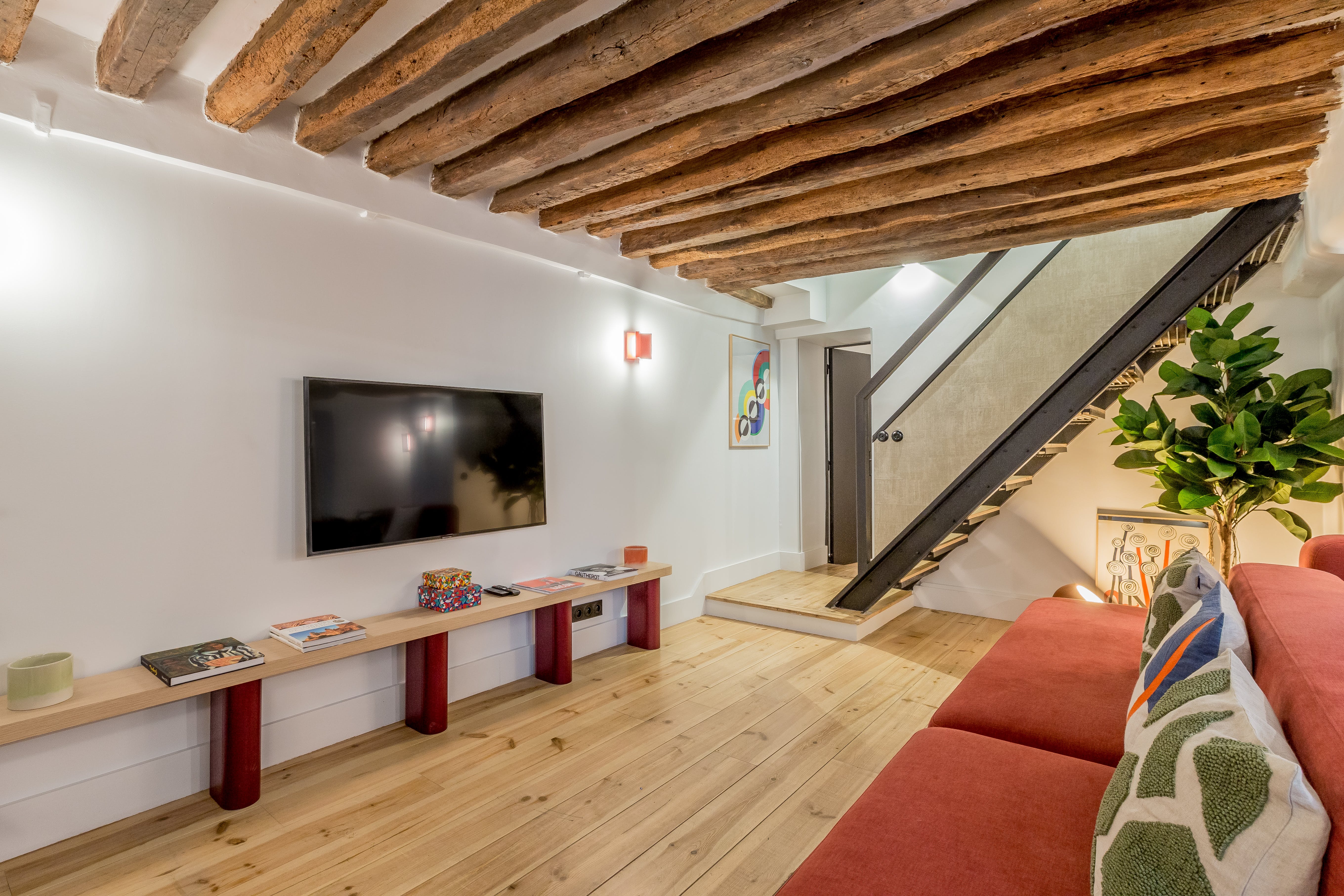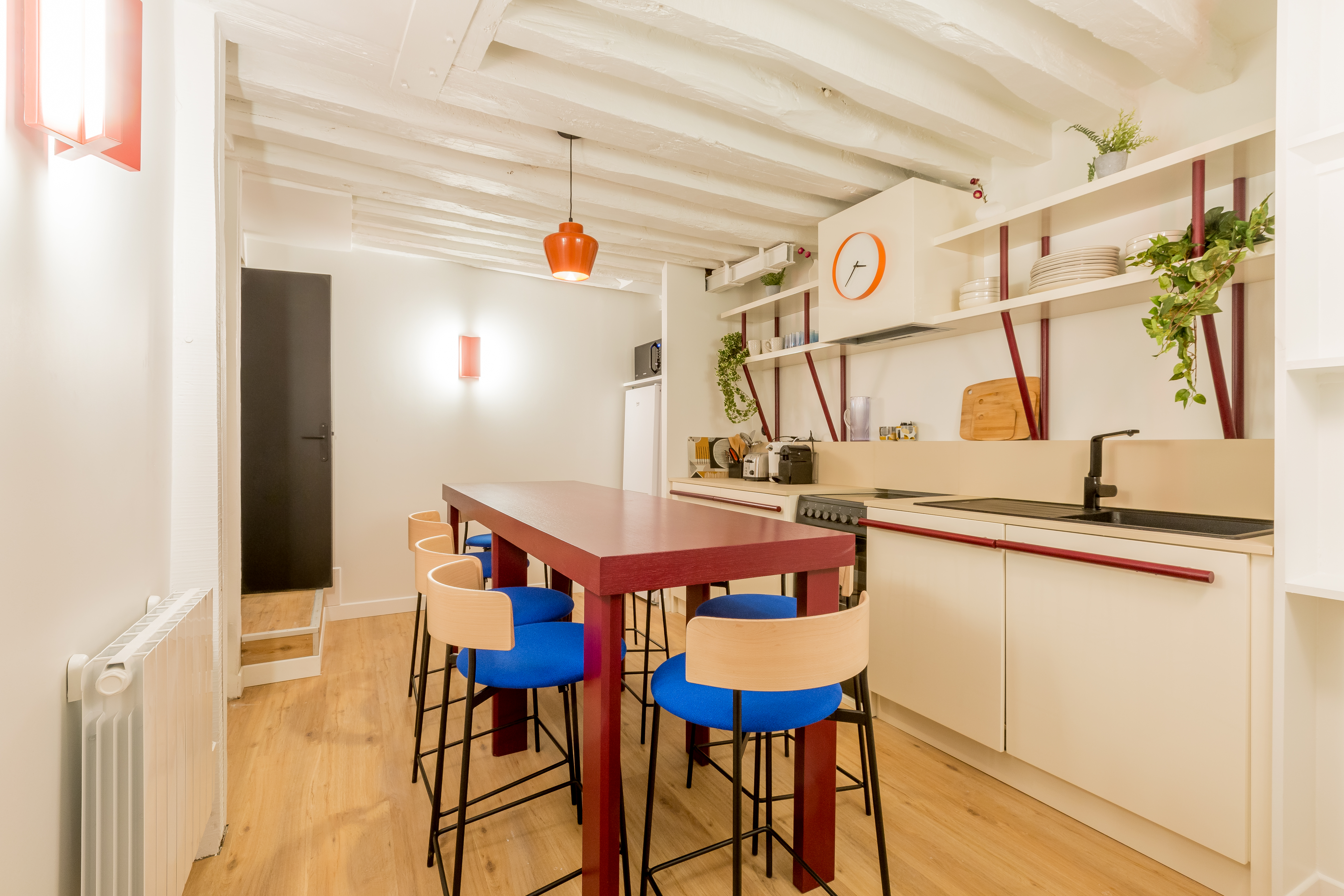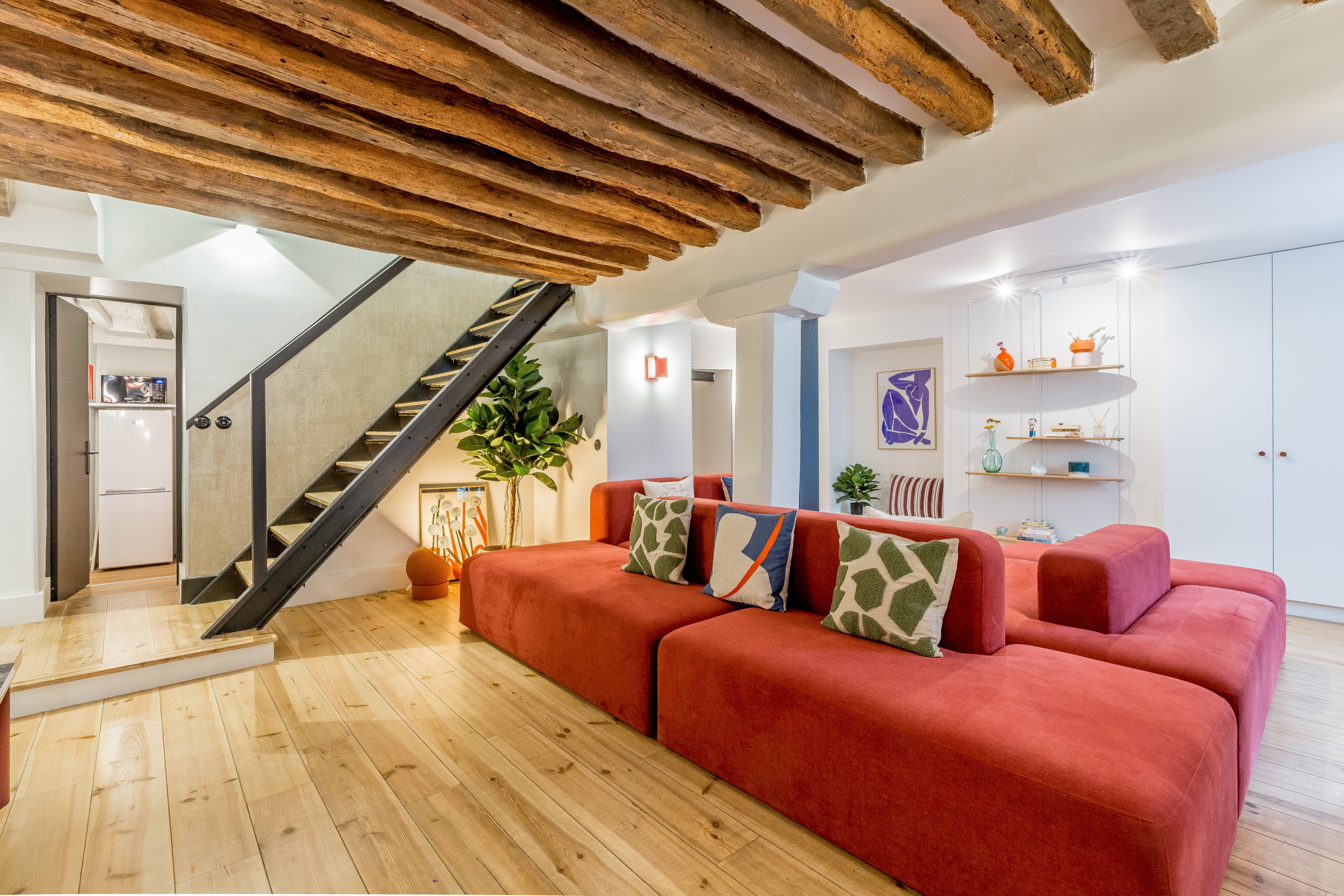 Perfectly combining hotel-worthy amenities with all the comforts of a cosy homestead, this Parisian pad is excellent for a family or group of friends wanting a carefree stay in the city. We love all the little details here, from the toiletries and coffee machine capsules down to the sumptuous super king-sized beds and desks in every room, just in case someone needs to do a bit of work. After a busy day exploring, sink into the plush red sofa and unwind for a bit before rustling up a delicious dinner in the stylish kitchen. Or, if you don't feel like cooking, there are plenty of excellent eateries right on your doorstep. You're in Le Marais, after all – it's one of Paris' coolest neighbourhoods for a reason. Roam the pretty-as-a-postcard cobblestone streets, dipping in and out of independent boutiques, trendy art galleries, artisan coffee shops, chic bistros and gourmet brasseries. Must-see sights like the Louvre and Notre Dame are about a twenty-five-minute walk, and with Temple metro station just five minutes away, getting around the rest of the city is a breeze.