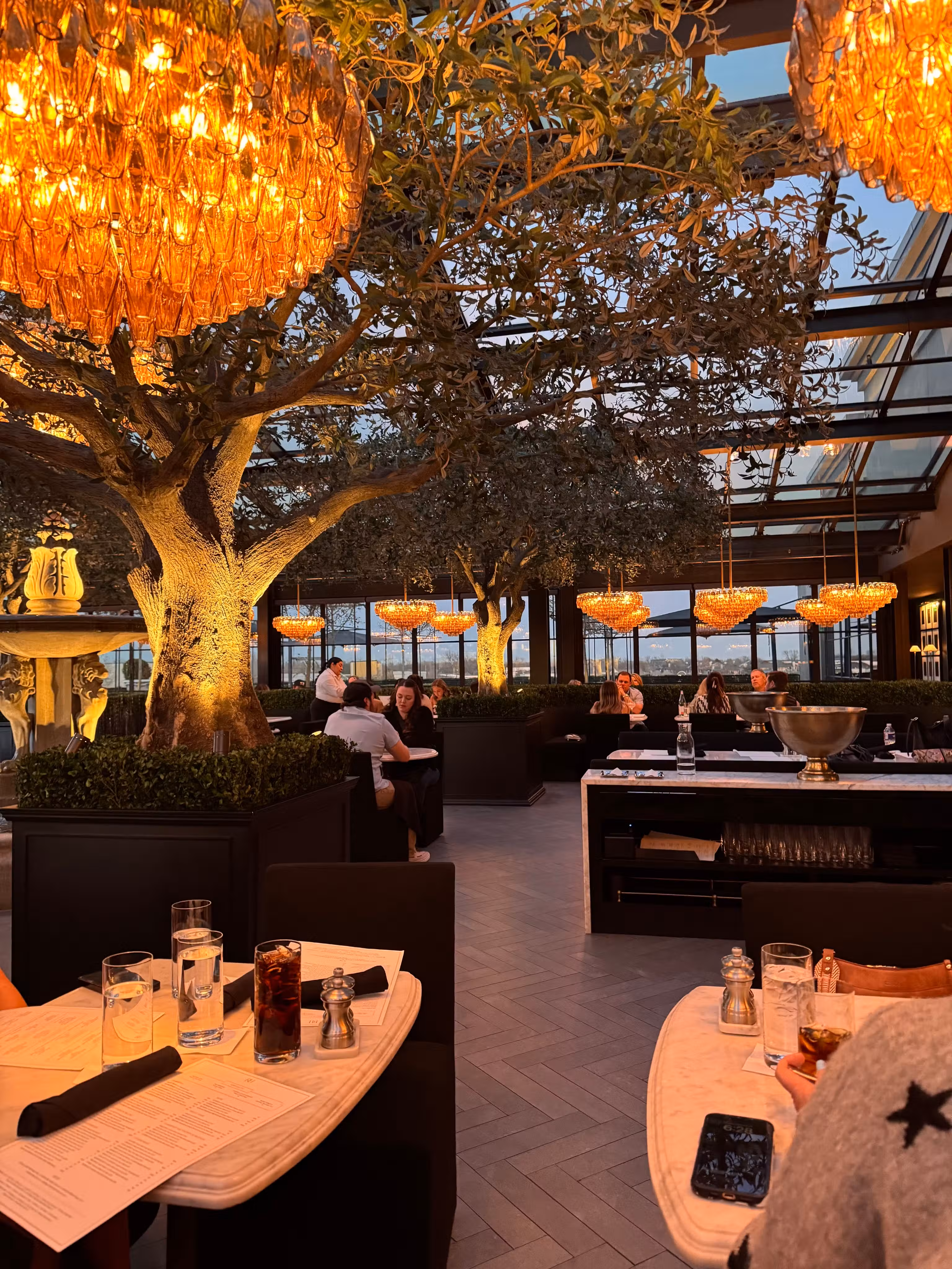 The RH Rooftop Restaurant resides on the third floor of RH Dallas, a 70,000-square-foot design gallery that blurs the lines between residential and retail, indoors and outdoors, home and hospitality. We invite you to enjoy our selection of timeless classics for brunch and dinner accompanied by a curated selection of artisanal wines and craft beers. Guests dine in a year-round skylit garden escape amidst trickling fountains, heritage olive trees and glimmering chandeliers.