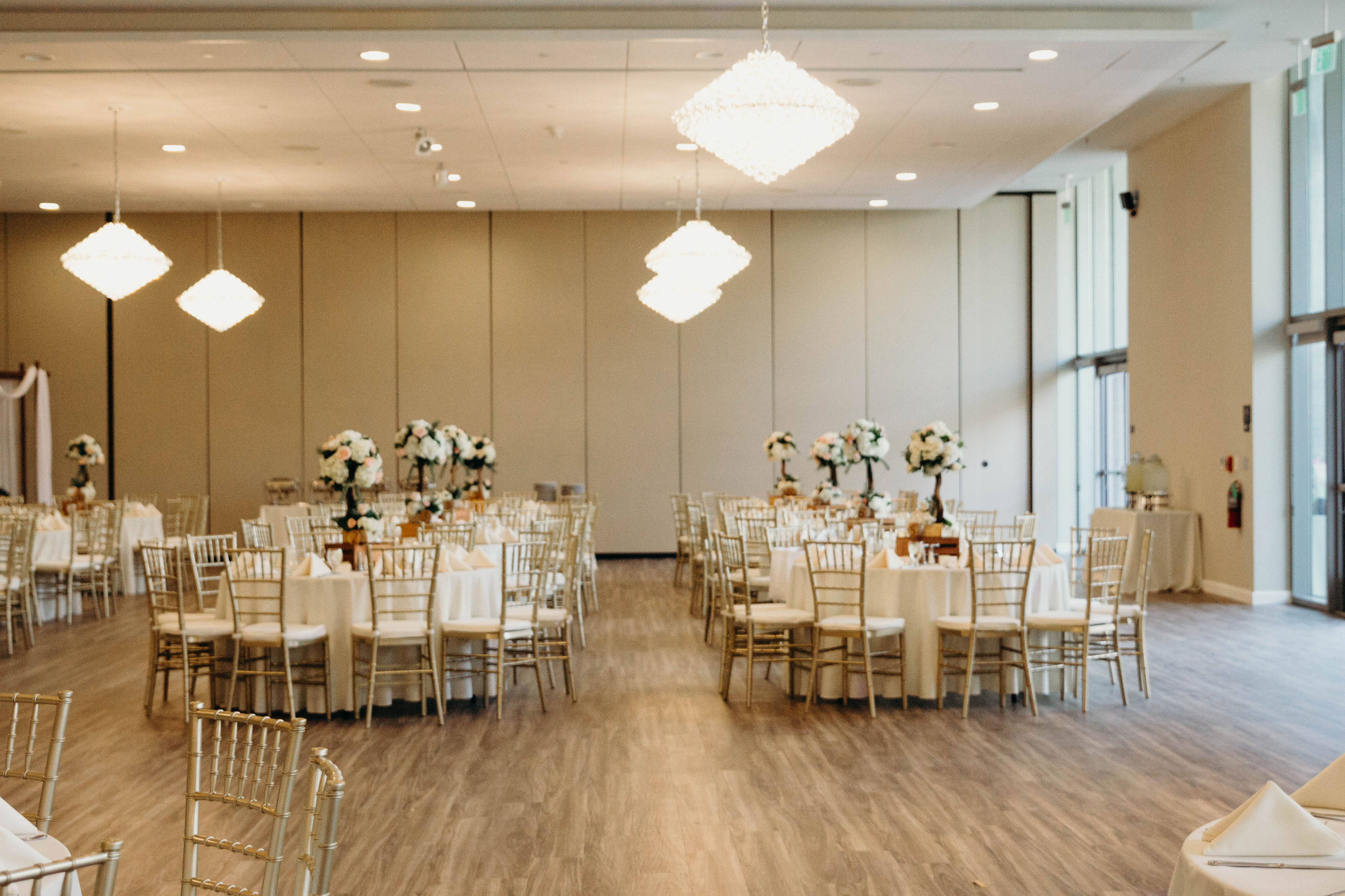 With 15-foot ceilings, hardwood flooring, and gorgeous chandeliers indoors and softscaping and string lights outdoors, the options are endless at the Rose Center. The Rose Center includes a 10,721 square foot banquet room and kitchen and a 6,300 square foot ballroom that can be subdivided into three separate rooms if you please. The ballroom is adjacent to our outdoor private courtyard that's perfect for cocktail hour.