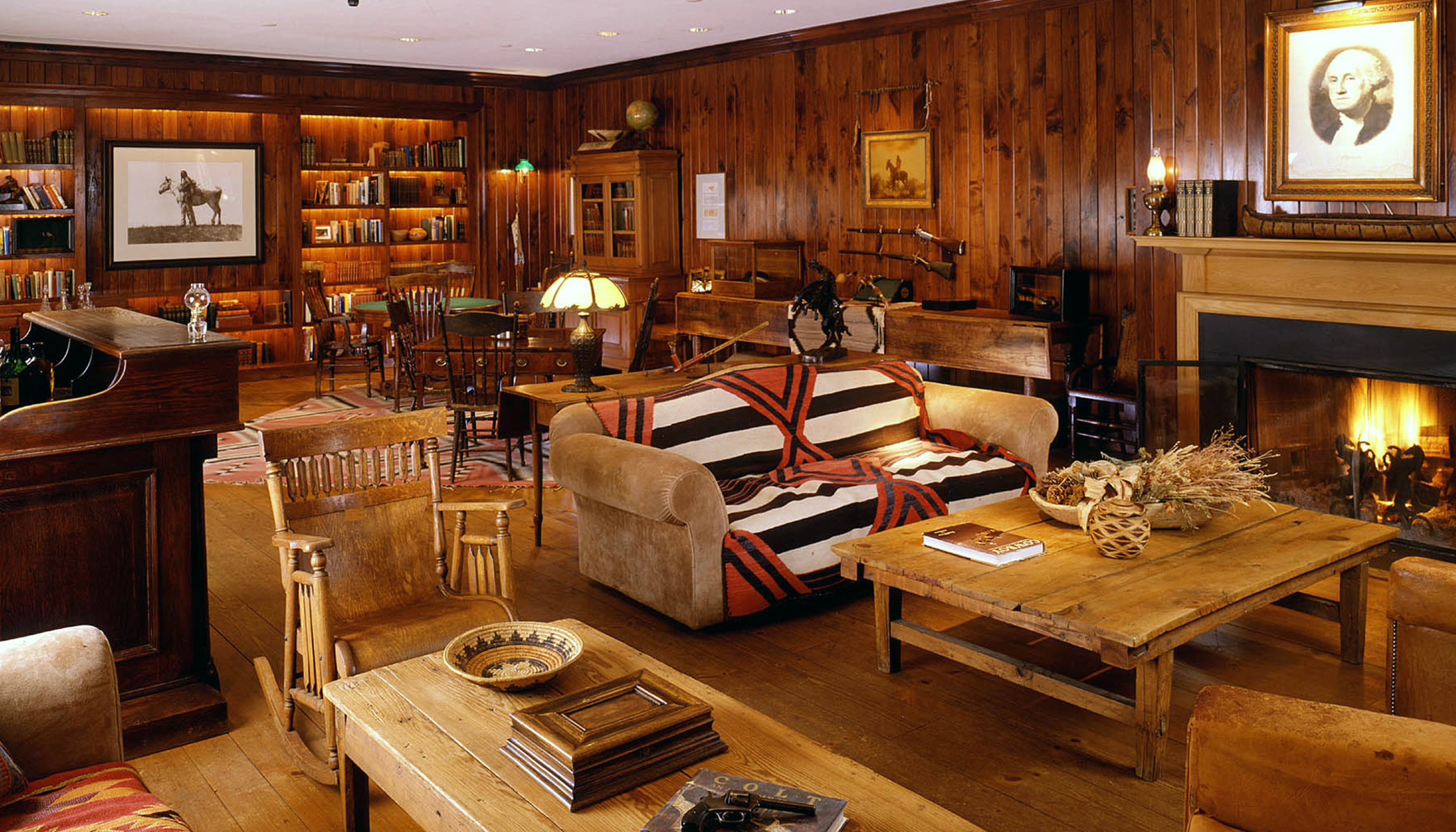 Lively and thriving as a living museum, sporting displays of Geronimo's tomahawk and General Custer's, the restaurant offers the rustic western charm of stone-and-wood architecture while dotting the open space with style and sophistication throughout.