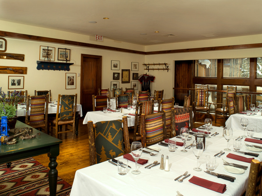 Nestled in the eastern slope of Beaver Creek, SaddleRidge is home to the largest collection of American western antique furnishings and artifacts outside of a museum. With soaring forty-foot vaulted ceilings and its elegant, yet comfortable, atmosphere, guests feel as though they have stepped back in time. The cuisine is modern Western American, served in three different dining rooms, all available for private functions. Upstairs you can relax in the frontier atmosphere of our Saloon Bar fitted with railroad chandeliers.