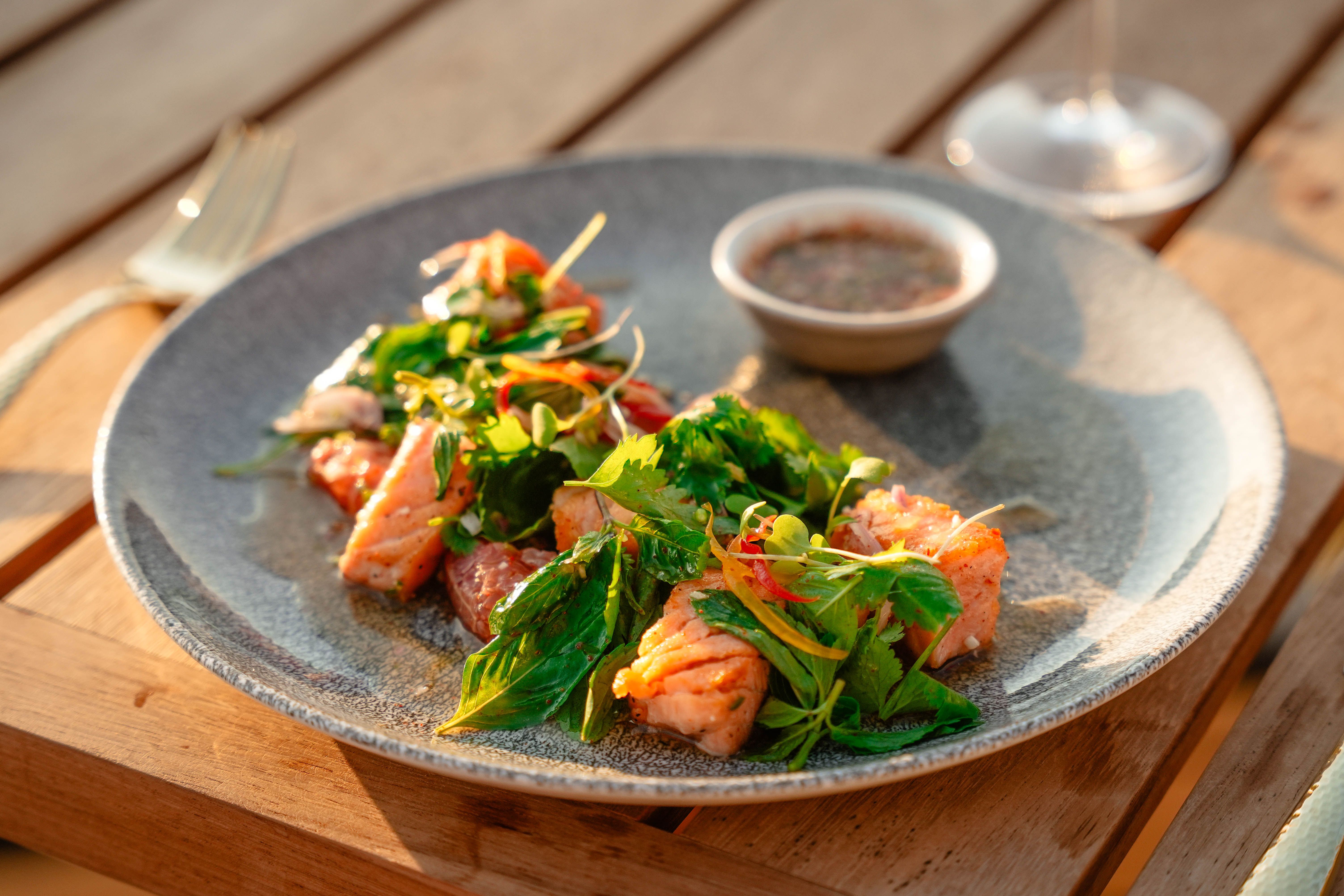 Saffron, the signature restaurant at Banyan Tree Cabo Marqués, invites you to experience the essence of Thailand with its authentic flavors and stunning ocean views. Delight in contemporary Thai cuisine made from the freshest ingredients and traditional techniques.Our menu features exquisite dishes, from classic Tom Yum Goong to innovative creations, offering a symphony of tastes and textures. For a unique culinary adventure, ask our chef to curate a special menu tailored to your preferences. Enjoy impeccable service and an elegant ambiance, ideal for romantic evenings or special occasions.Dine on our open-air terrace, where breathtaking views of the Pacific Ocean create a magical atmosphere. The vibrant colors of our decor and the warm glow of lanterns enhance the Thai charm of the setting. For an exclusive experience, celebrate in our intimate wine cellar, savoring fine wines and delectable dishes. Saffron is more than just a meal; it’s an unforgettable experience.
