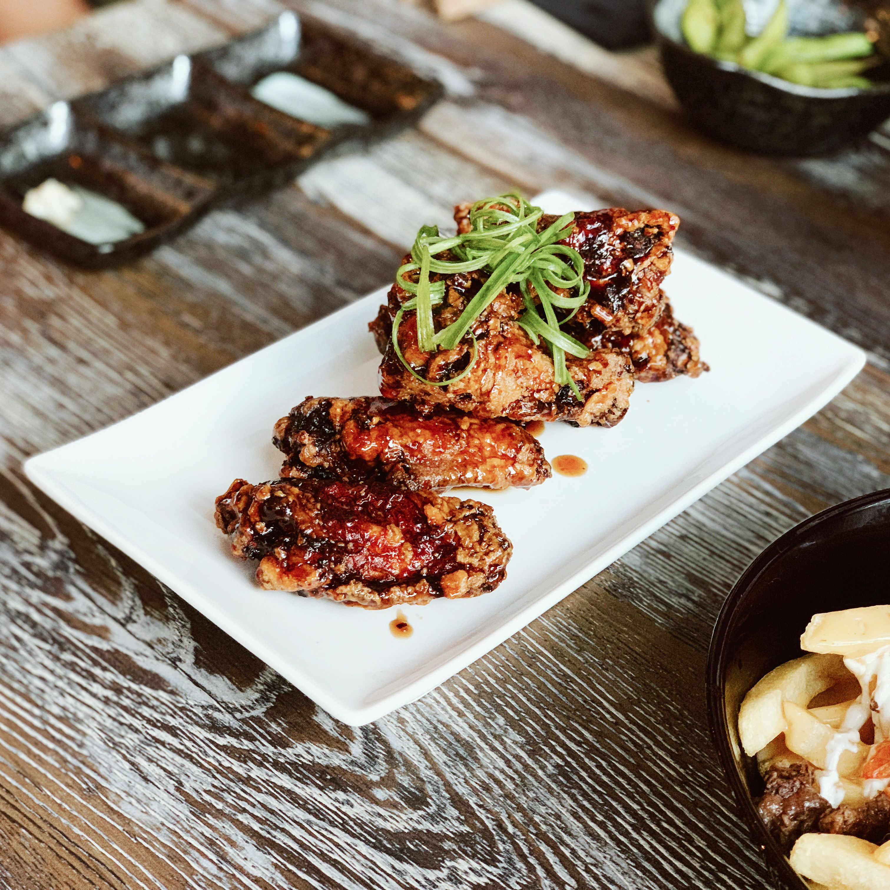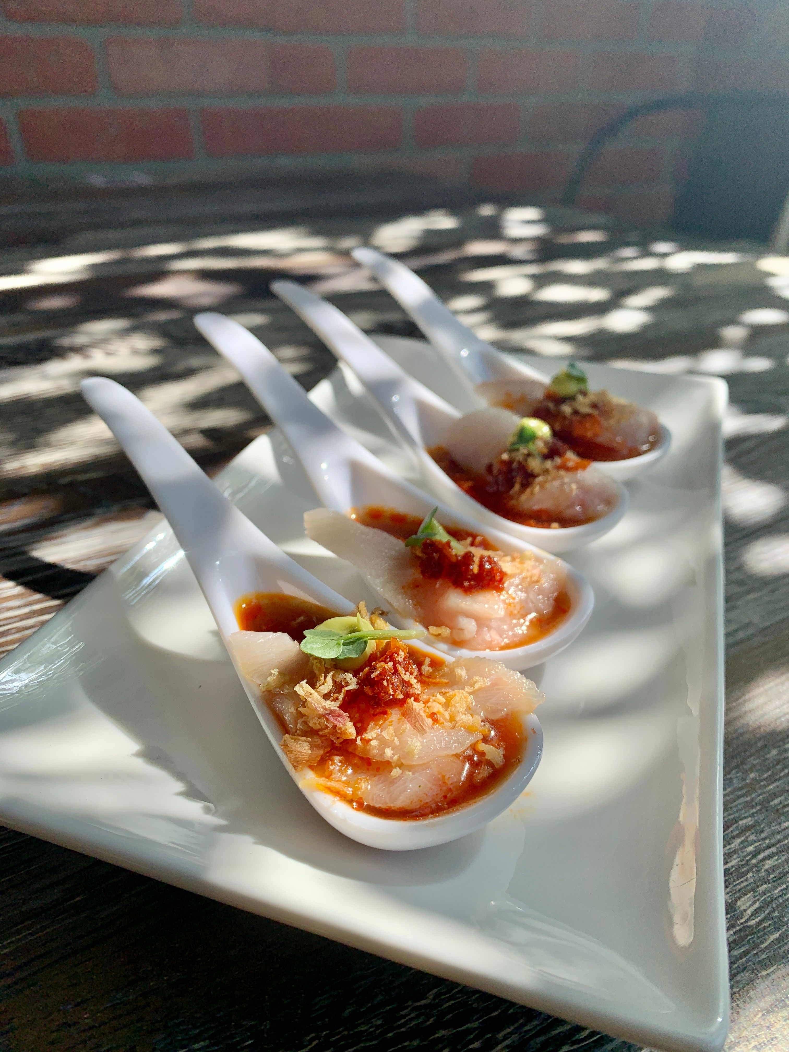 Saucy Oakland features fun and delicious Pan-Asian dishes like the Thai Corndog, Hamachi spoons, soy-braised beef short ribs, and garlic noodles. Enjoy our original dishes with a selection of premium sake, sake spritzers, wine, beer, soft drinks, and tea. We are currently accepting reservations for lunch (Tue-Fri) for parties of 5 or more. We currently DO NOT offer TABLE SERVICE for lunch. We hope to provide this service in the future. Please order at the counter when you arrive.Happy Hour and Dinner (Wed-Sat).Brunch on Sundays from 11-2:30PM Saucy Oakland is a fun and creatively driven project put together by locals Chef Tony and Jenni in 2015. They've partnered up their passion for food to deliver their take on a fun concept that focuses on friends mingling over great food.