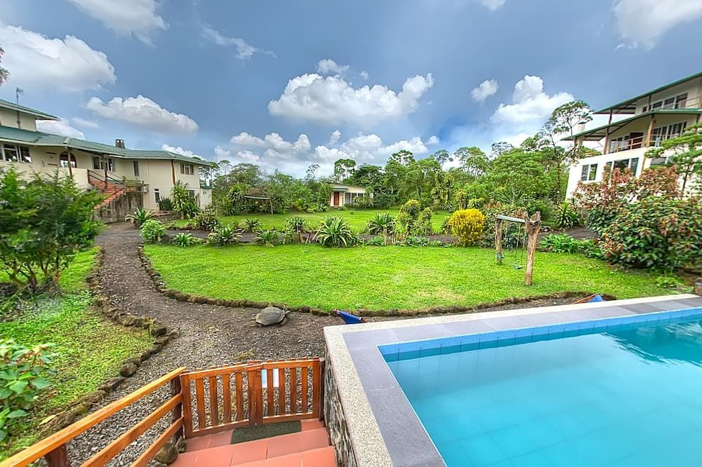 At this hotel guests can relax in the hammocks or spot wild giant tortoises and native birds in the hotel's extensive garden and nature trails. Panoramic views of Galapagos National Park can be enjoyed from the terraces.