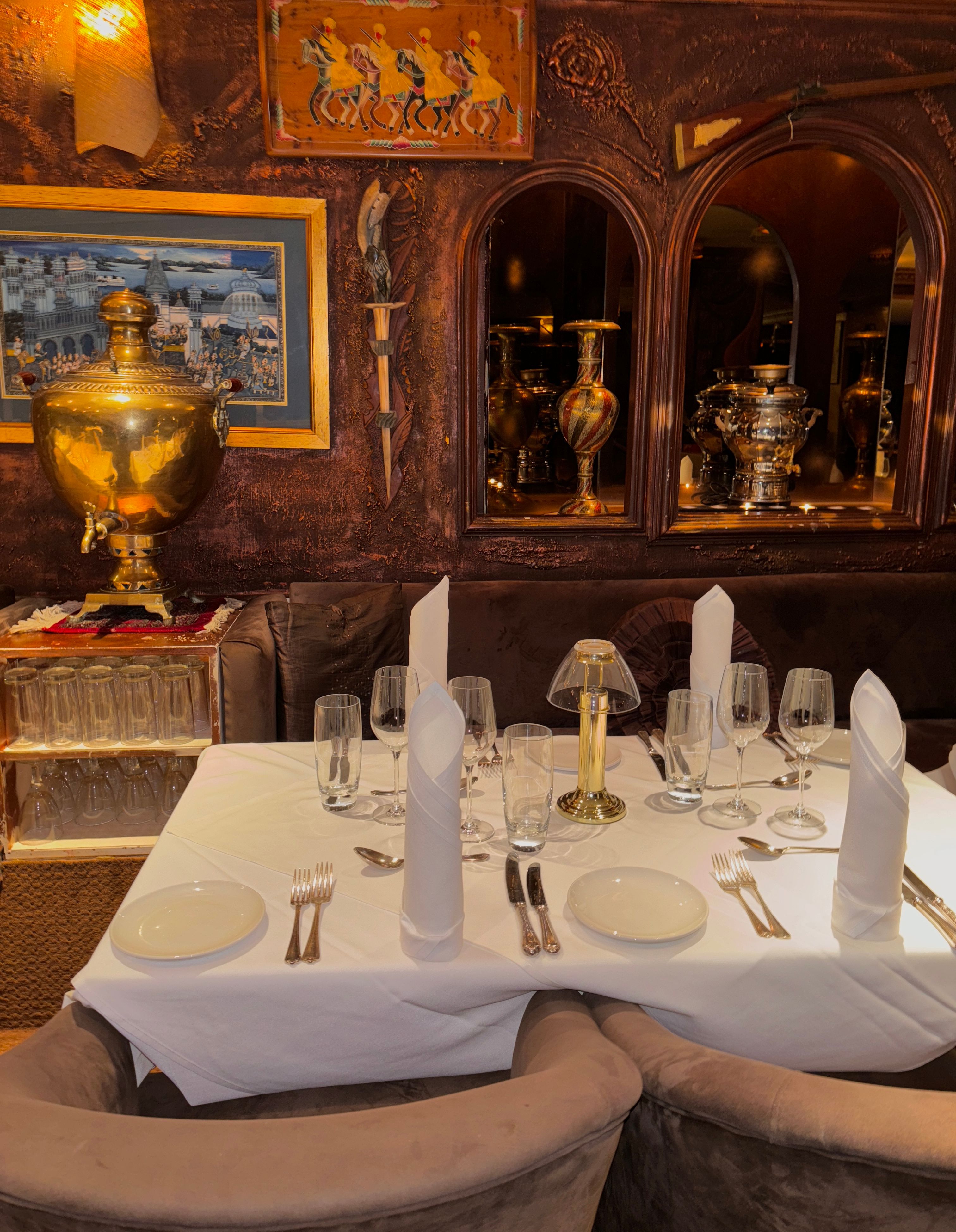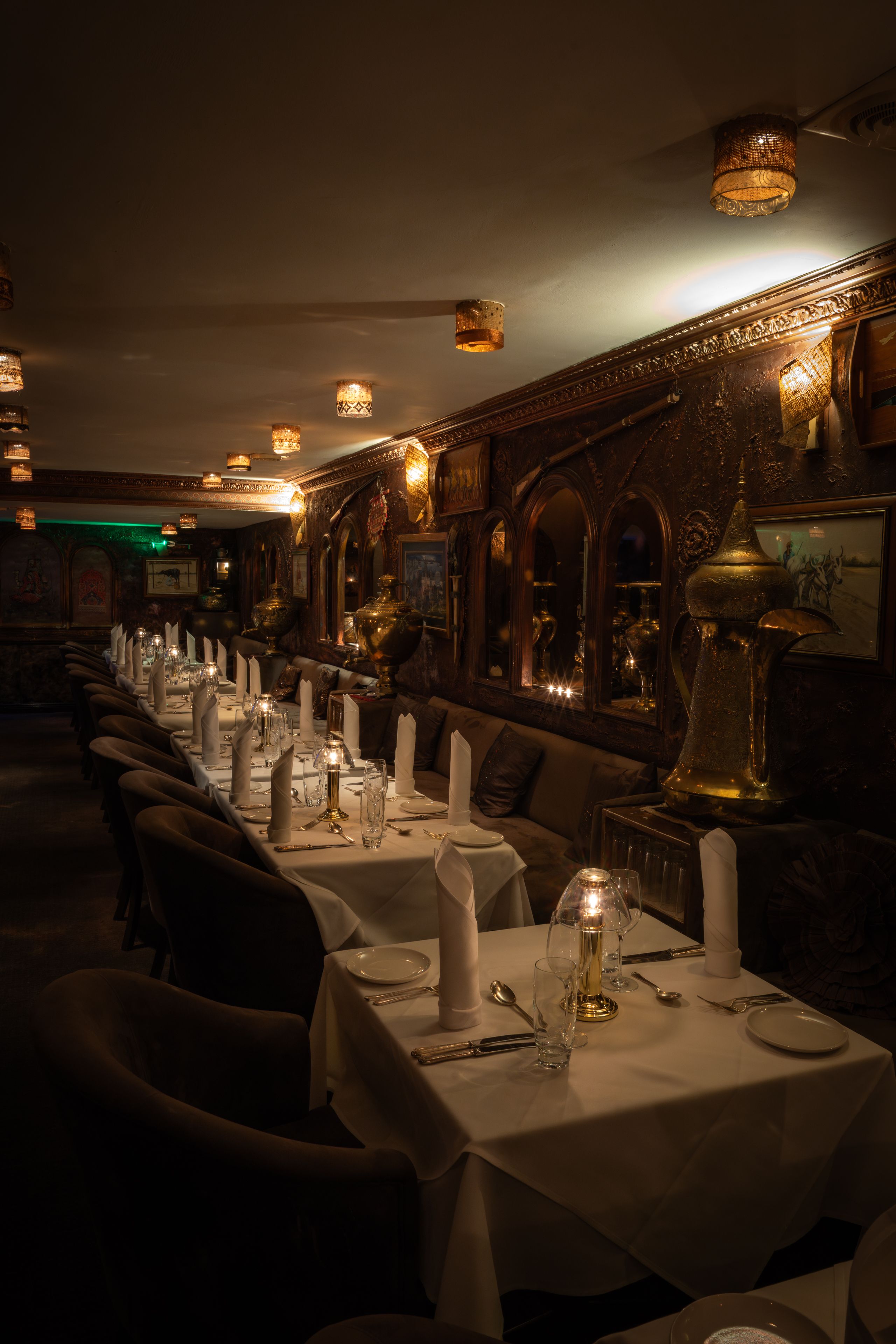The home of fine Indian and Pakistani cuisine in the heart of London's prestigious area of Knightsbridge - just a 2 minutes walk from HARRODS. It is one of the UK's oldest Indian and Pakistani restaurant providing a peaceful and refreshing ambiance for lunch and dinner and "any thing" in between. Shezan has been serving the finest Indian and Pakistani cuisine for over forty years and continues to offer an exciting selection of Indian and Pakistani favourites from the Menu and a’ la carte and its attentive and friendly service complements the comfortable candle-lit surroundings.The traditional arches and Mughal paintings of this newly renovated dimly-lit eatery add a further touch of warmth to the contemporary furnishings and create a combination of refreshing and comfortable surroundings and reminds of cultural ties with Indo-Pakistan. The background music of traditional Indian classics adds a refined yet energizing romantic touch to the food we serve to our valued customers.