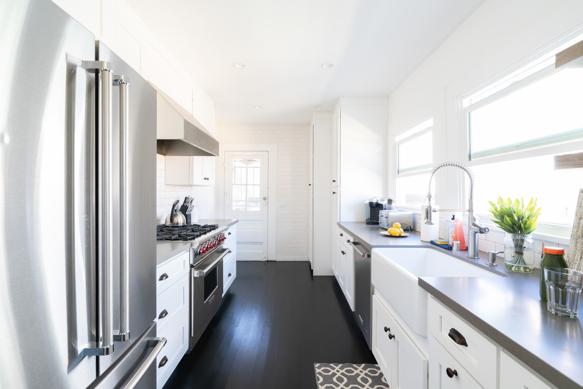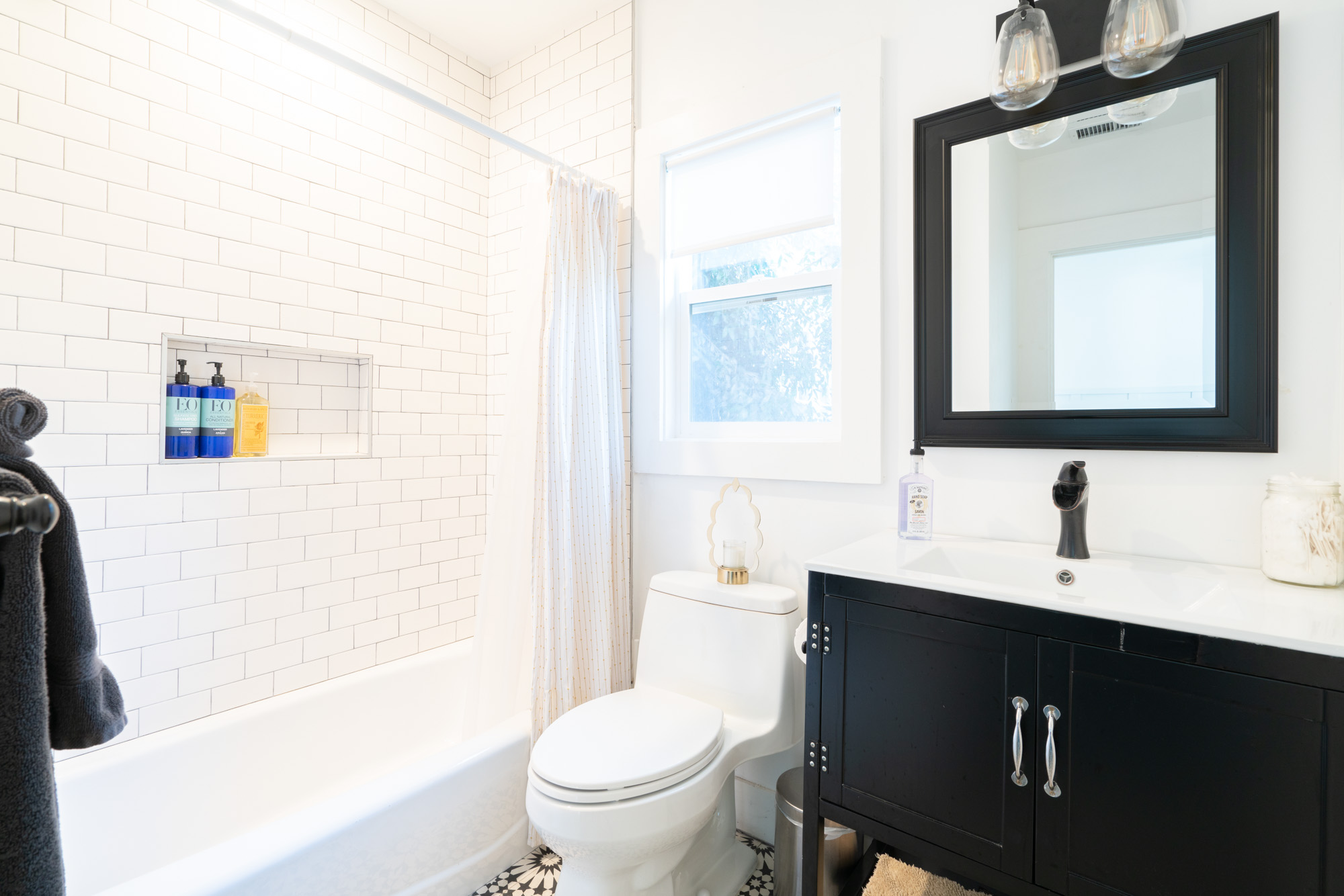 This bungalow has a quiet charm that can be hard to find in vibrant Venice. Built in the early 1900s, this cottage-like retreat takes you back to a carefree time where you hardly realise you're in the sprawling metropolis of Los Angeles. As you arrive under the leafy trellis, you’ll want to stop for a cool iced tea on the wooden slatted porch. Sitting out at this shady spot, the delicate, grey-blue painted exterior and white detailing reminds you of ocean surf lapping the sand. Inside, while clean, fresh, and modern, we love unique touches like the decorative brick fireplace, and record sleeves on the walls such as Janis Joplin, bringing that sixties California feel into the home. More beach vibes continue the more you look – the host even provides beach towels for guests, plus sand toys for the little ones, so you’ll be ocean-ready from the offset. Venice Beach and its famous boardwalk is a five-minute walk from your beautiful bungalow, while Santa Monica Beach is just over two miles away. You can cruise over there by car, hire a bike, or take a walk from your neighbourhood – a pleasant stroll past health-food cafés, surf boutiques, and beach-side restaurants.