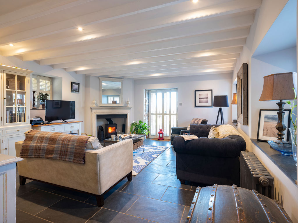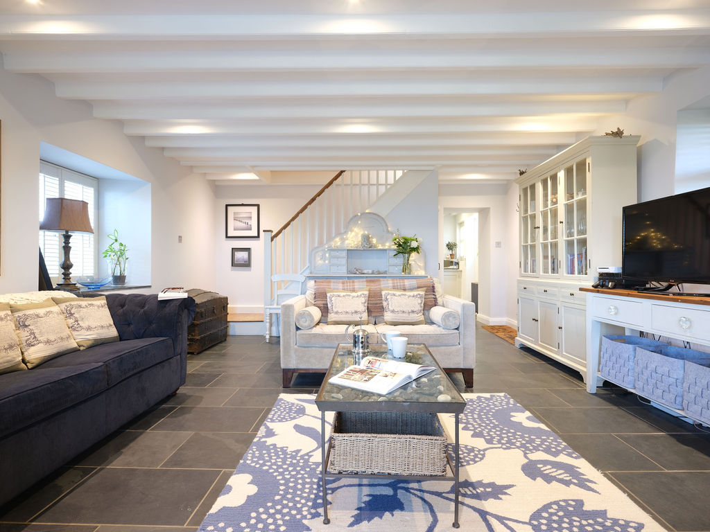 Stepping inside, you can feel this history radiating from wood-beamed ceilings in the bedrooms and flagstone floors in the living area. Get a fire crackling in the wood-burner for a cosy evening in. This coast was once a hive of smuggling and in the kitchen, you’ll see a smuggler’s hide for storing contraband through a glass panel in the floor. Your host has added a few vintage touches like an old treasure chest and an antique ship’s light so you can really feel like you’re on a castaway adventure.