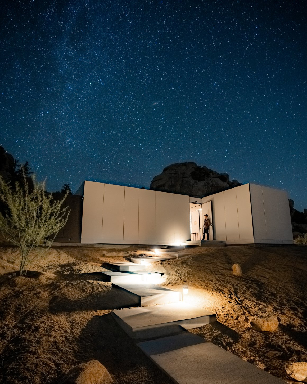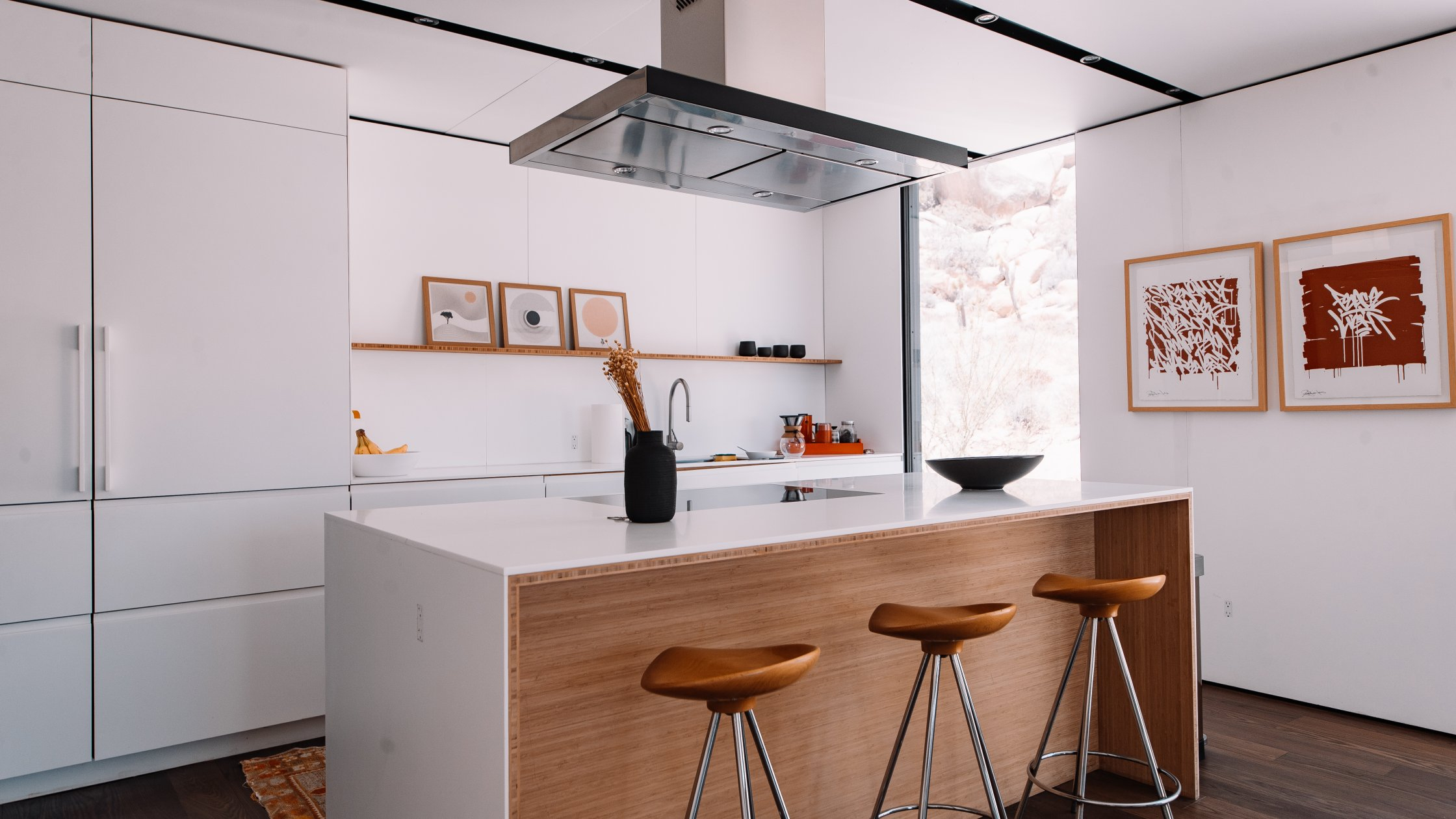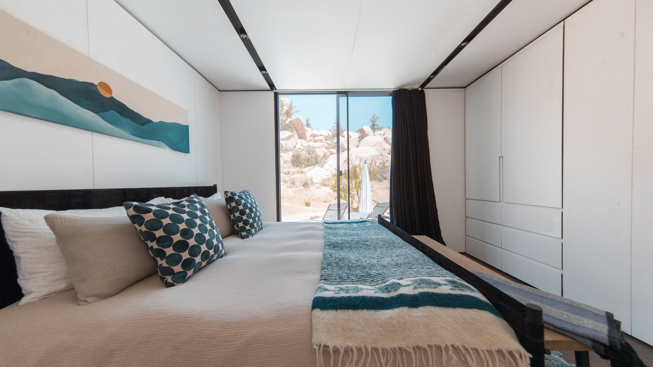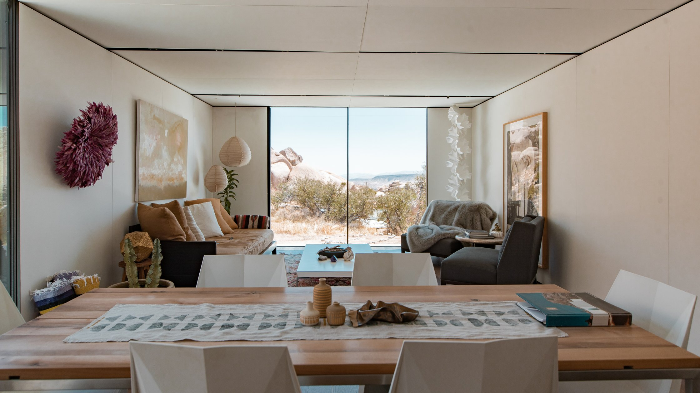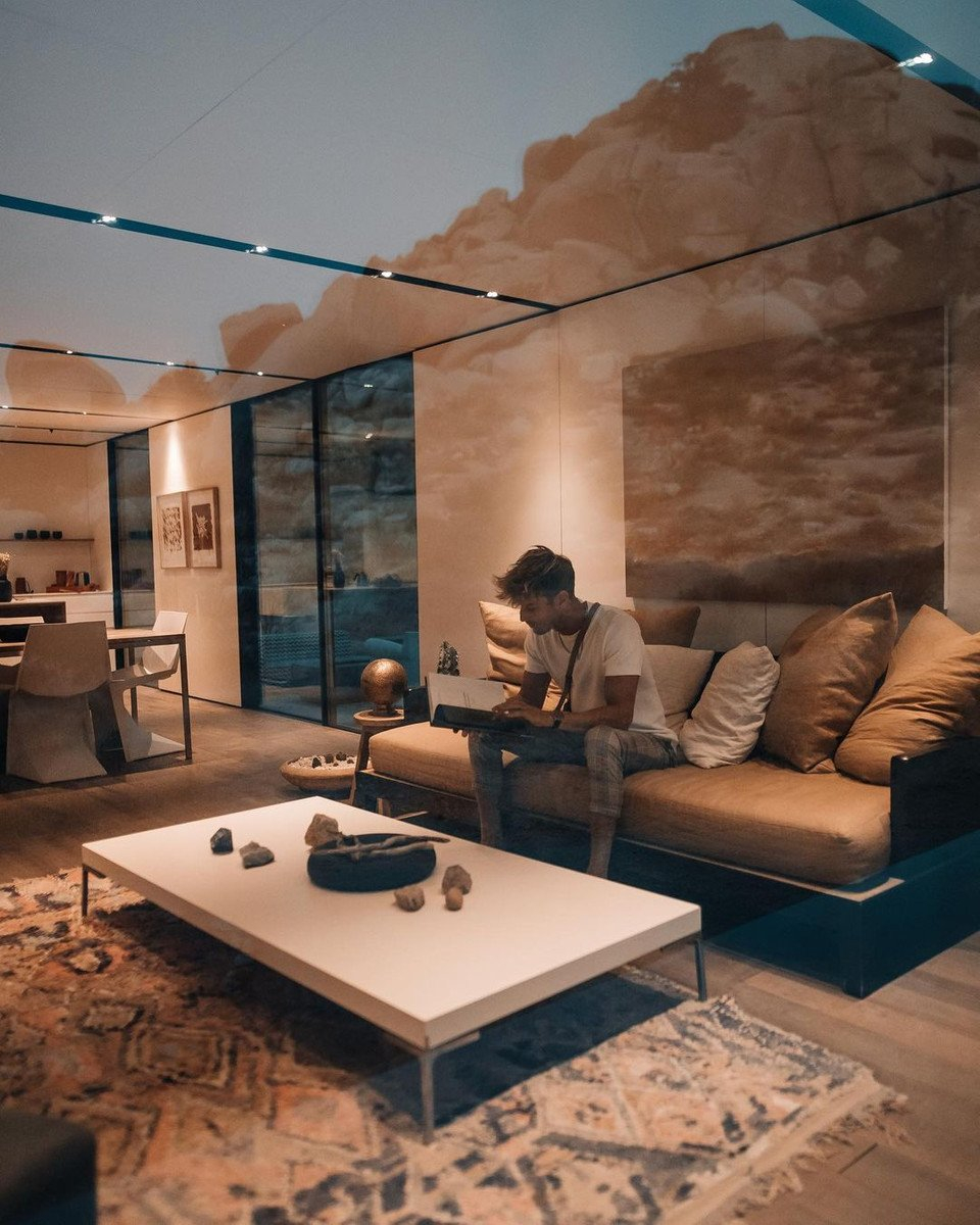 Open-Concept Living Area: A spacious, light-filled space with floor-to-ceiling windows showcasing the desert landscape. Ideal for social gatherings, product displays, or lounge setups.