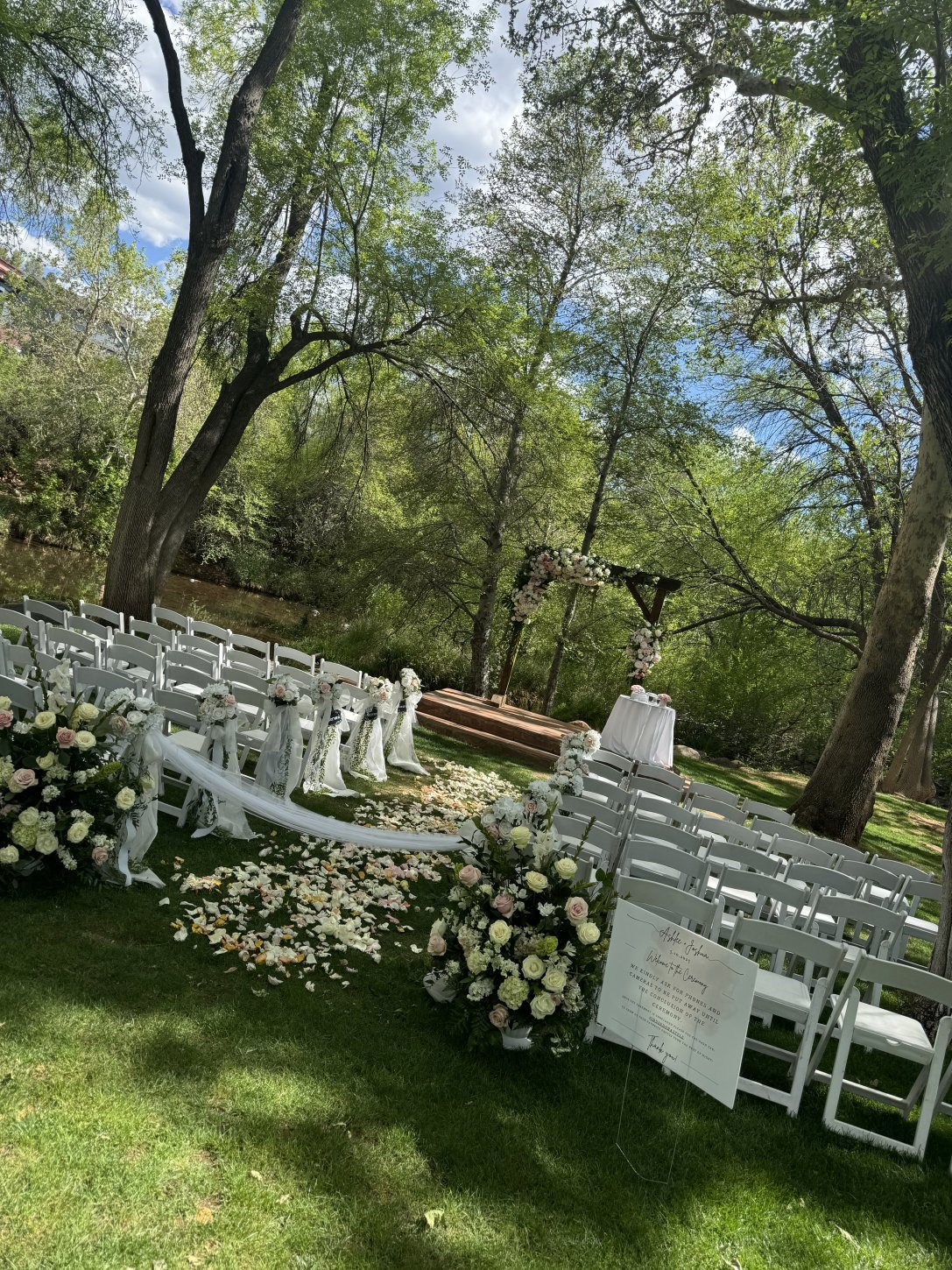 Creekside ceremonies Reception under the stars