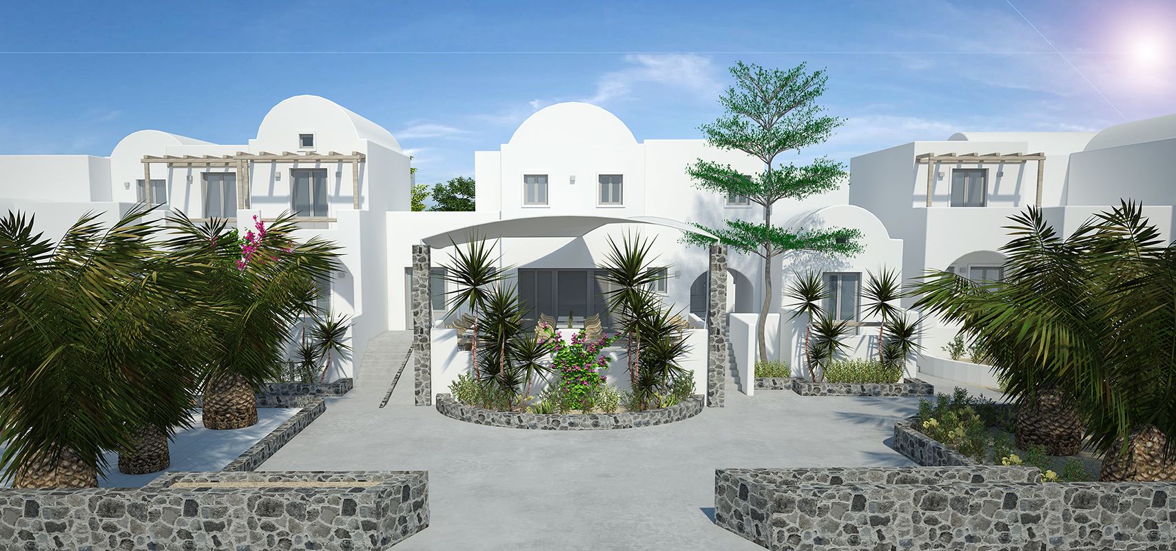 Fira, the capital of Santorini is at 8 km. Santorini Port is 7 km away and the airport is within 3 km.