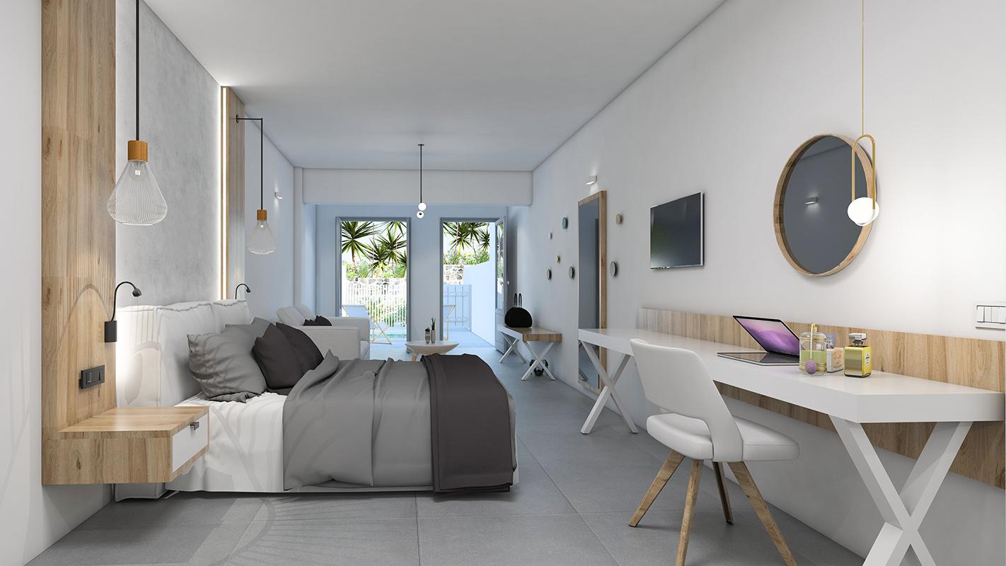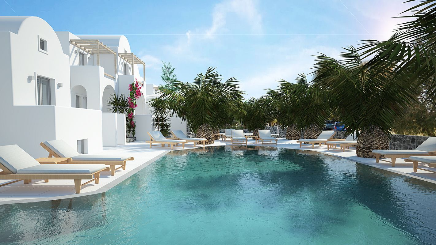 Breakfast including Greek yoghurt, traditional specialities and homemade pastries is served on the breakfast terrace. Cocktails, coffee and snacks are served at the poolside bar that is surrounded by palm trees.
