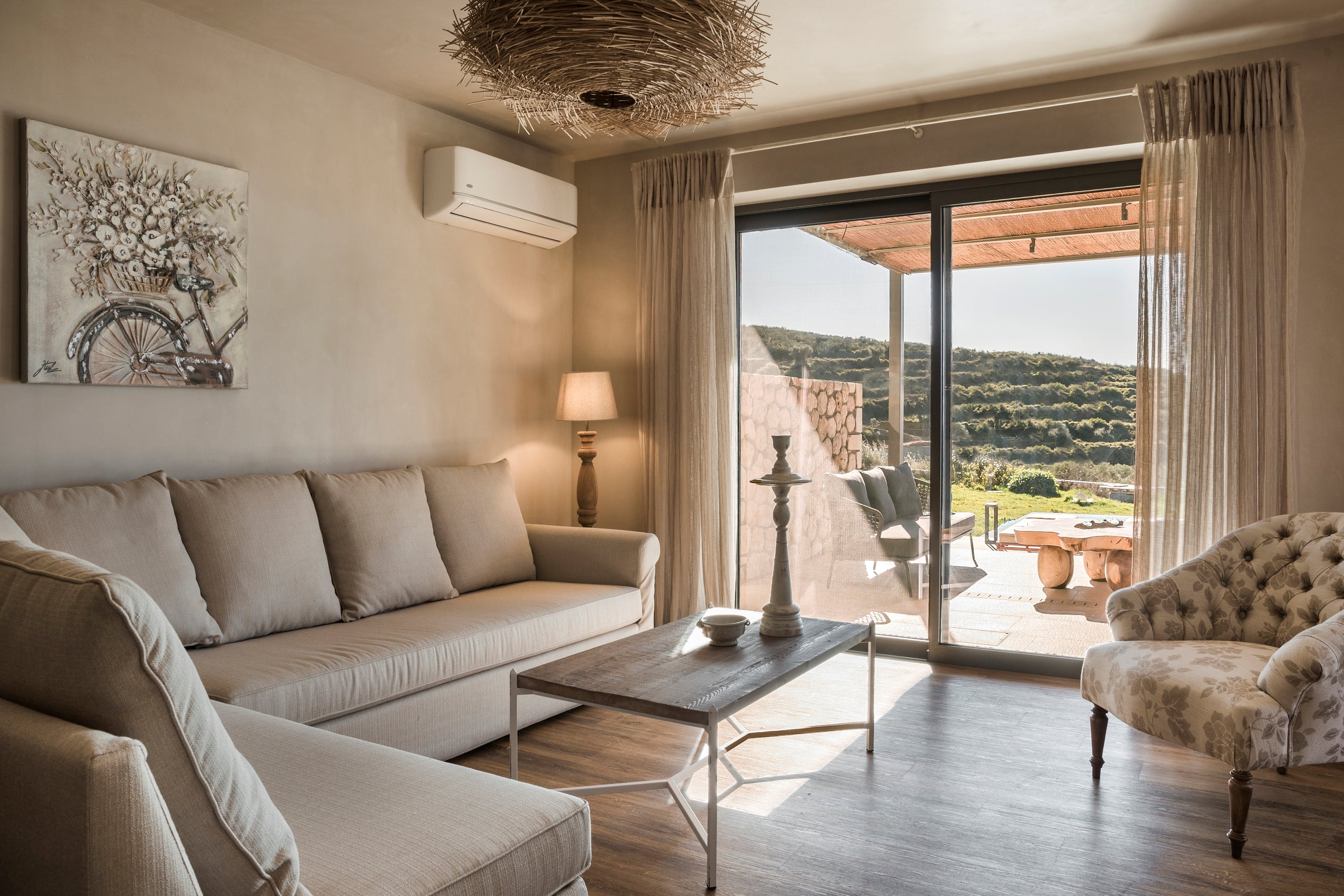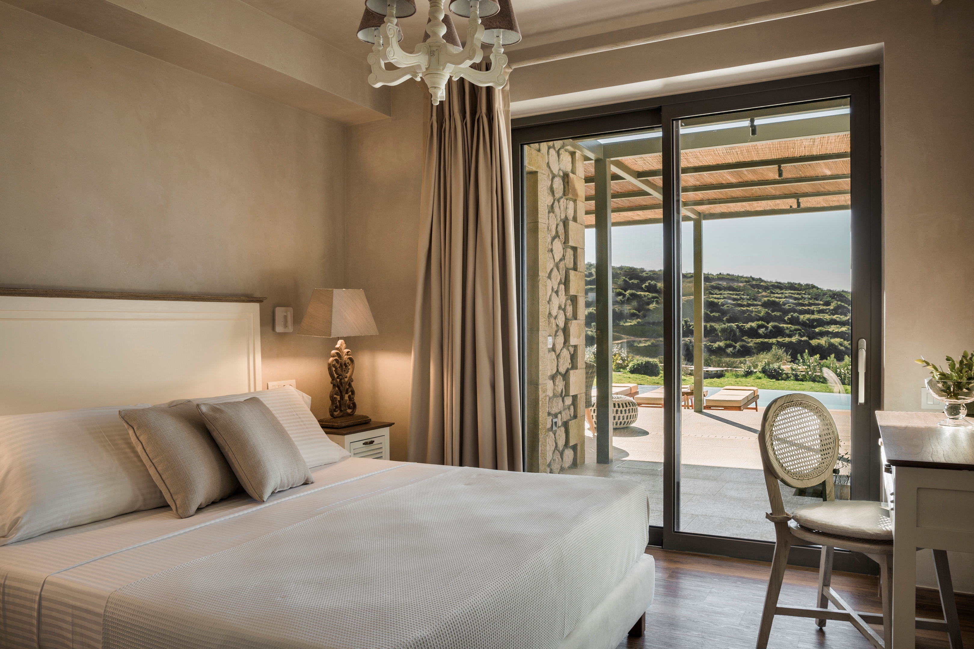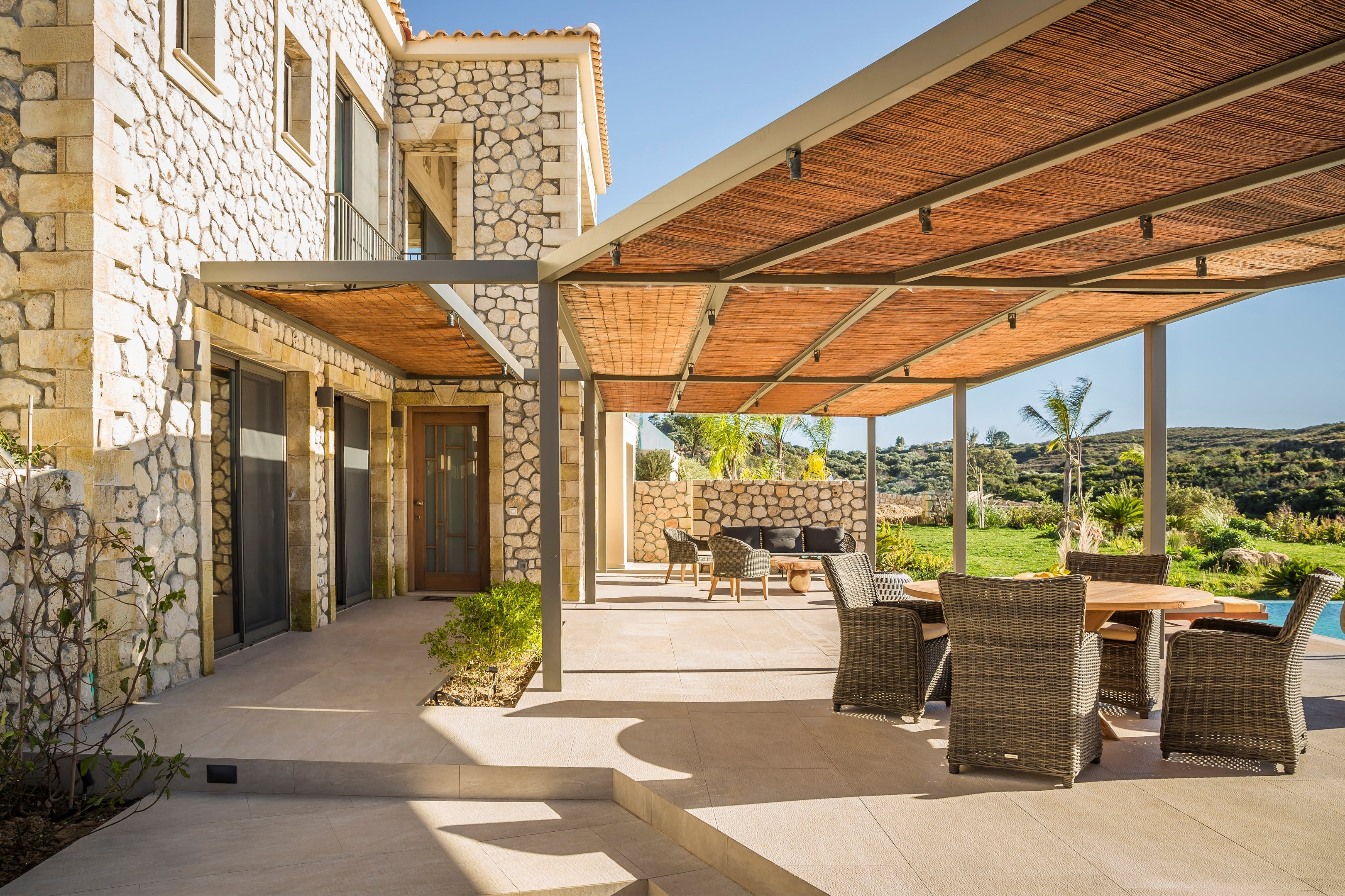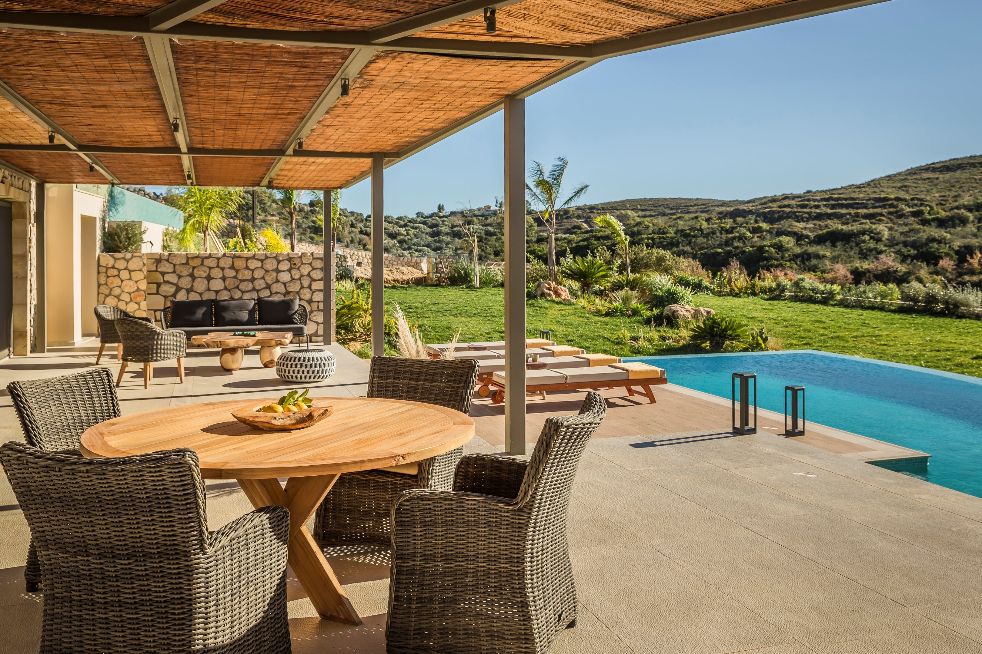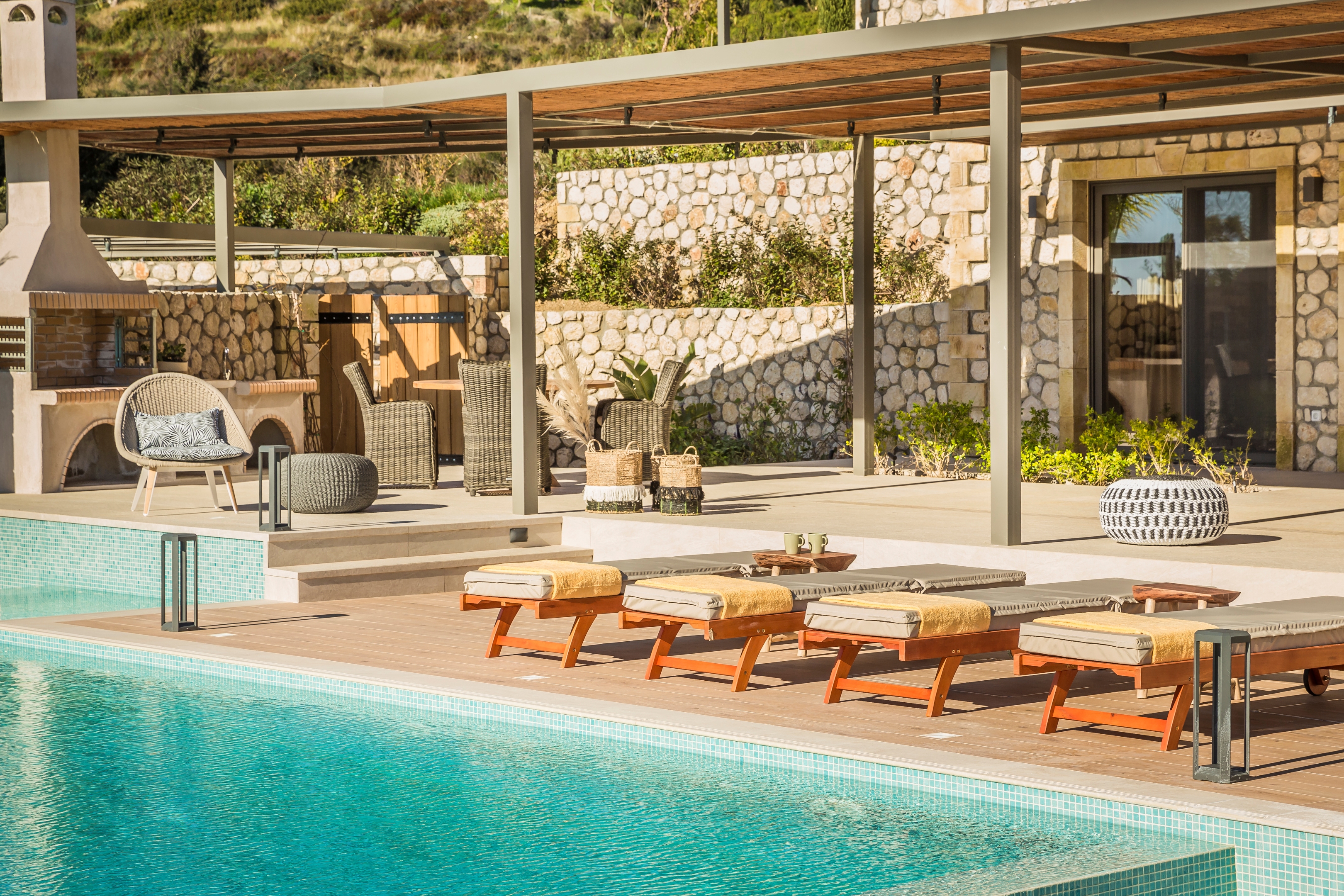 Some homes really do have it all and this is one such example. Not only does the stone villa have a covetable location right on the western coastline of Kefalonia, but this means beautiful views of the Ionian Sea and Dias Island.As you would hope, there are plenty of spots from which you can appreciate this stunning panorama. Doing so while gliding through the infinity swimming pool is a stellar option, but there are more options on dry land, whether it's while lying back on one of the loungers or tending to the barbecue underneath the verandah.Although it's easy to embrace alfresco living here, the villa's interior is noteworthy too for its contemporary decor, all soothing neutral tones, chic furnishings and eye-catching light fixtures. In the wider resort, there are even communal gym and yoga facilities that guests are welcome to use.When you can muster up the willpower to drag yourself away from this incredible home, Paliolinos Beach sits only twelve minutes' walk away and is one of a huge number of coves and seaside spots to be discovered nearby. The city of Argostolion is only a twenty-minute drive away, as well.