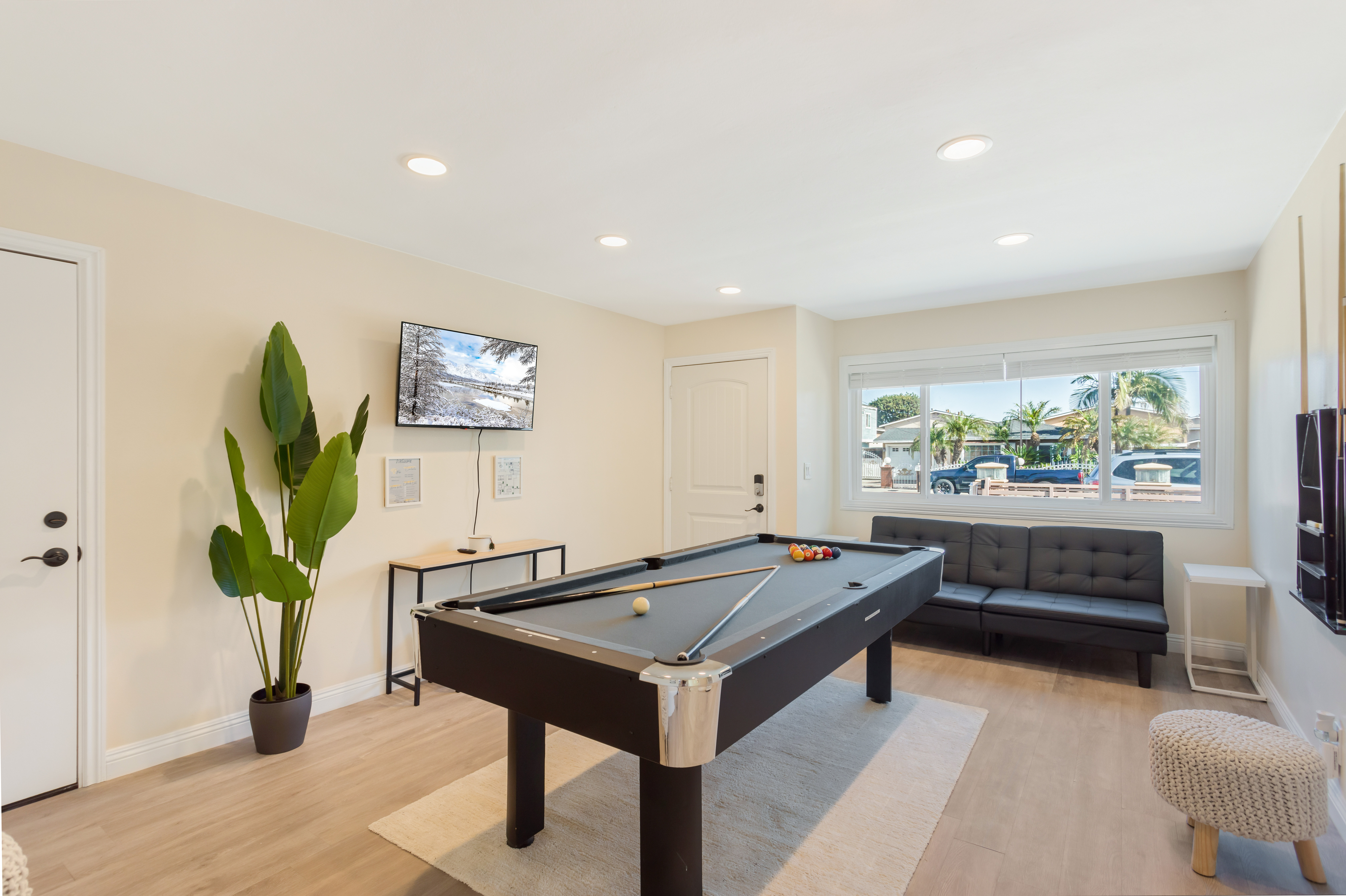 The decor is stylish and straightforward, which is in keeping with the barefoot charms of Huntington Beach, with some lush greenery in the living rooms, and some carefully chosen art hanging on the walls of the bedrooms. A couple of our favourite features include a projector in the main bedroom, for the ultimate movie nights, plus the pool table in the front room. There's nothing like a bit of friendly competition to liven up an evening.
