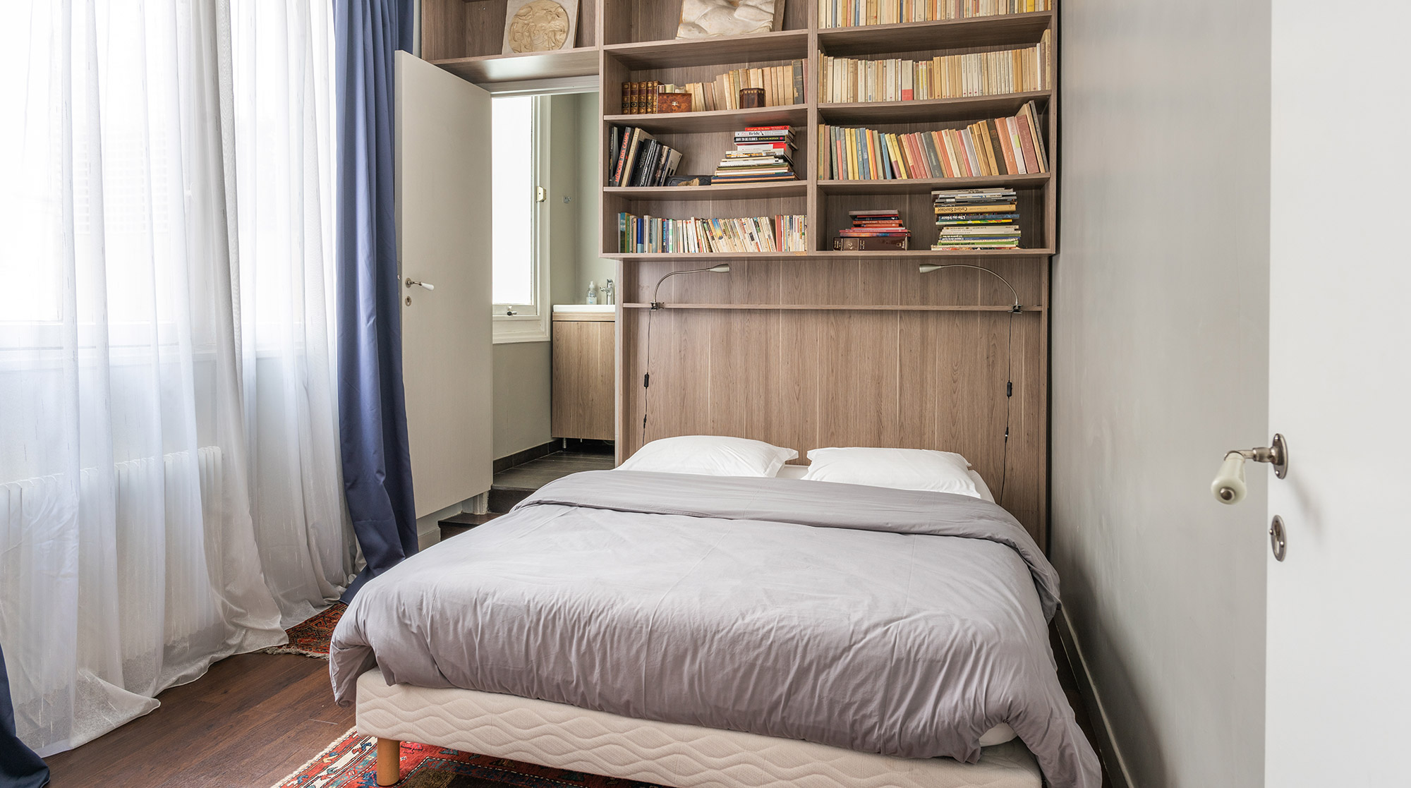 This former artist's studio close to the Eiffel Tower and Champs de Mars boasts giant windows and impressive double height ceilings in the living room. Now converted into your host's personal cabinet of curiosities, the array of weird and wonderful objects is almost endless. Although the retro kitchen could seem basic to some, we think it exudes old world charm perfectly.