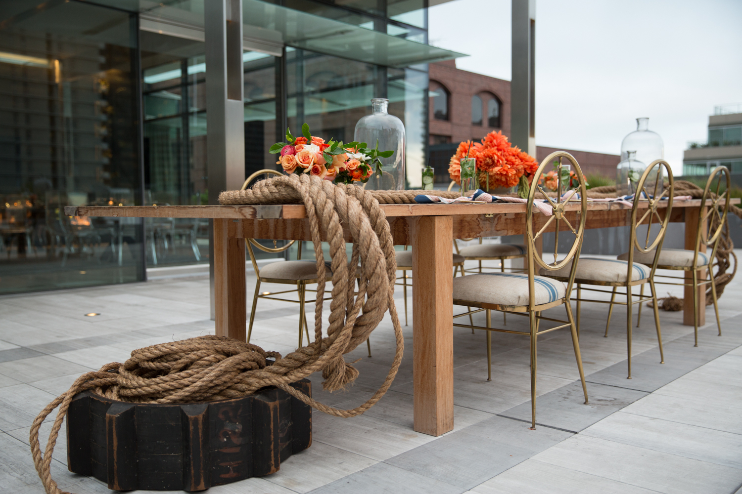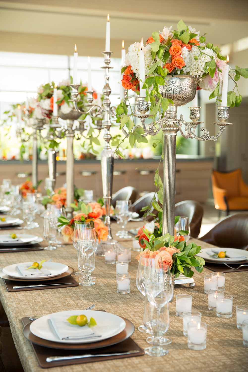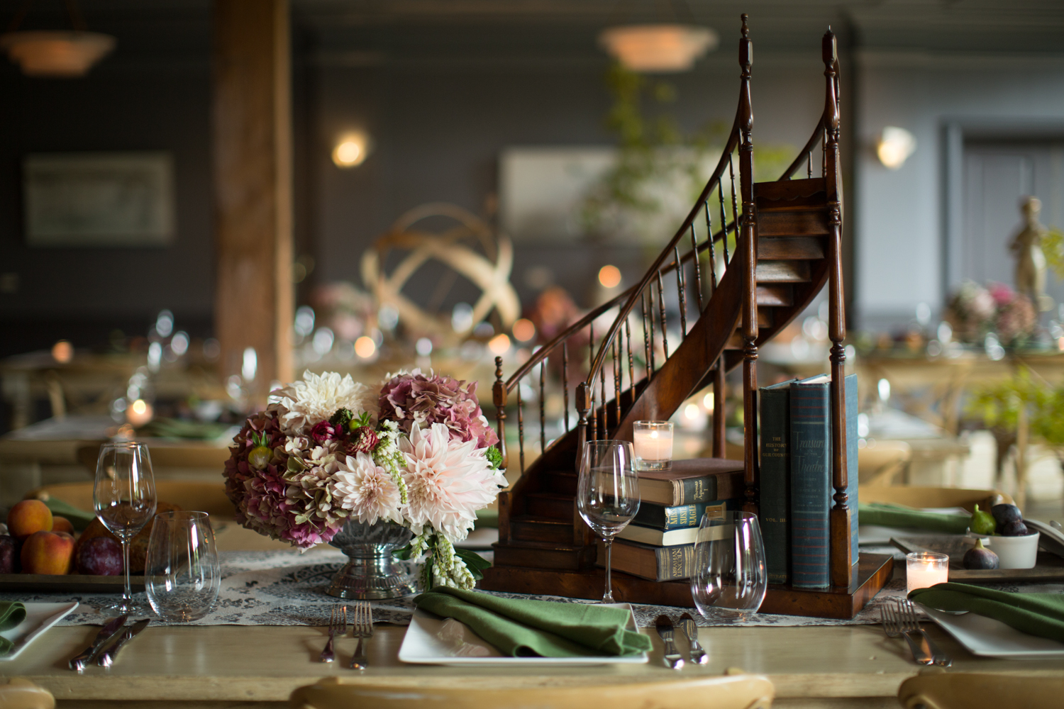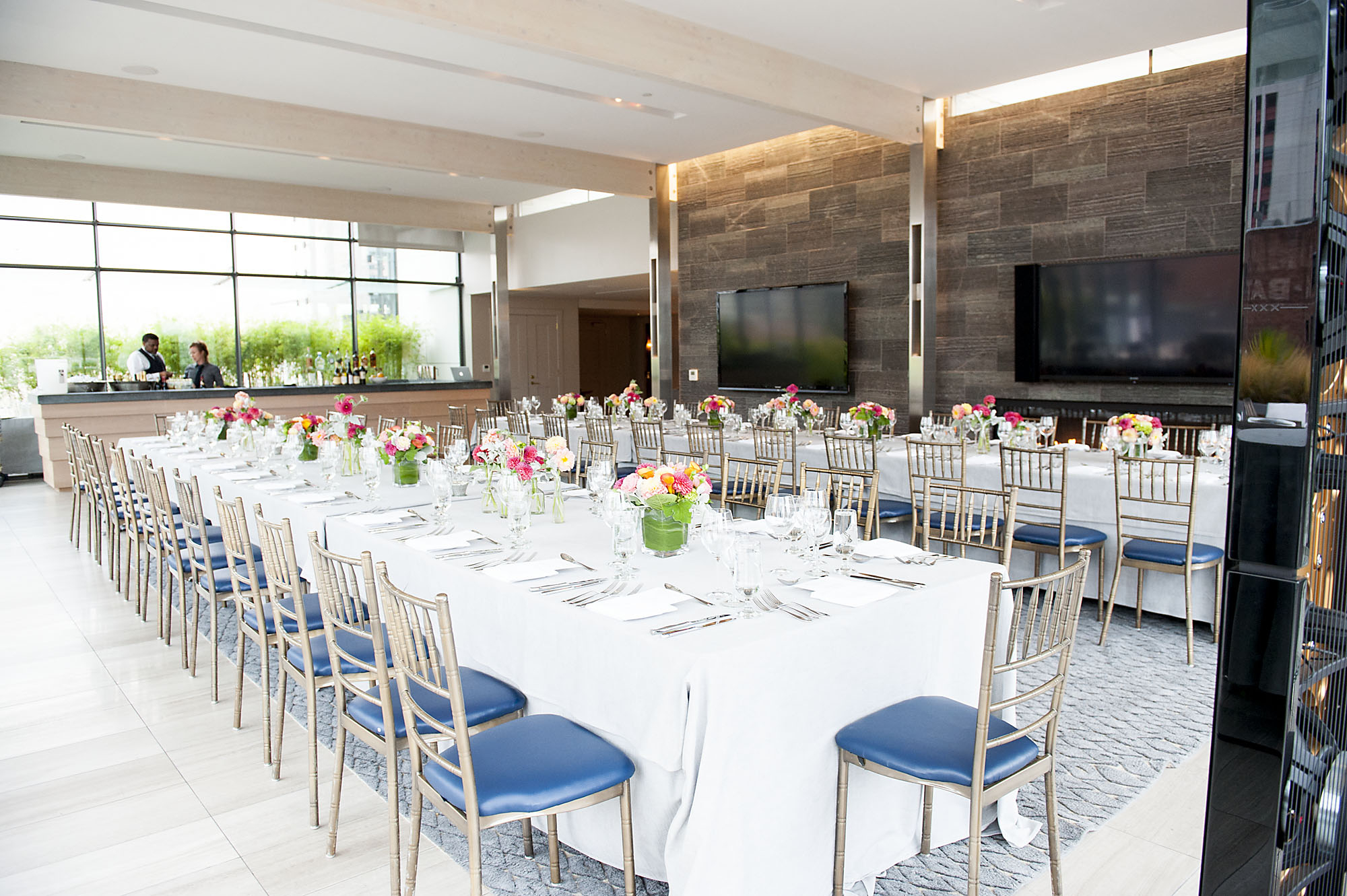 Venue rental fees include the use of our banquet equipment on site. We have cocktail tables, dining tables, flatware, glassware, dining chairs, linen napkins, passing trays, and some decor.