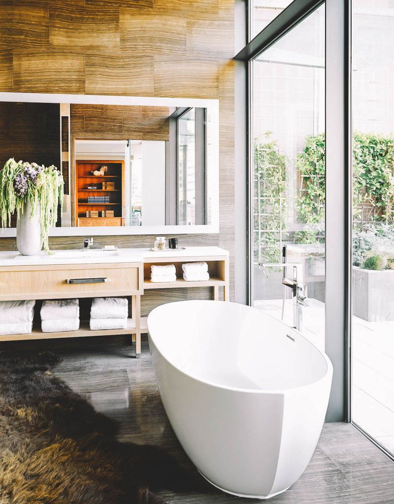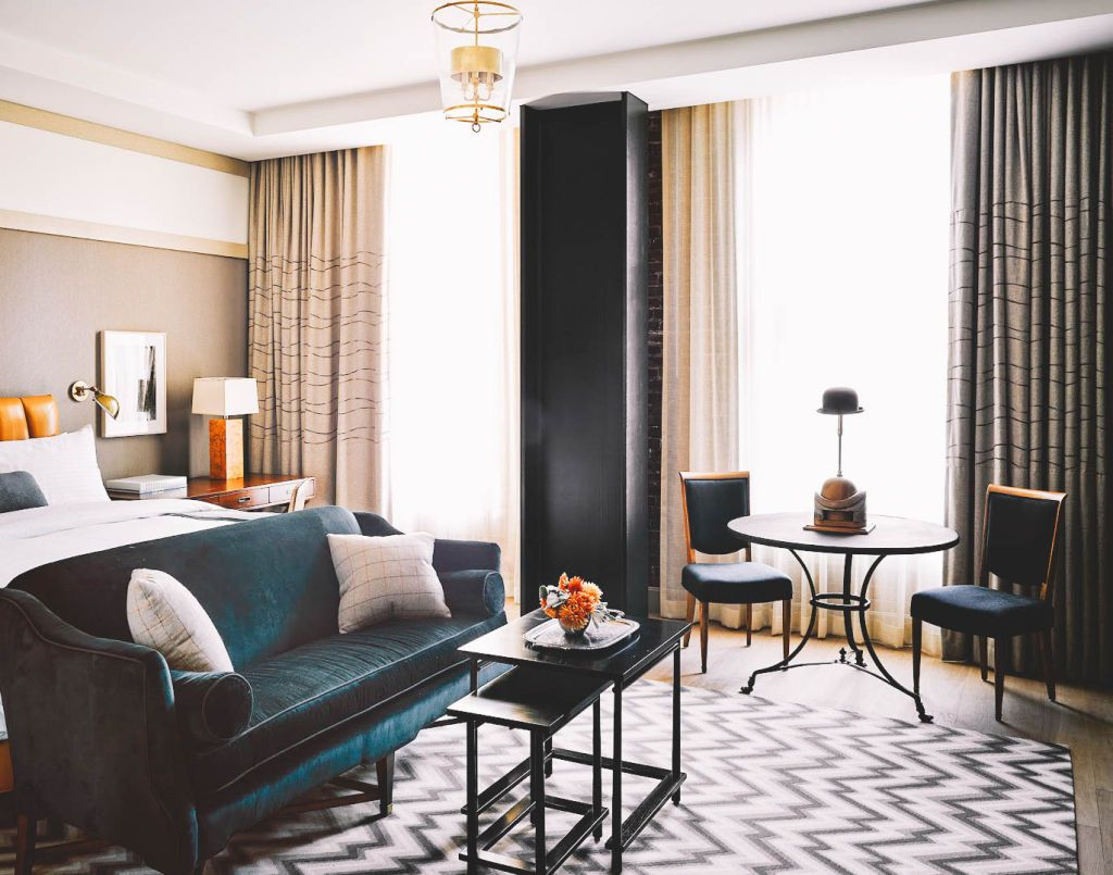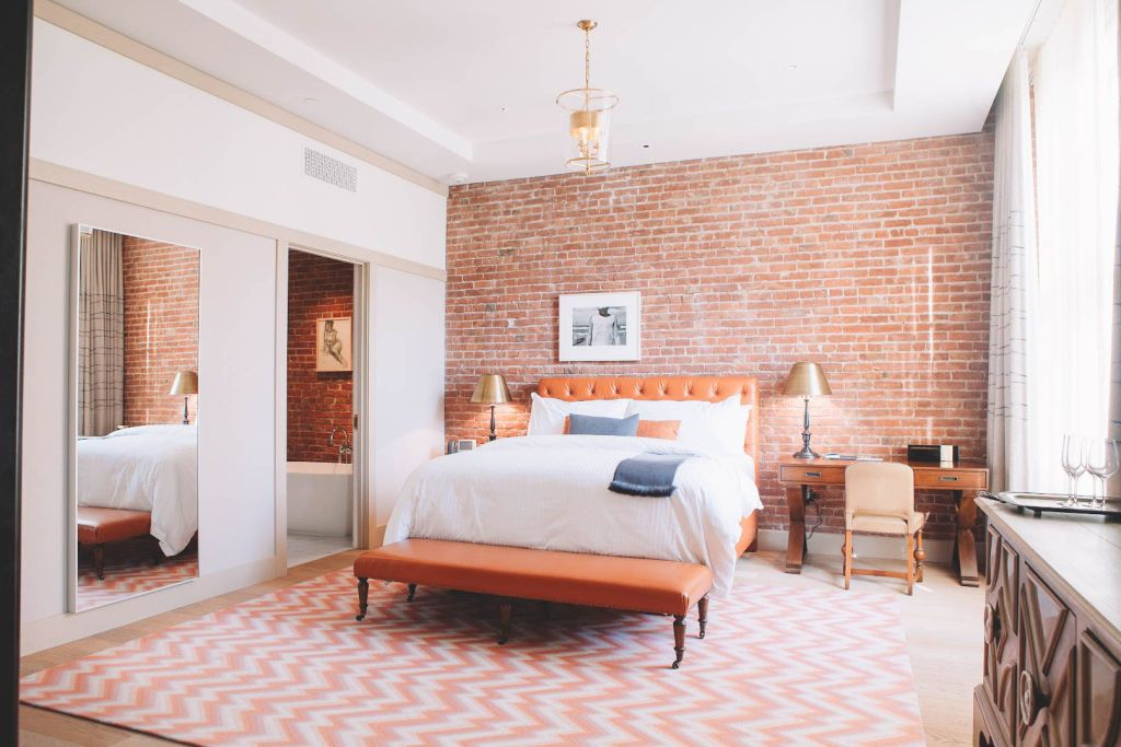 All accommodations feature hardwood floors with meticulously curated furnishings by Ken Fulk. A state of the art suite of amenities includes: 60” HDTV with connectivity across all devices, Geneva sound system, and complimentary WiFi. Bathrooms feature natural stone tile, a large tub,walk in shower, and amenities by esteemed British purveyor Molton Brown. The Battery’s minibars are stocked with a full liquor selection, mixers, and snacks chosen with an eye towards locally produced and unexpected treats. The hotel offers 24 hour front desk assistance.