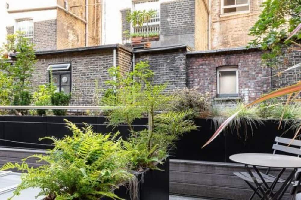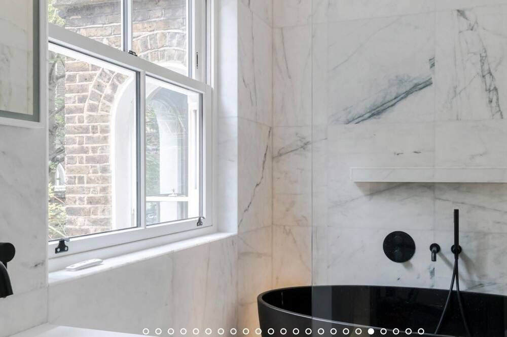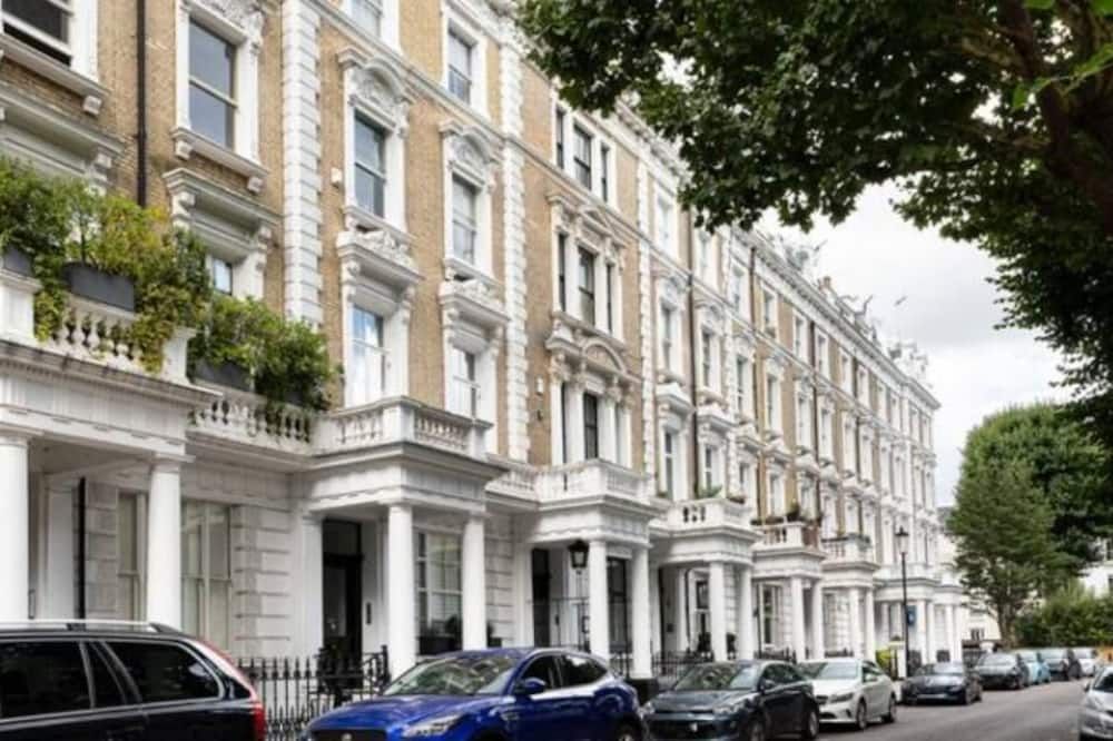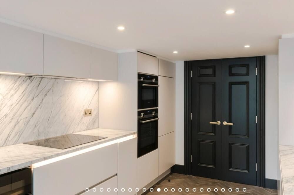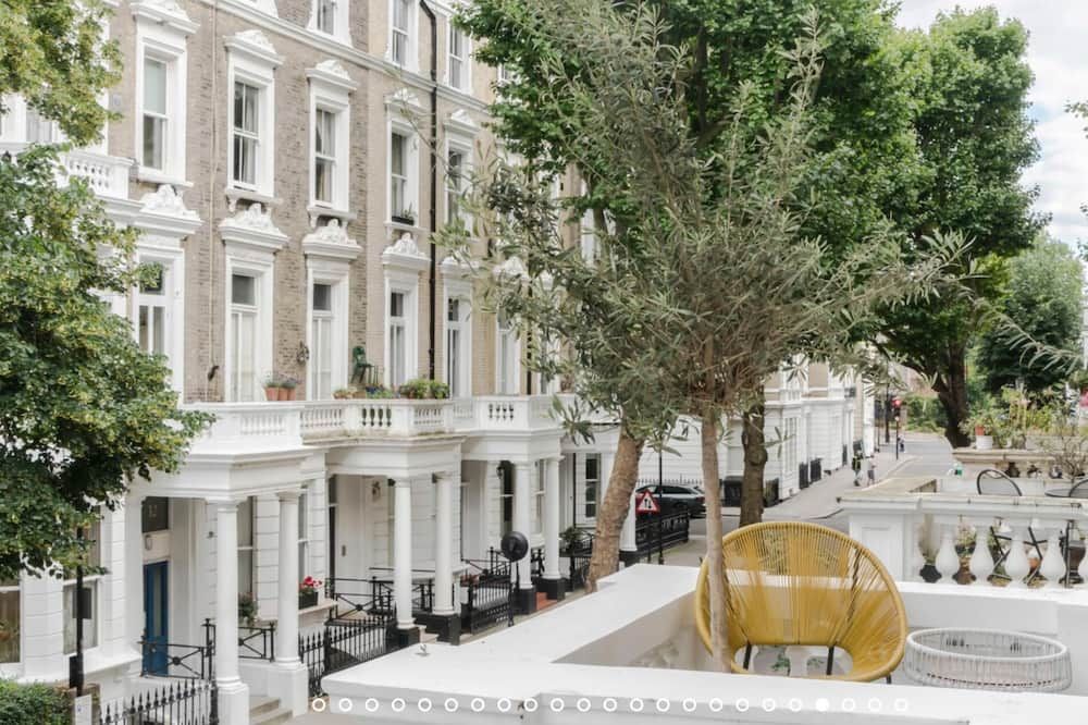 No detail has been spared at this apartment in Notting Hill. Expertly designed with chosen works from emerging contemporary artists, you'll notice the high-end touch that's been given here. The living area is an inviting space to unwind with double doors that open out onto a private balcony – ideal for evening vinos. There's also an outside space around the back of the home that encourages quiet moments to yourself. Elsewhere, you'll find the trendy street-side cafes, upscale restaurants and chic boutiques of Notting Hill right on your doorstep, while Portobello Road and its famous vintage market lie less than a ten-minute walk away.