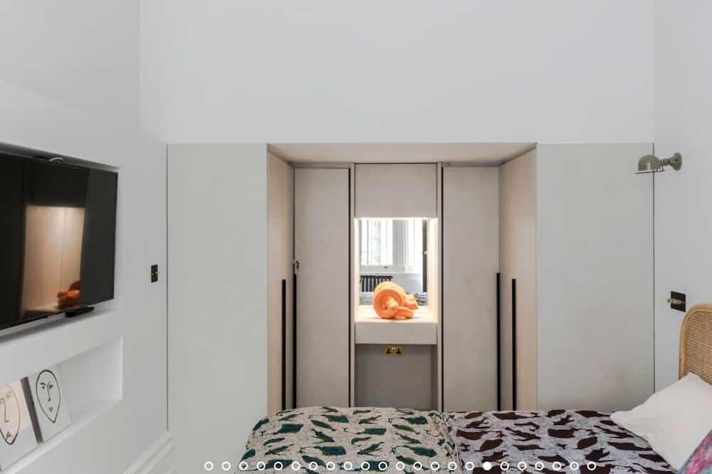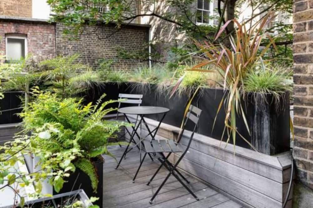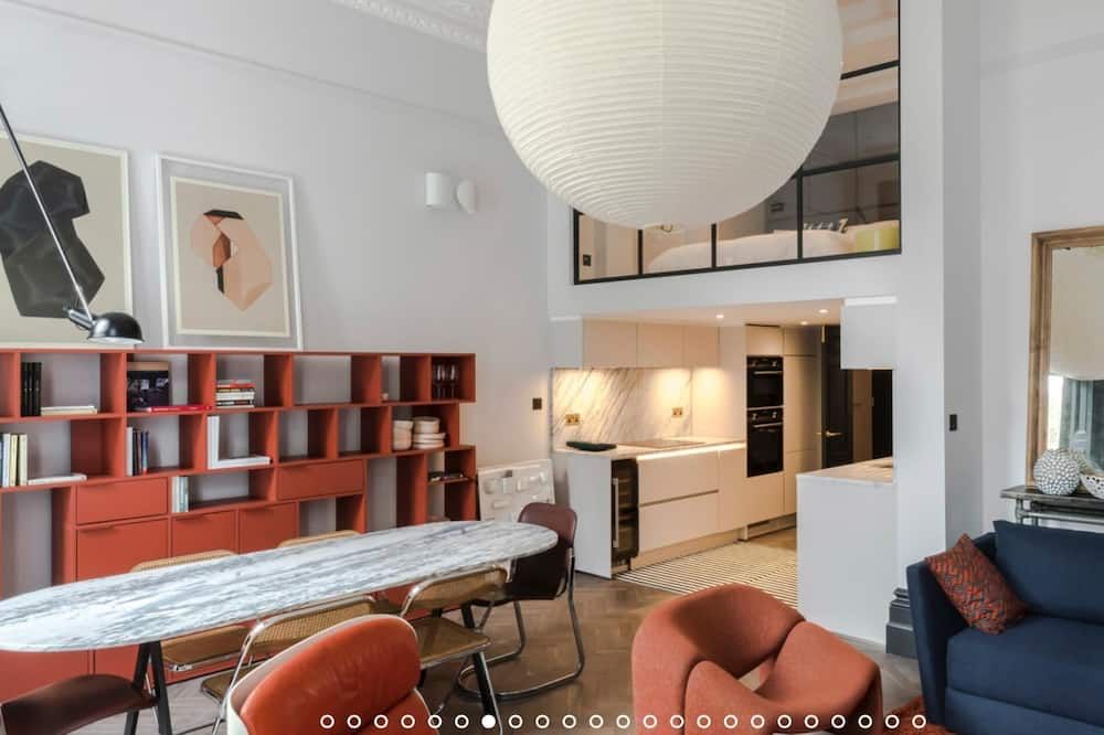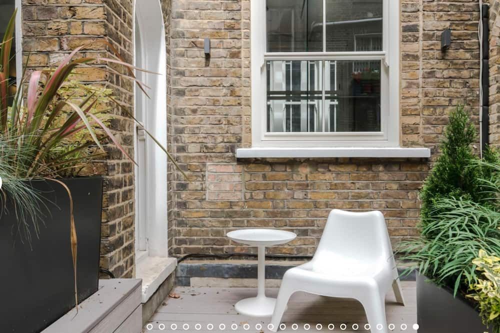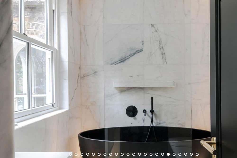 No detail has been spared at this apartment in Notting Hill. Expertly designed with chosen works from emerging contemporary artists, you'll notice the high-end touch that's been given here. The living area is an inviting space to unwind with double doors that open out onto a private balcony – ideal for evening vinos. There's also an outside space around the back of the home that encourages quiet moments to yourself. Elsewhere, you'll find the trendy street-side cafes, upscale restaurants and chic boutiques of Notting Hill right on your doorstep, while Portobello Road and its famous vintage market lie less than a ten-minute walk away.