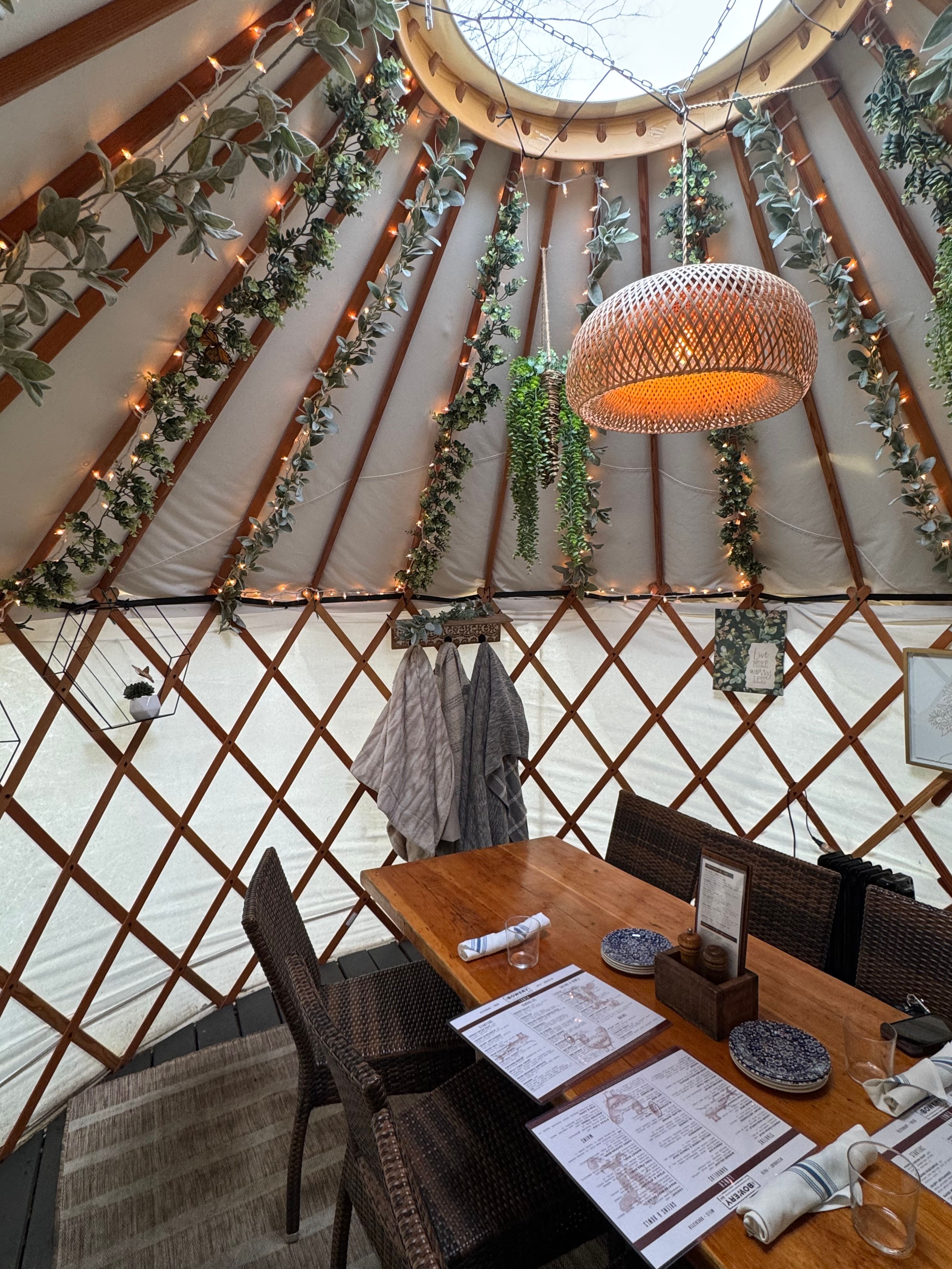 Located in historic Lower Mills in Dorchester, The Bowery Bar is a neighborhood tavern focusing creative modern comfort food, a whimsical cocktail program, and local craft beer offerings. We are committed to our guests’ experience and being an integral part of our local community. Our indoor dining space and bar is cozy and warm; the vintage décors hand-picked to encapsulate a space that makes you feel transported to simpler days. In the warmer months, come experience our spacious outdoor patio with an outdoor bar and lounge area for mingling, appetizers & cocktails. In the cooler months, watch our beautiful patio transform into a Winter Wonderland with our unique Yurts available to be booked for small private gatherings and group reservations.