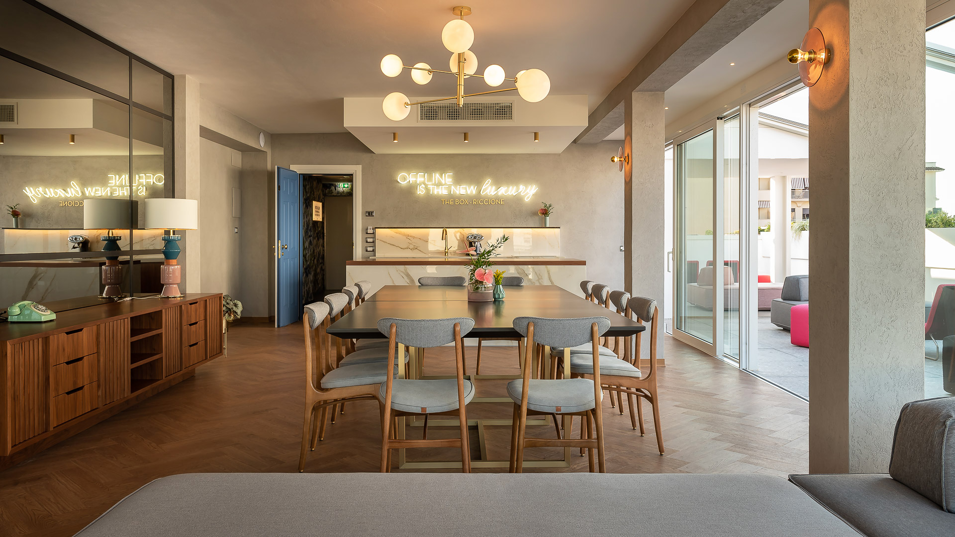 Do not image an ordinary hotel but a “romantic industrial” mix, inspired by the great director Wes Anderson in the city center and few steps from the sea of Riccione, one of the most vibrant city by the Adriatic Coast.