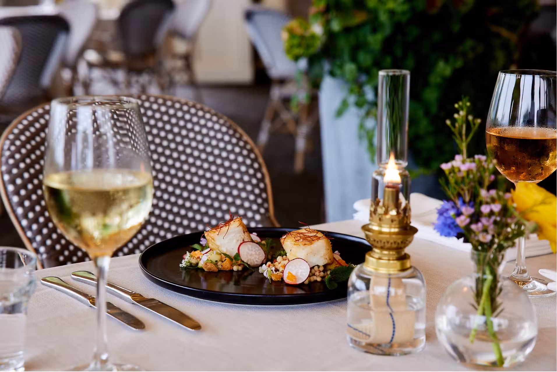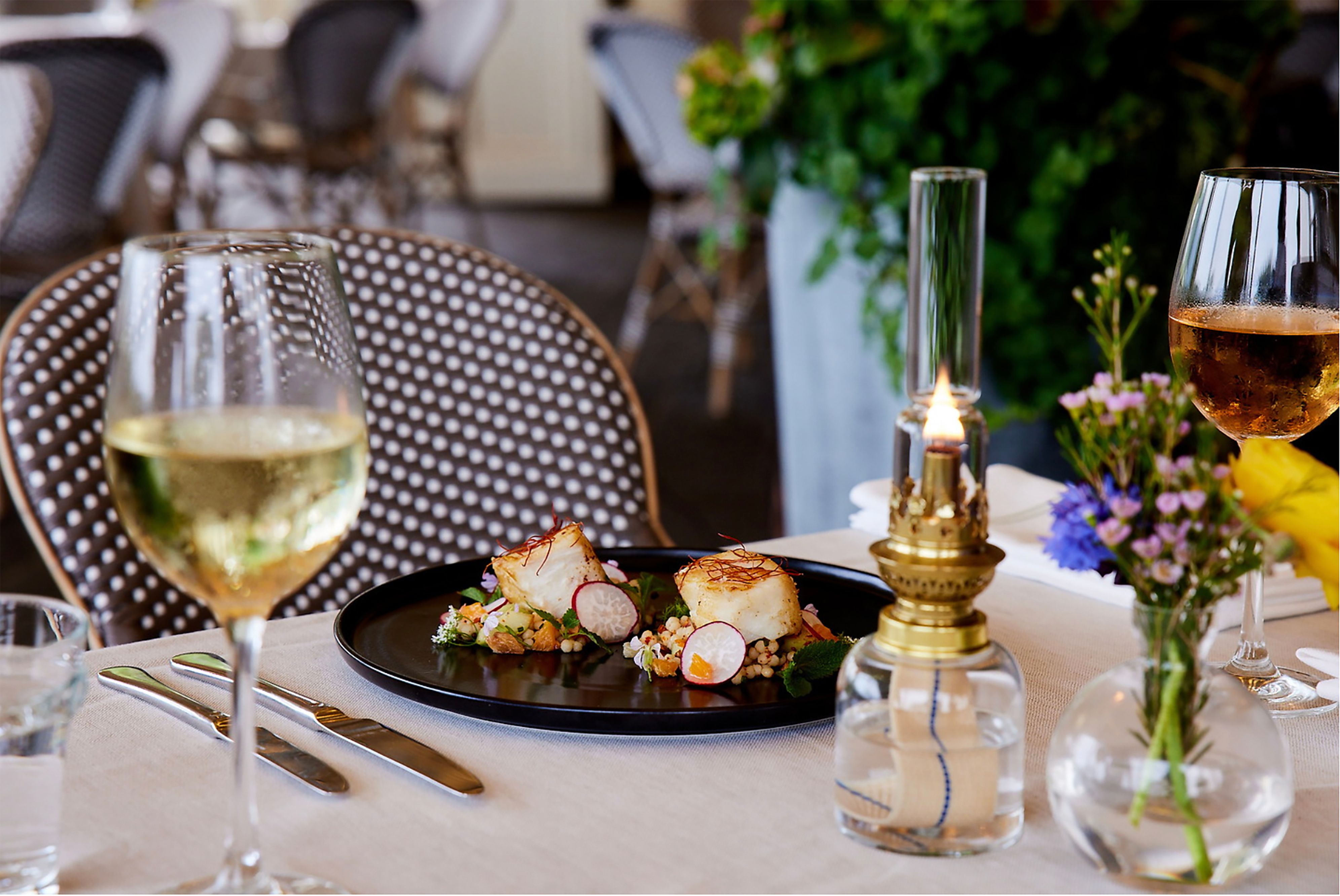 Step into Remy’s Loose, an intoxicating, come-as-you-are space perfect for everything from a light bite to a special occasion dinner. Here, comfort meets curiosity with cozy banquettes offering solace, garden-inspired cocktails sparking lively conversation, and meals crafted to bring people together. The open kitchen offers a glimpse into the culinary artistry behind each dish, while The Terrace at Remy’s Loose offers a relaxed coastal ambiance and waterfront setting, inviting you to unwind and savor sweeping views with a drink in hand.Comfortable, stylish, effortlessly cool, with a playful twist on Parisian flair, Remy’s Loose offers an experience that’s as inviting as it is unforgettable.At its heart, the cuisine is intrinsically French, elevated by the coastal spirit of Rhode Island. From the freshest local catches to ingredients sourced from around the globe, every bite celebrates a perfect balance of flavor and craftsmanship.Make a reservation to experience it for yourself.