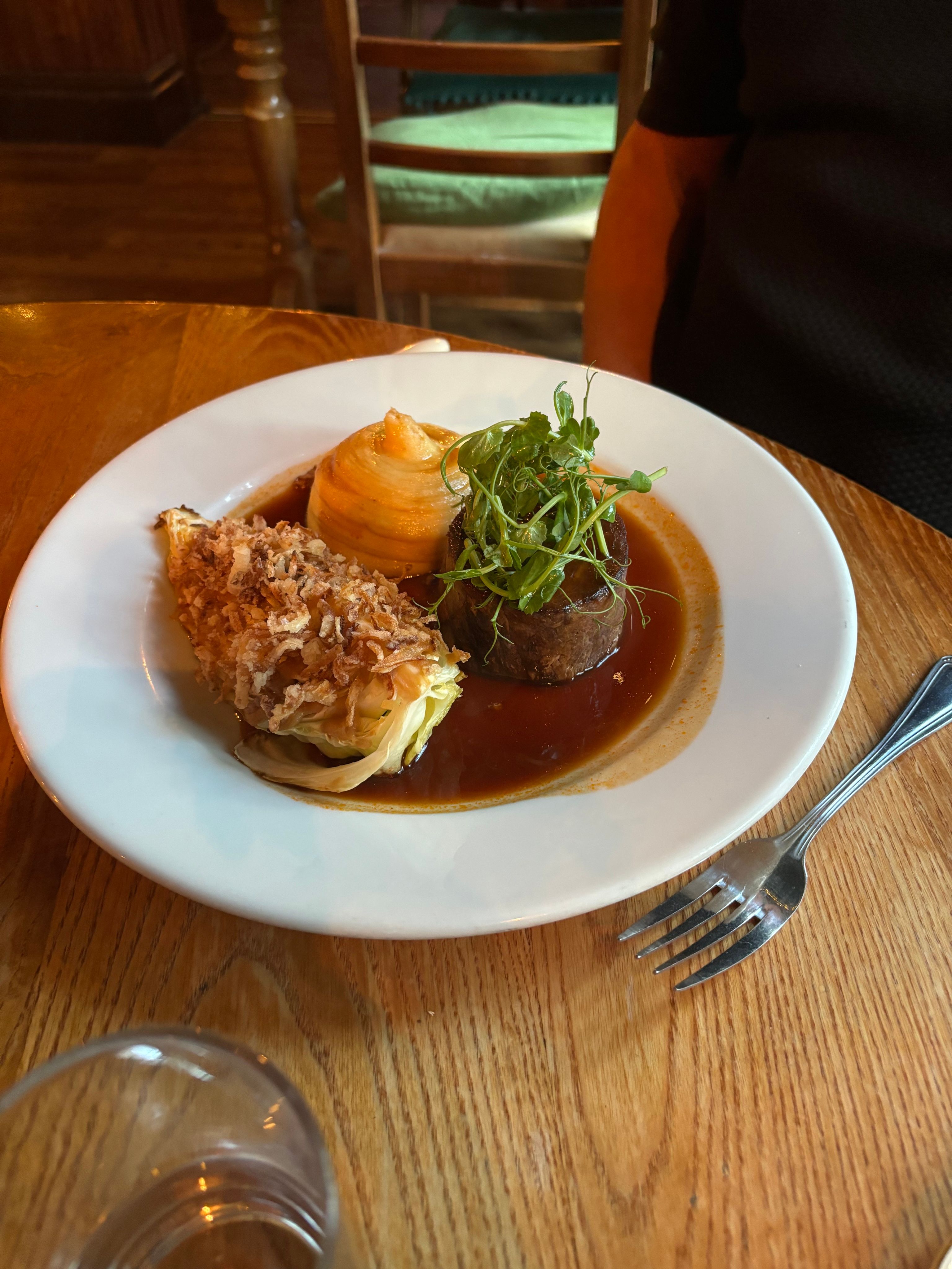 The Crathorne Arms is a great pub in a wonderful community spirited village, lovely people, Lord Crathorne himself couldn’t be more supportive, how lucky we are.Our life has come a full circle from a town pub in Middlesbrough (well Eugene has) to the tontine (McCoys Hotel, Restaurant and Bistro) to a village pub in Crathorne, Ten Minutes from Middlesbrough.We live above the pub, our furniture and furnishings live downstairs as they can’t and won’t fit up the stairs! So the canoe has the condiments, the bookcases our books, the huge sofa with big squashy cushions to sink into, tin lanterns reflecting patterns on the ceiling, this all makes for a homely feel and that’s what we would like to create along with good wholesome food and drink.Of Course the staff, front of house and kitchen are all great, hardworking, smiley, enthusiastic young people and a joy to work with.