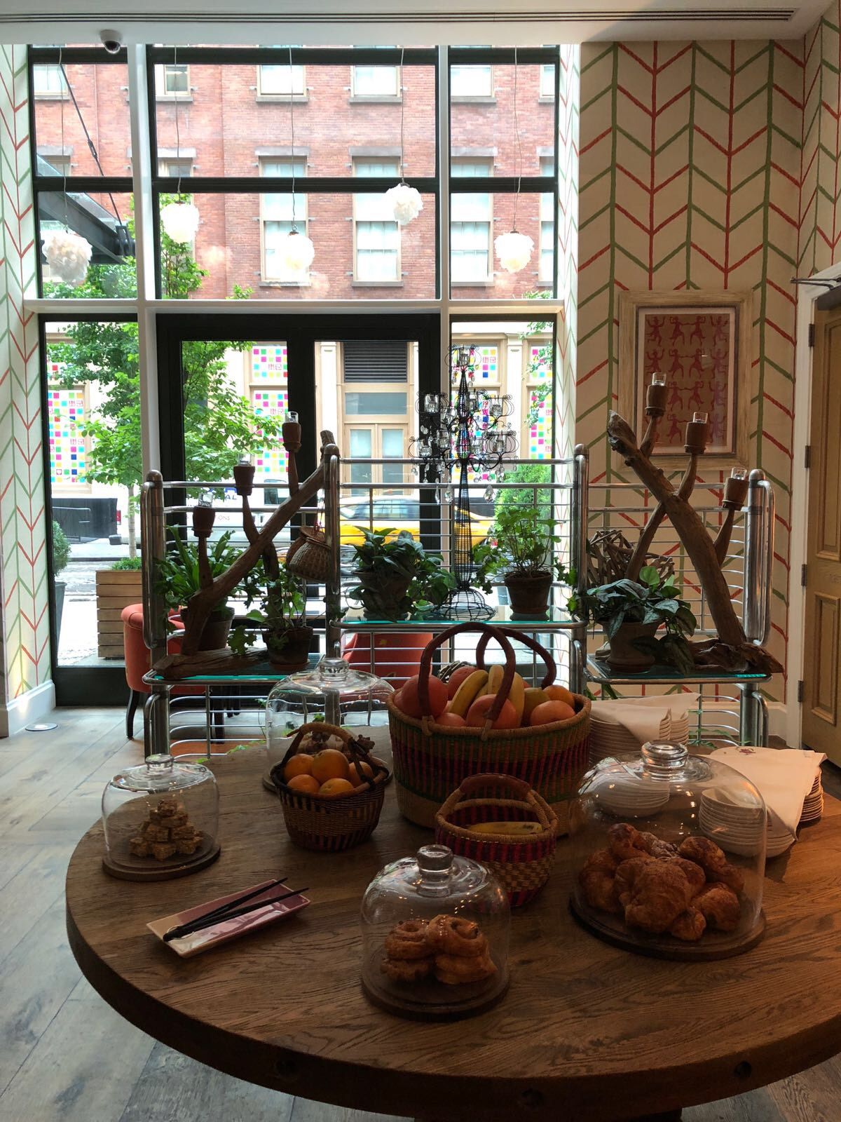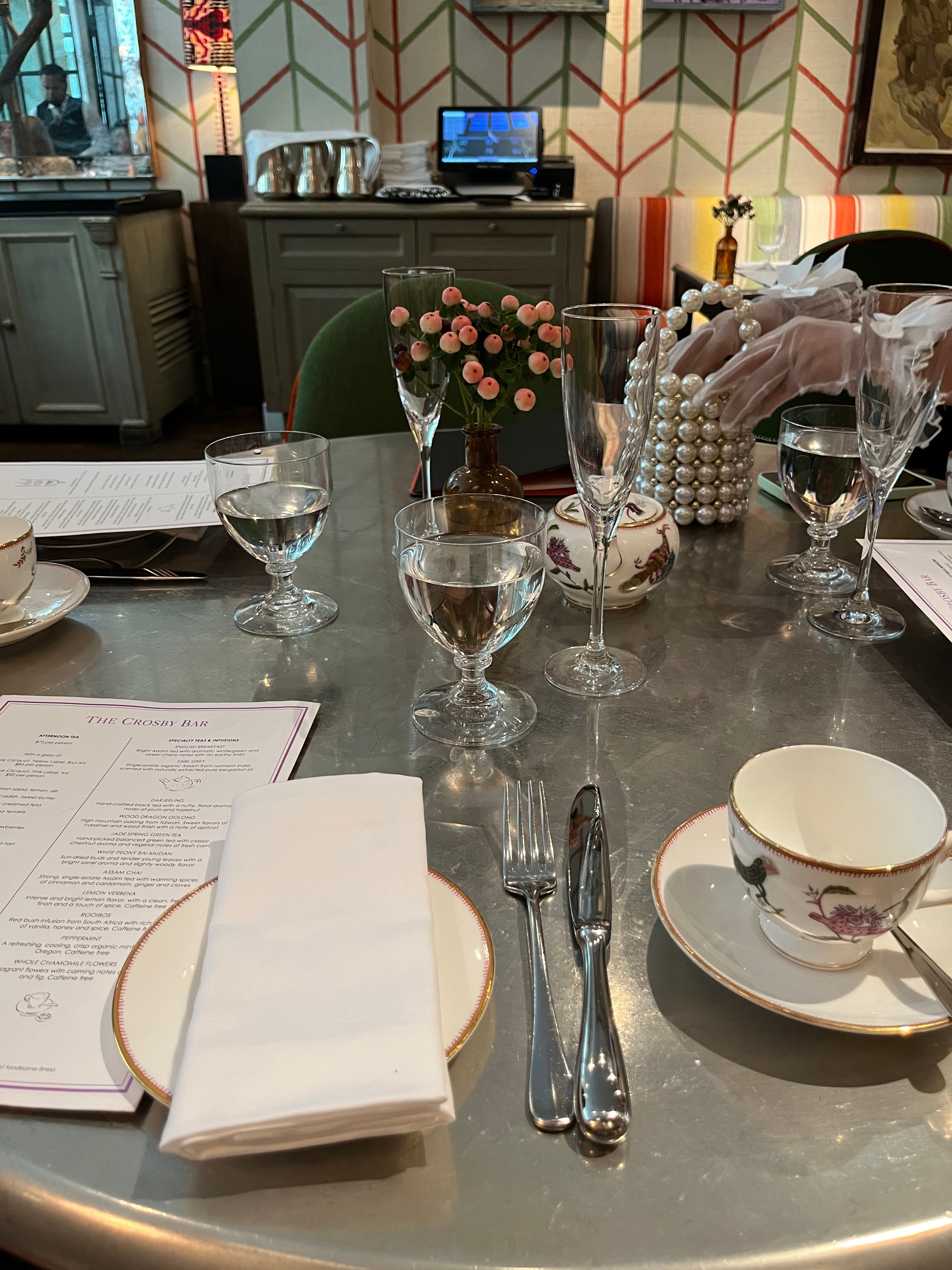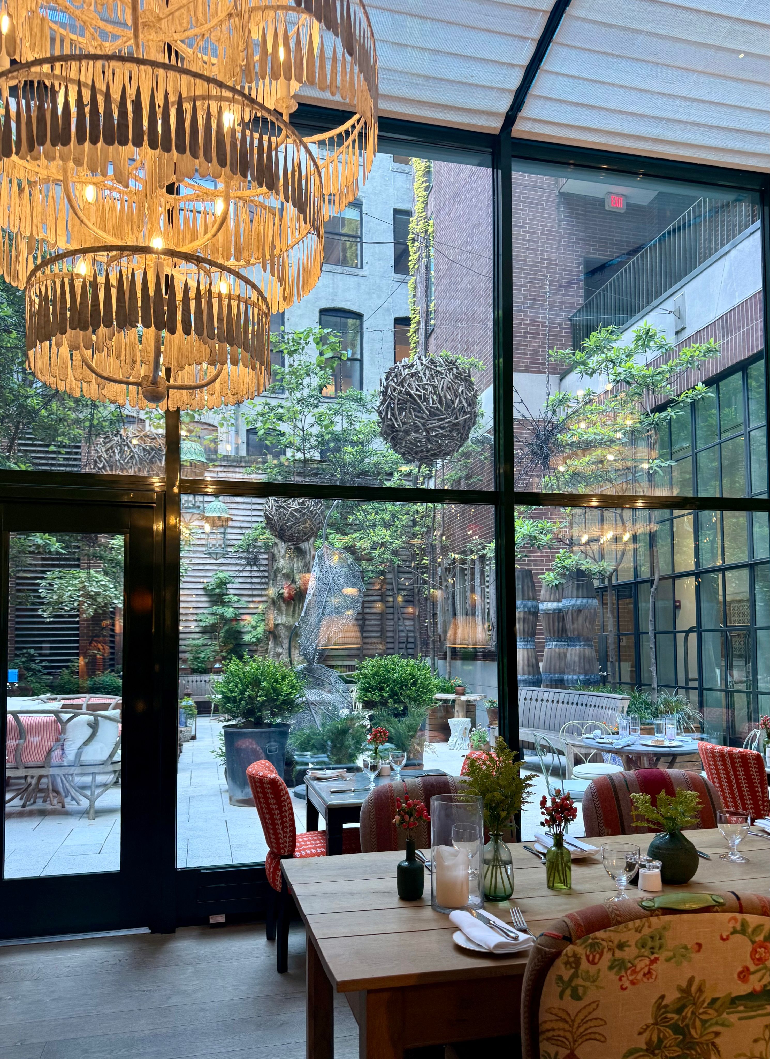 The Crosby Bar & Terrace is located on a quiet, cobblestoned street inside Soho’s Crosby Street Hotel. We offer modern American cuisine in a spacious room with high ceilings, long pewter bar, gray oak floors and tall warehouse-style windows which look out to the trees at the hotel’s entrance and the garden on Lafayette. It has an altogether leafy, breezy feel with lots of light throughout the day.