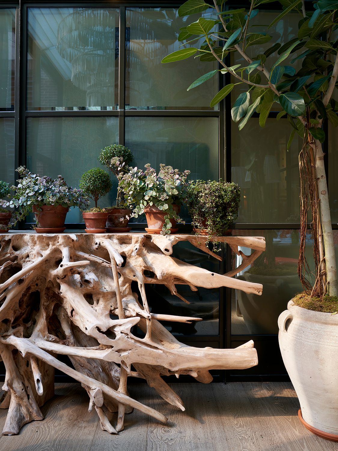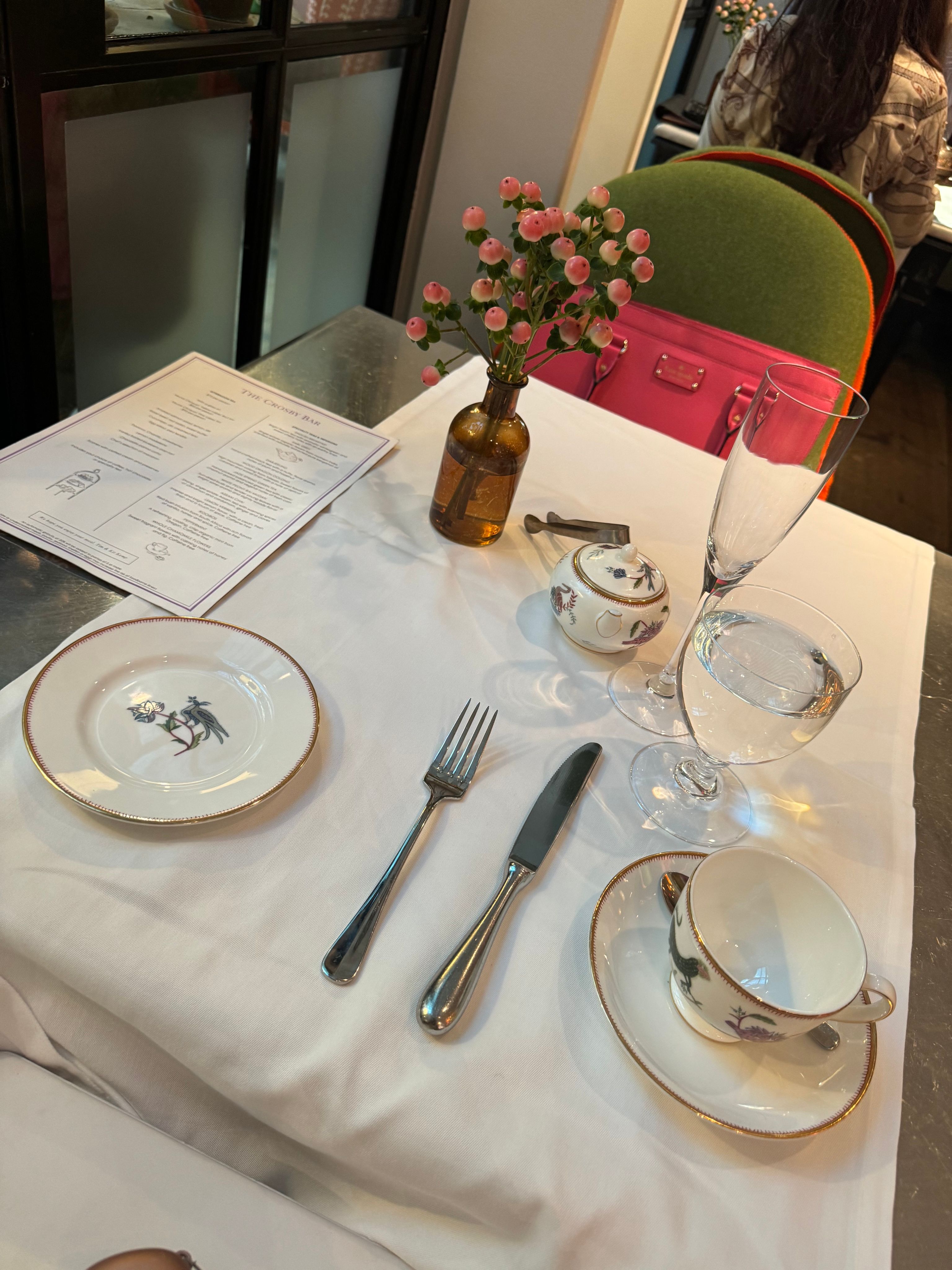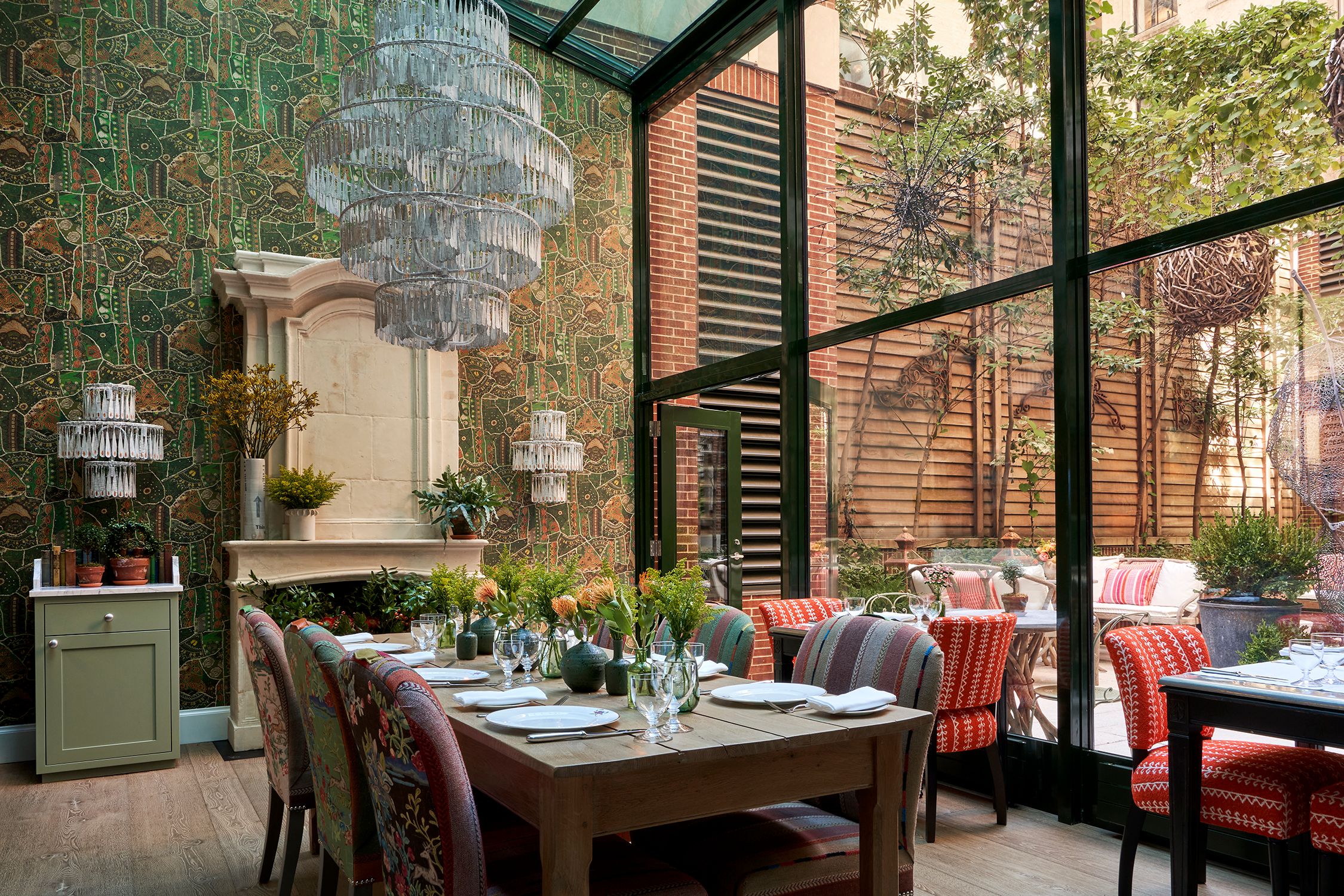 The Crosby Bar & Terrace is located on a quiet, cobblestoned street inside Soho’s Crosby Street Hotel. We offer modern American cuisine in a spacious room with high ceilings, long pewter bar, gray oak floors and tall warehouse-style windows which look out to the trees at the hotel’s entrance and the garden on Lafayette. It has an altogether leafy, breezy feel with lots of light throughout the day.