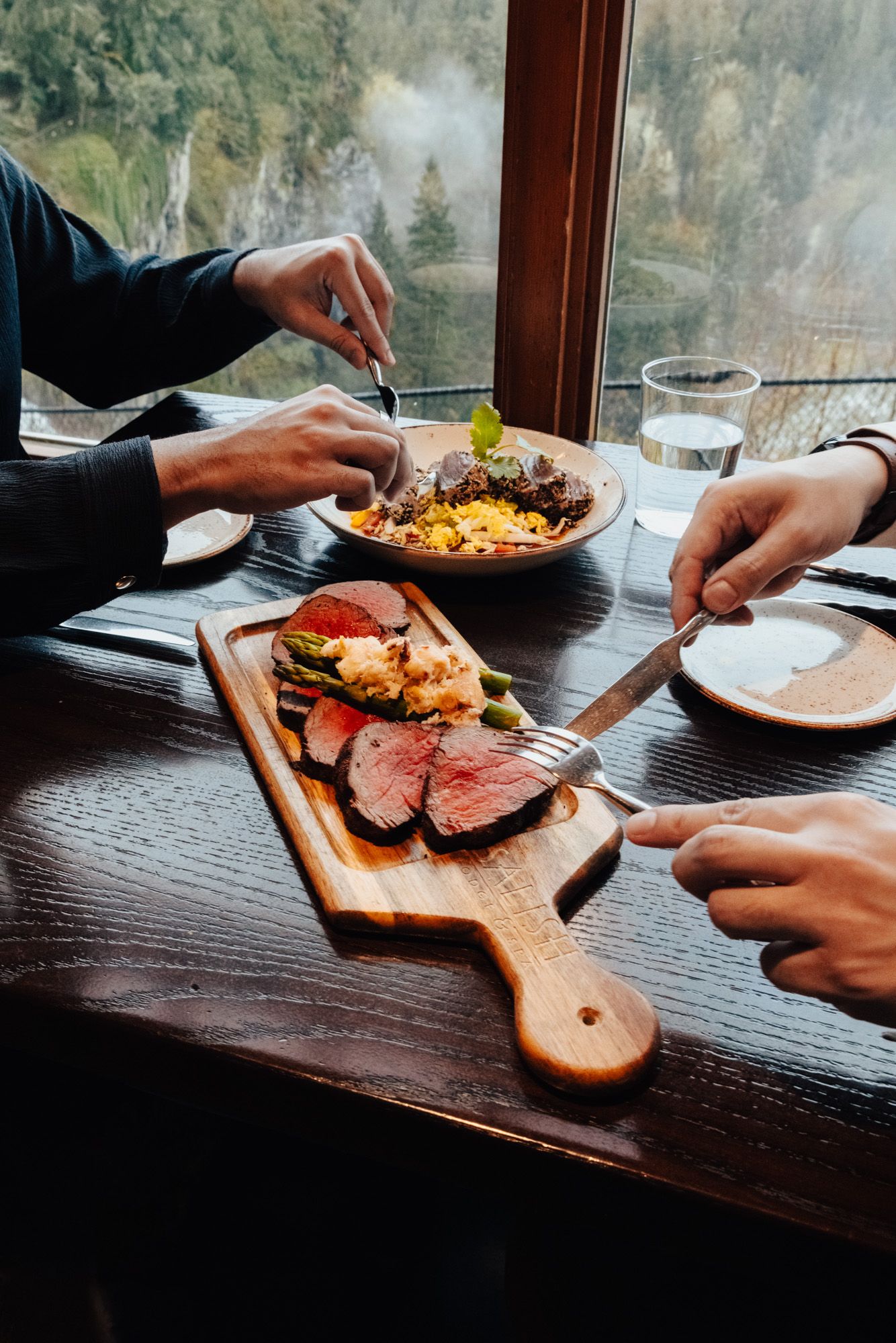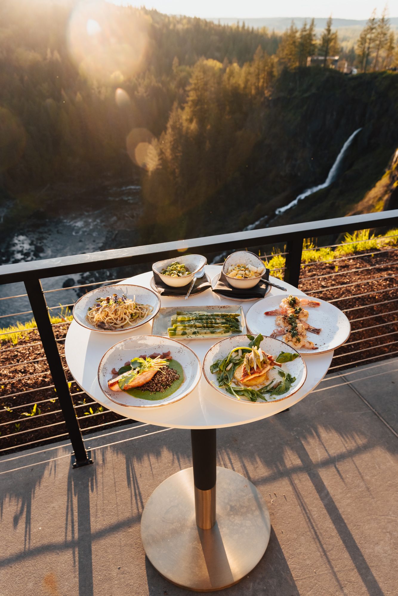 Located atop the breathtaking Snoqualmie Falls, The Restaurant & Terrace Bar at Salish Lodge offers an elevated dining experience blending classic American steakhouse favorites with Pacific Northwest flavors. With a newly reimagined menu, guests can indulge in dry-aged local beef, responsibly sourced seafood, and creative vegetarian options, all while enjoying panoramic views of the falls. Whether you're celebrating a special occasion or savoring a casual meal, the warm hospitality and sophisticated atmosphere promise an unforgettable experience.Signature dishes like the world-renowned Honey from Heaven, the hearty Country Breakfast, and a variety of premium cuts like New York strip and bone-in ribeye highlight the best of the region. Guests can also savor local Alaskan king crab legs, fresh salmon, and innovative sides such as Northwest grits. The Restaurant at Salish Lodge invites you to embrace exceptional food, local ingredients, and the stunning beauty of the Pacific Northwest.