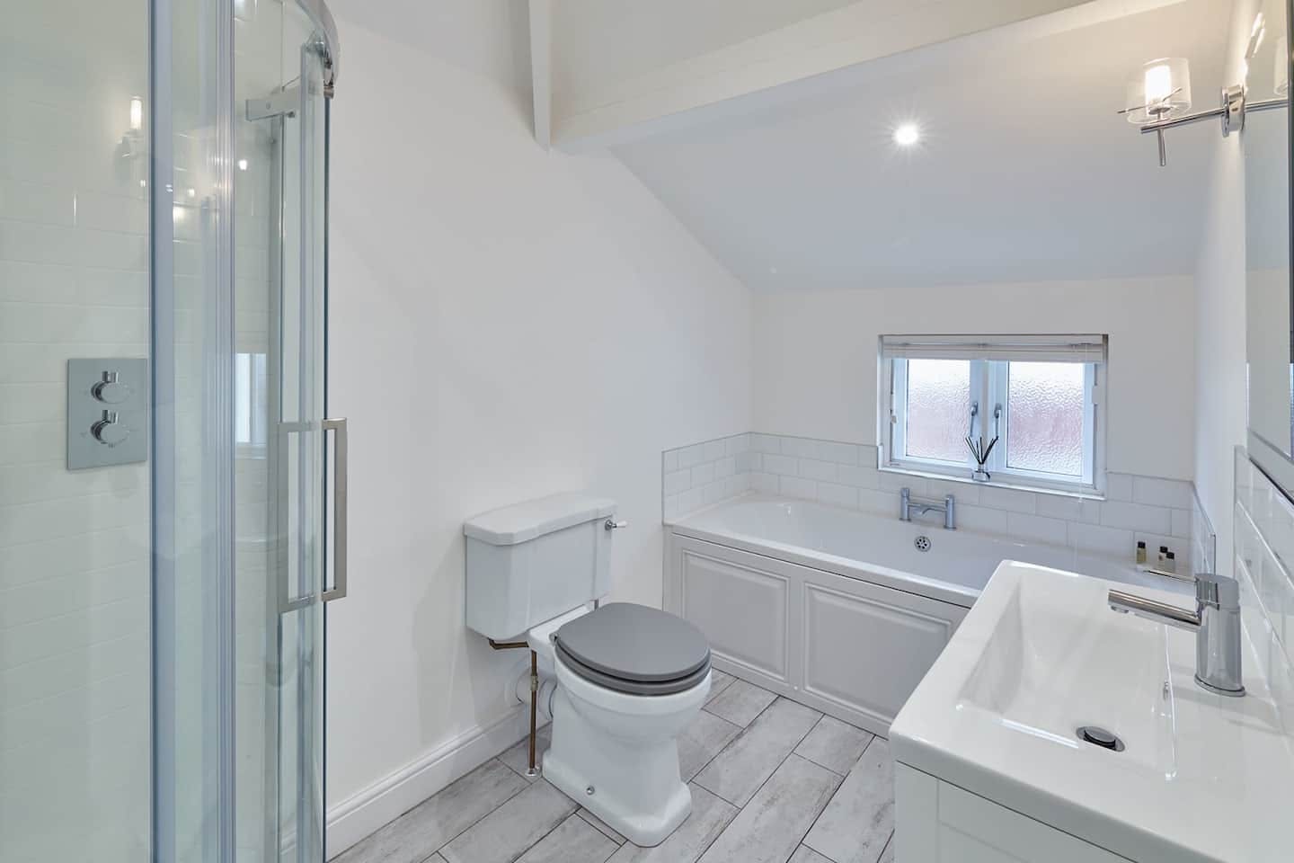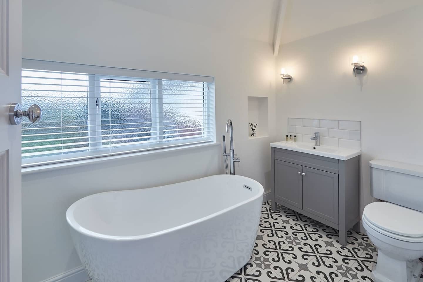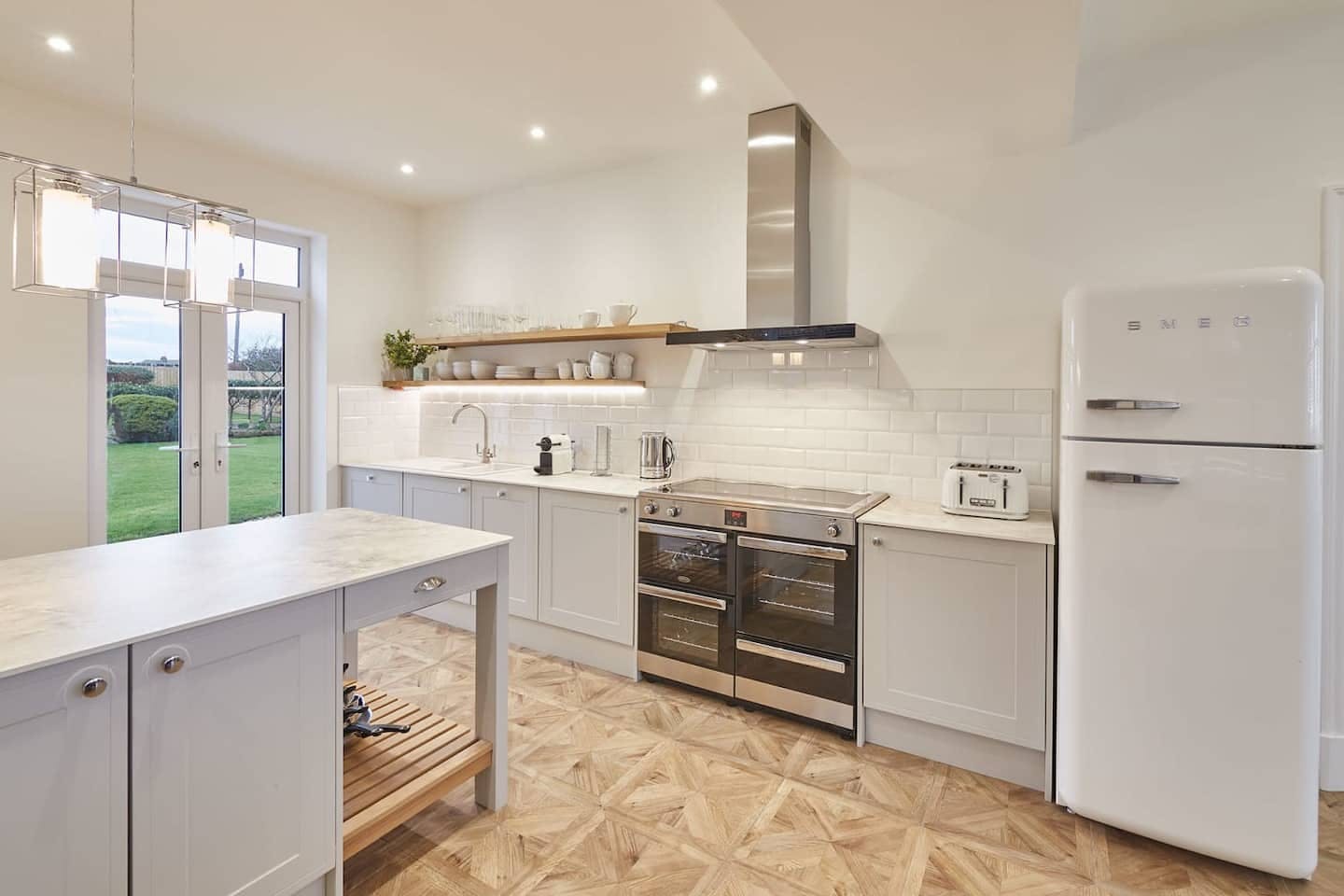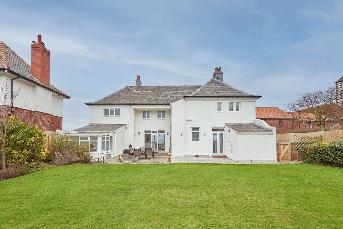 You'll find this sleek home just moments from Whitby Beach. It's bright, tranquil and homey, made even better by the sea views out the big bay windows. In the living room, there's a cosy fireplace for chilly evenings and plenty of plush seating to sprawl out on. But the kitchen is the heart of this home – with a huge dining table and marble countertops offering lots of prep space, this is where families can hang out and reminisce over delicious home-cooked meals. Open the French doors and step onto the private garden, where you can sit with a glass of wine while kids and pups run in the yard. Upstairs, there are five comfortable bedrooms, the star of which is the sumptuous master. After a day at the beach, sink into the lush freestanding tub and watch the waves break on the shore – some guests have even seen dolphins swimming in the water. Best of all is the location. It's up on the West Cliff, looking out over the beach and the North Sea. A short stroll down the hill gets you to Whitby's main drag, where the arcades, fish and chip shops and pubs evoke an old-fashioned, seaside charm. The famous Abbey, part of the inspiration for Bram Stoker's Dracula, is a twenty-five-minute walk away – it's a bit of a climb, but trust us, the views over town are totally worth it.