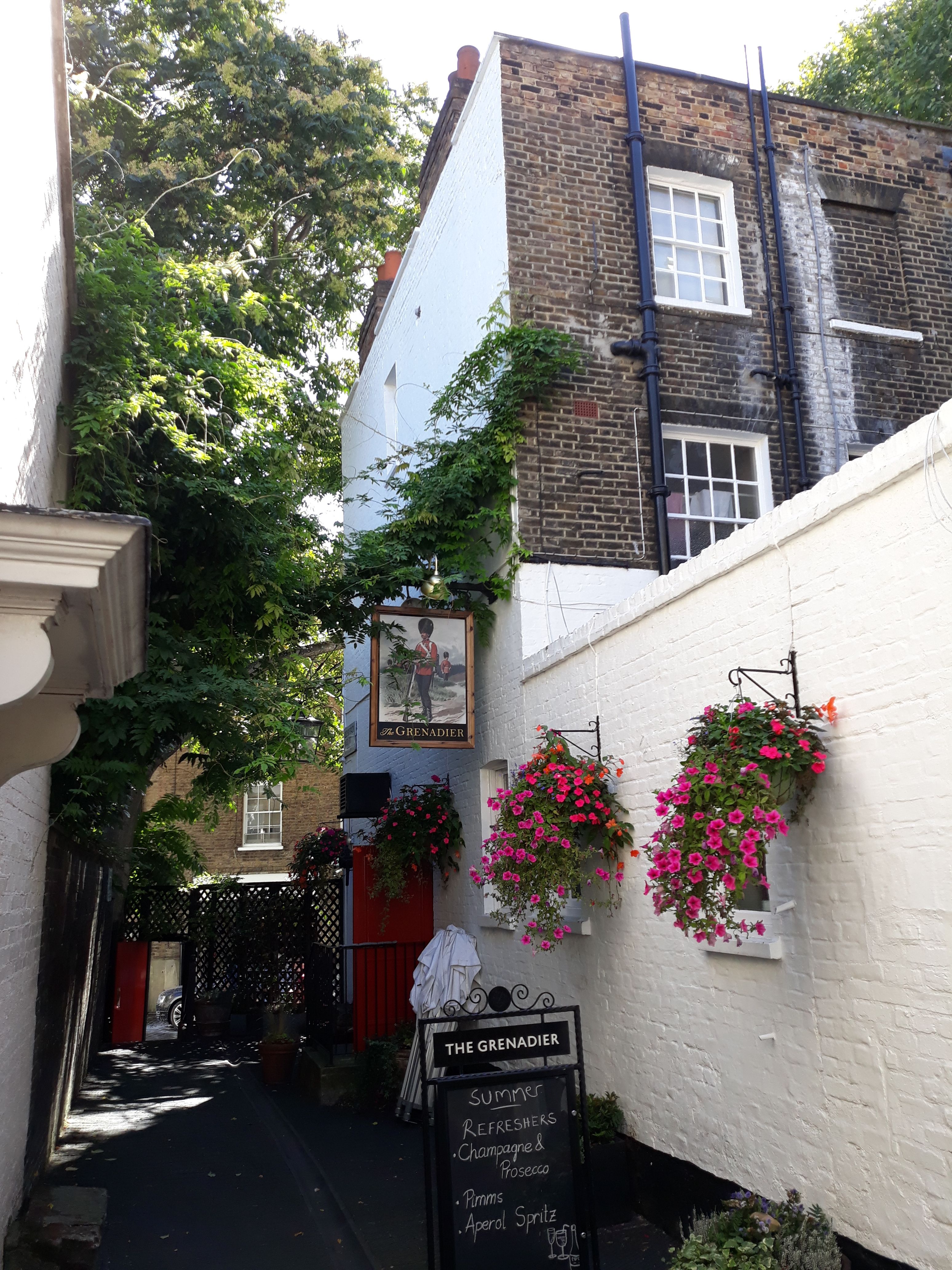 Join us at Grenadier. A landmark in its own right, The Grenadier in Belgrave Square is royalty amongst London pubs. This historic treasure chest is a hidden gem, beloved by both locals and visitors to the city.Dogs welcome in bar area only.BOOKING ARE FOR DINING ONLY.