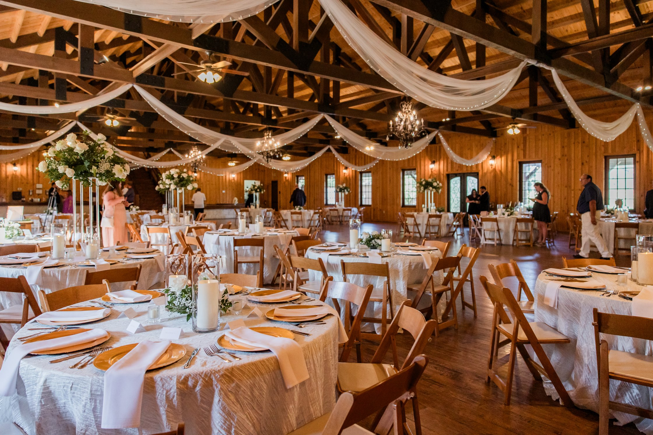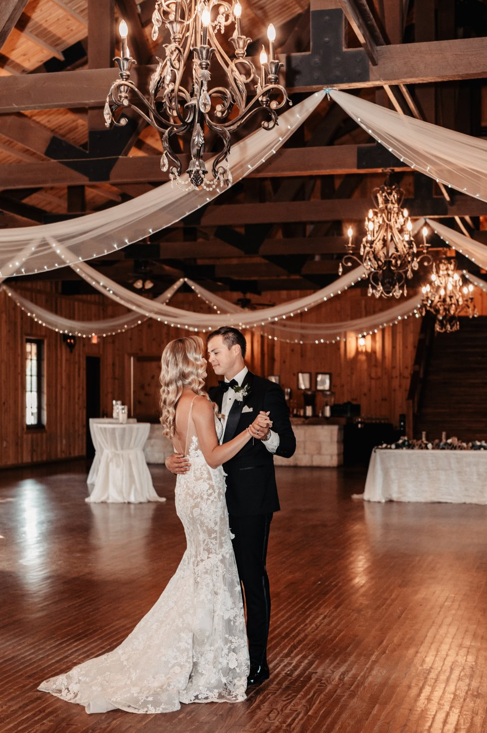 The Milestone, Boerne is a country-style wedding venue located 30 minutes from San Antonio in Boerne, Texas. With its beautiful landscaping, stunning entrance staircase, and double-arched cast iron doors, the Milestone accomodates up to 300 guests. You can exchange your vows outdoors underneath a beautiful, wooden, open-air pavilion with a lush hillside view to serve as your backdrop. As you and your spouse take unforgettable pictures around this nature-inspired venue, your guests can sip on delicious cocktails on the covered portico and walk-around porch. From there, they can move into the spacious reception hall. This rustic yet elegant venue features a dance floor, hardwood oak floors, open-beam trusses, crystal chandeliers, and a built-in bar.