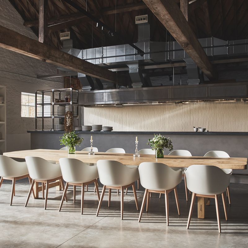 The Ox Barn is a 56-seater destination restaurant under the direction of Head Chef, Charlie Hibbert. Rooted in a passion for the local land, food and entertaining, the carefully curated menus are farm-based and plant-inspired. His team and the gardeners at Thyme work together to select and grow the fruits, vegetables and herbs used to create his Modern British Countryside fare. The nineteenth century former oxen house is the newest addition to the family of meticulously restored farm buildings. A state-of-the-art piece of agricultural architecture at its conception, Caryn Hibbert worked meticulously to preserve the soaring archways and original Cotswold stone rubble walls, to now house a modern, dining destination - including a contemporary bar and seven and a half metre Charvet open kitchen - to allow for an authentic, heritage-rich dining experience, enabled by today’s best culinary technologies.