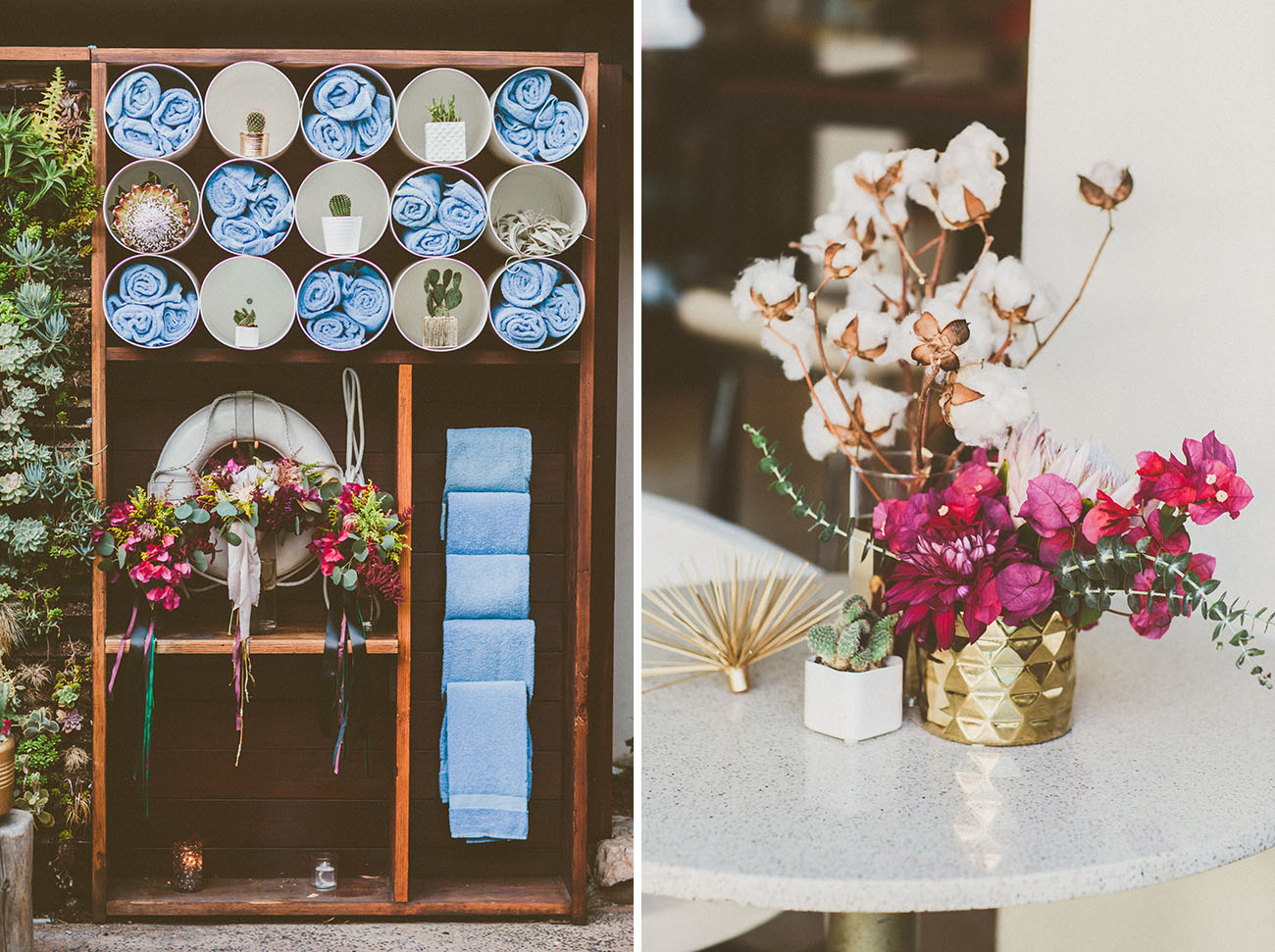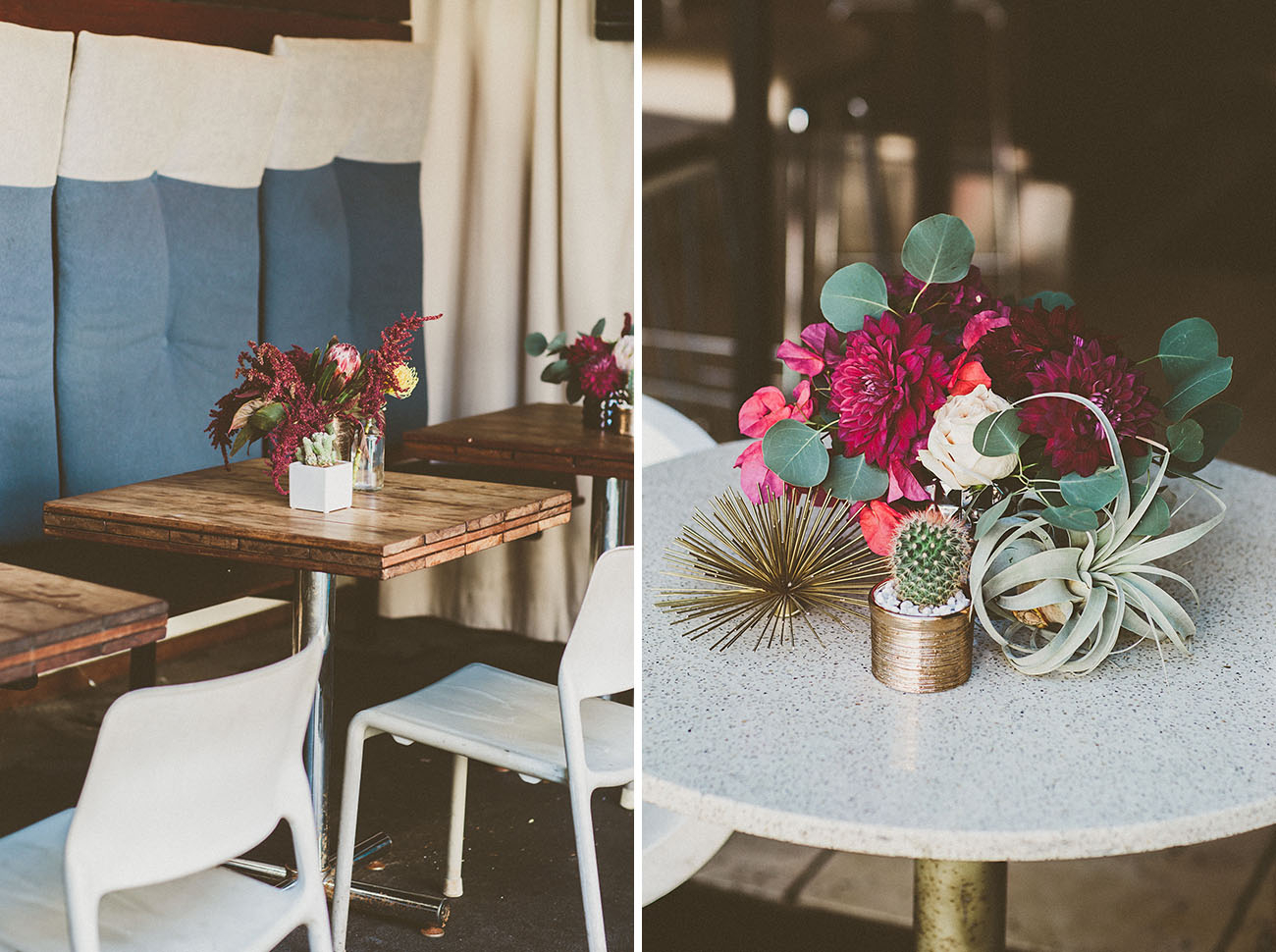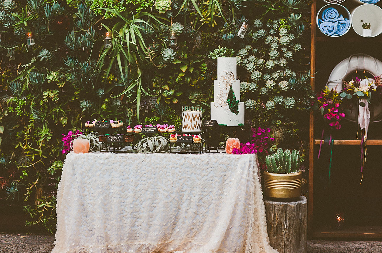 Tip: Choose whole chunks of cheese and fun seasonal fruits (fresh + dried) like persimmons or stone fruit paired with nuts and lavender honey! You could even use these to incorporate other colors onto your tabletop display.