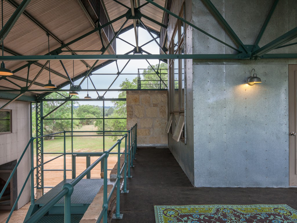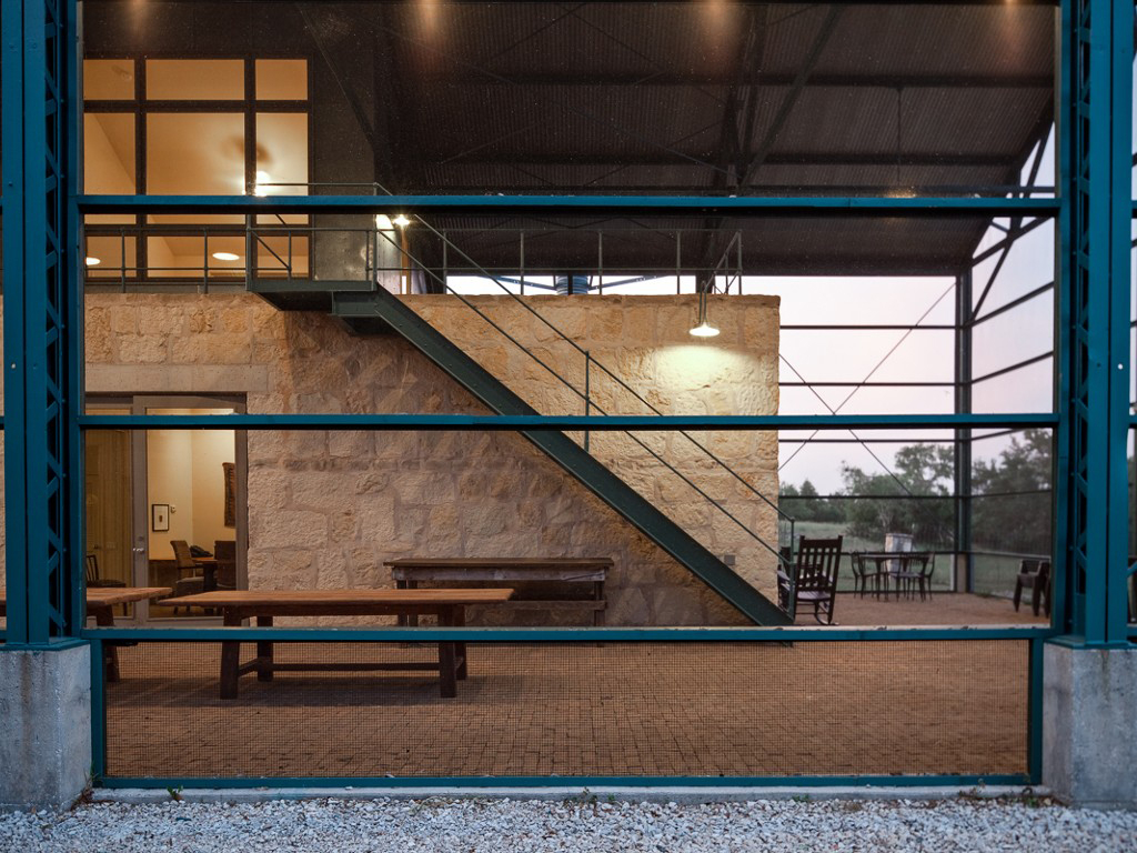 An award-winning architectural landmark, the building was designed by Lake|Flato Architects as a private residence using steel recycled from the Alamo Cement Plant. The house was completed in 1989.