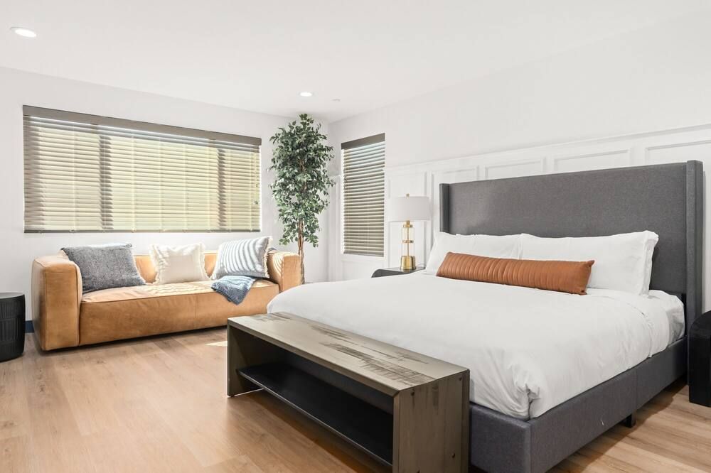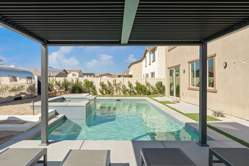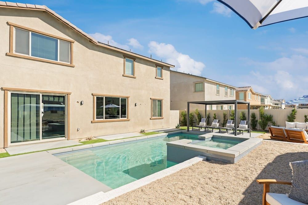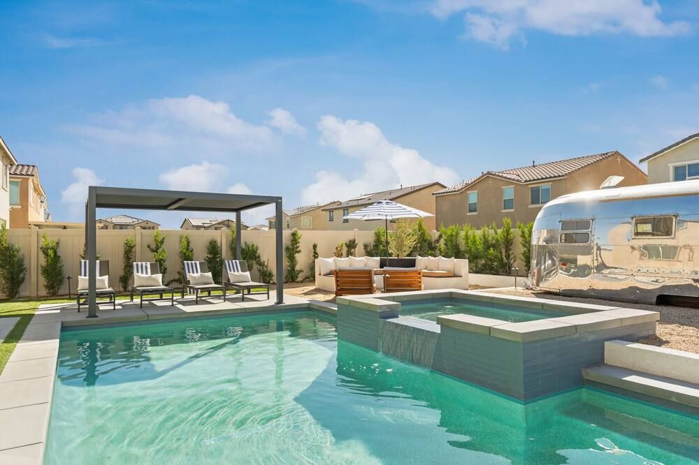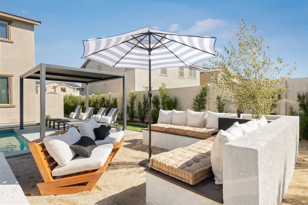 Rooted in the heart of the desert, this home leaves the rest of the world behind and presents to you a 5,700-square-foot playground. With nine en-suite bedrooms and eighteen beds configured to your liking, there is certainly ample space to bring all of your family, friends, or even work colleagues together for an unforgettable experience. A shuffleboard, table tennis, table football, putting green, and fire pit will have you spoilt for choice as to how to spend your time. Plus the lagoon-style pool fringed with palms and the bubbling hot tub. And that is before you have even ventured beyond the perimeter. Just a ten-minute walk from the property is the Empire Polo Club and a few minutes in the car can bring you seven premier golf courses. Whilst a haven for golf lovers, other guests can seek out some of the desert’s best restaurants, shops and attractions, equally nearby. Bring your own groceries or opt to have the dedicated concierge stock up before your arrival so that a private chef can rustle up a fantastic feast. This desert house turns the ‘stay at home’ holiday on its head, making your life stress-free and fabulous.