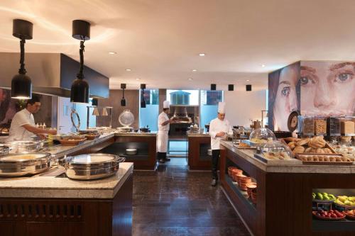 The Ritz-Carlton, DIFC has food outlets to suit every palate and taste. Cafe Belge serving Belgian cuisine in a 1920s theme. Cake is a contemporary patisserie and cafe that is devoted to serving great cake, as well as light meals and coffees throughout the day. Cara is a sophisticated breakfast and lunch venue, with a weekly themed dinner buffet. Le Cirque offers French cuisine with an Italian Twist. Center Cut Steak House with premium steaks. The Sunken Garden features an alfresco venue for light bites, refreshments and shisha. Flair No.5 is an outdoor lounge and bar with a variety of home-crafted beverages