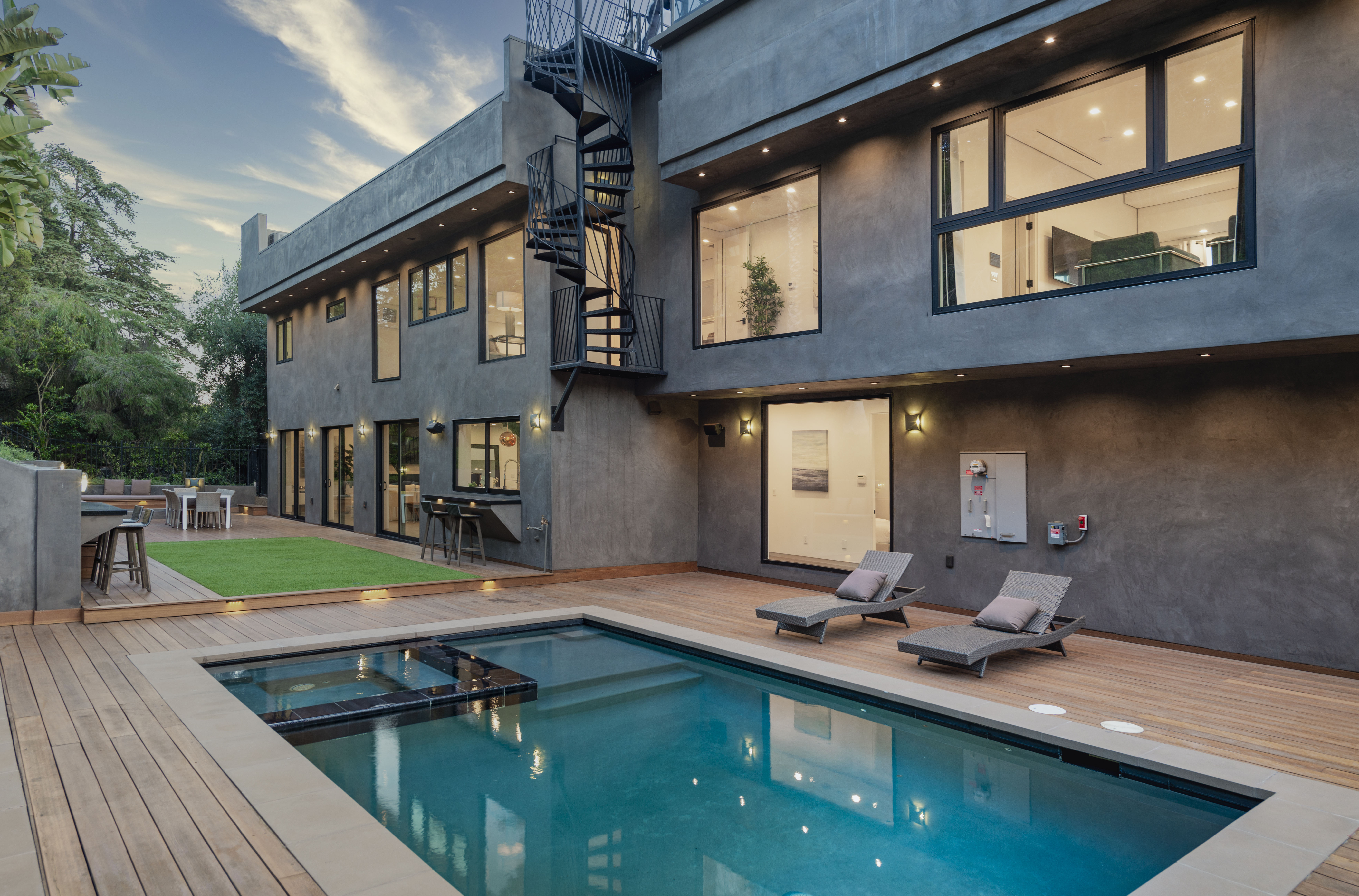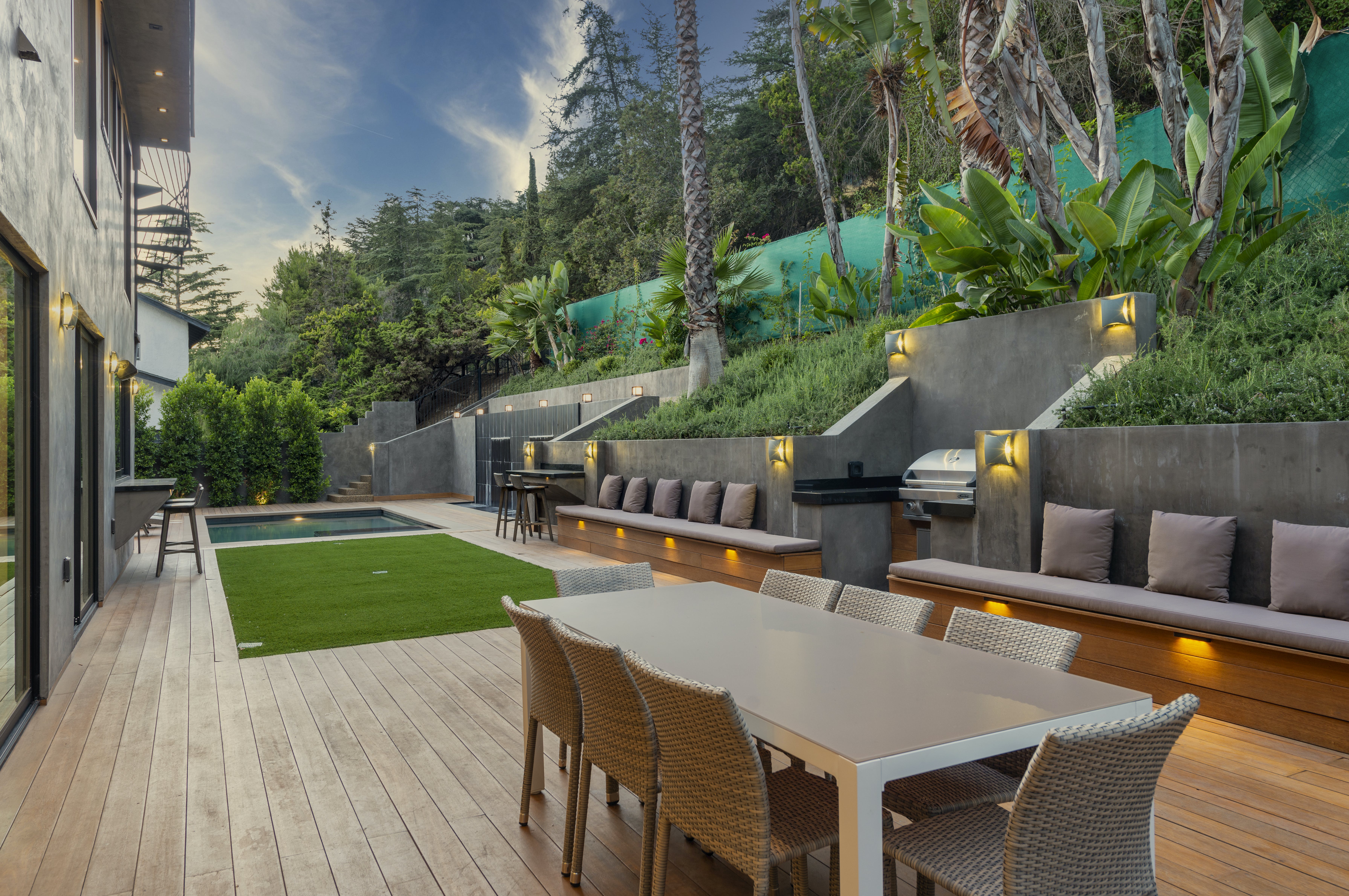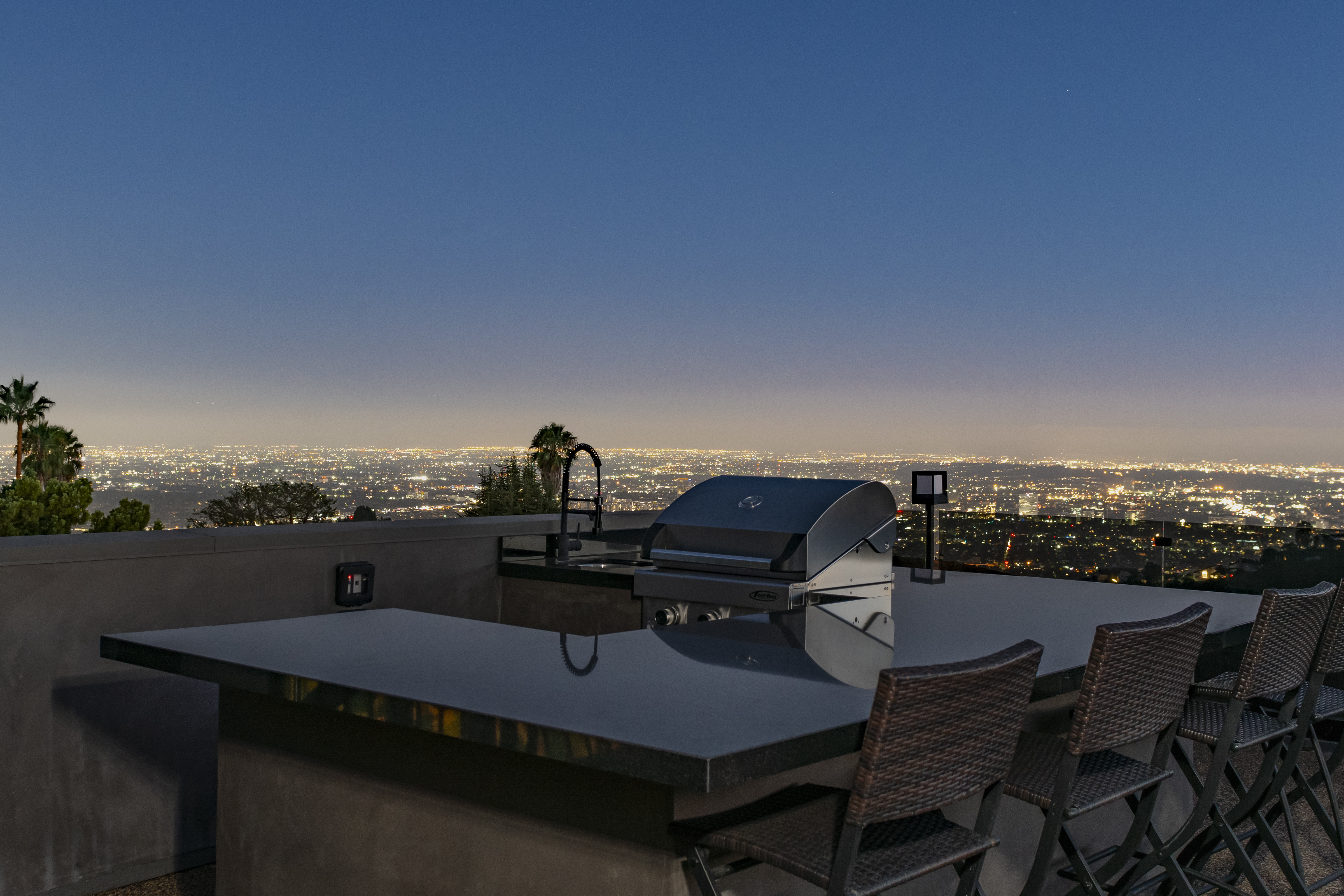 The ultimate luxury home in the hills, this striking, contemporary masterpiece sits in a most desirable area, near Mount Olympus. With a moody, dark exterior and a bright, spacious interior, it's a real statement home with impressive views across the city – especially at night.The emphasis here is on sociable space, so the living areas all flow neatly into one another and out into the garden. Comfy furnishings, modern art and clever use of natural light make for an open and inviting space, with a floating staircase providing a focal point. The kitchen is a chef's dream, and there's a choice of dining areas depending on your mood. But we think that while you're here you'll want to take full advantage of the professional grill station on the huge roof terrace.By day, dip in and out of your private pool and hot tub, or find a quiet space to relax – in one of two living rooms, on a bedroom balcony or up on the roof with a good book. And by night, head into the city for dinner, drinks and entertainment or host a soiree at home, light the fire pit and watch in wonder as the city lights start to sparkle.