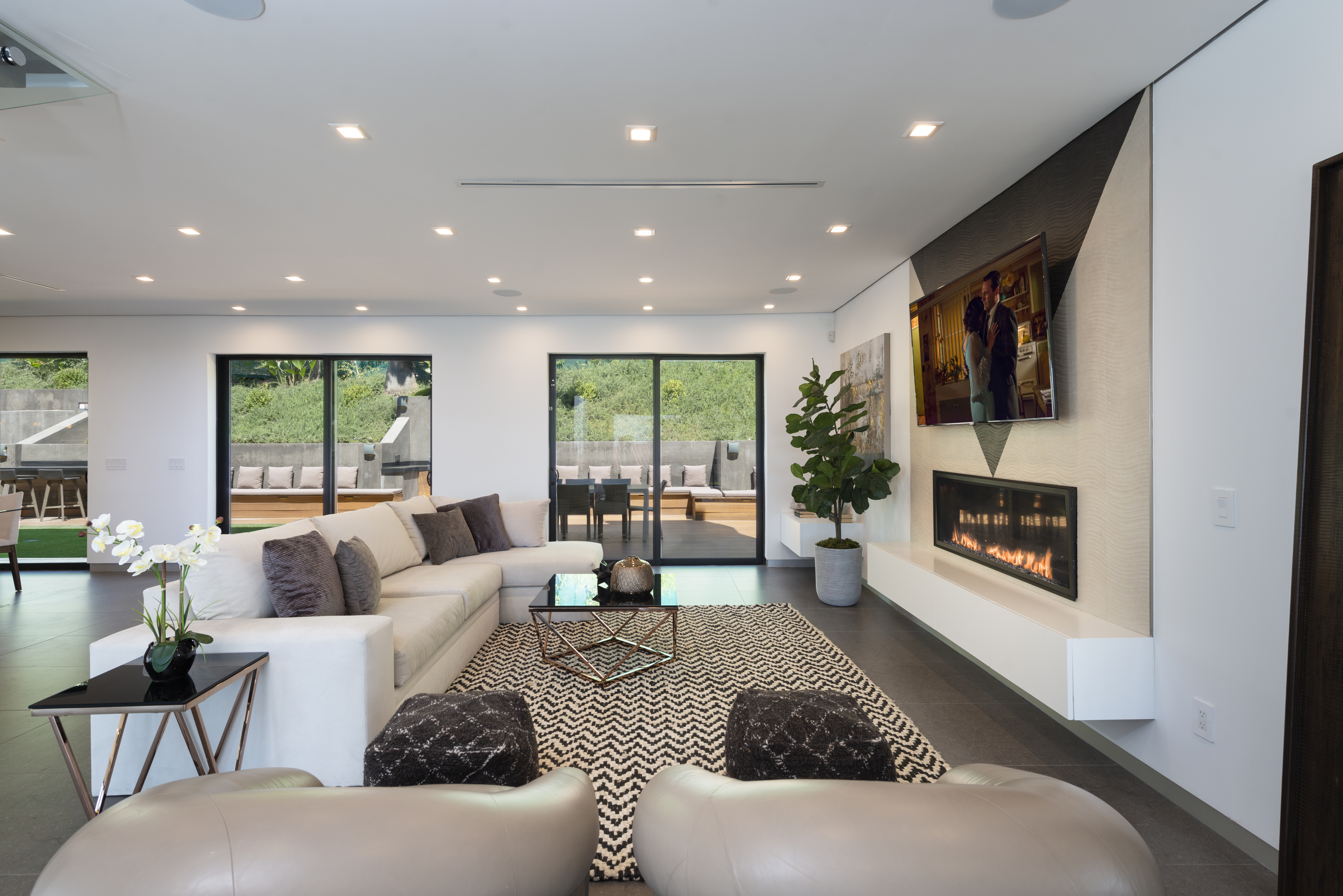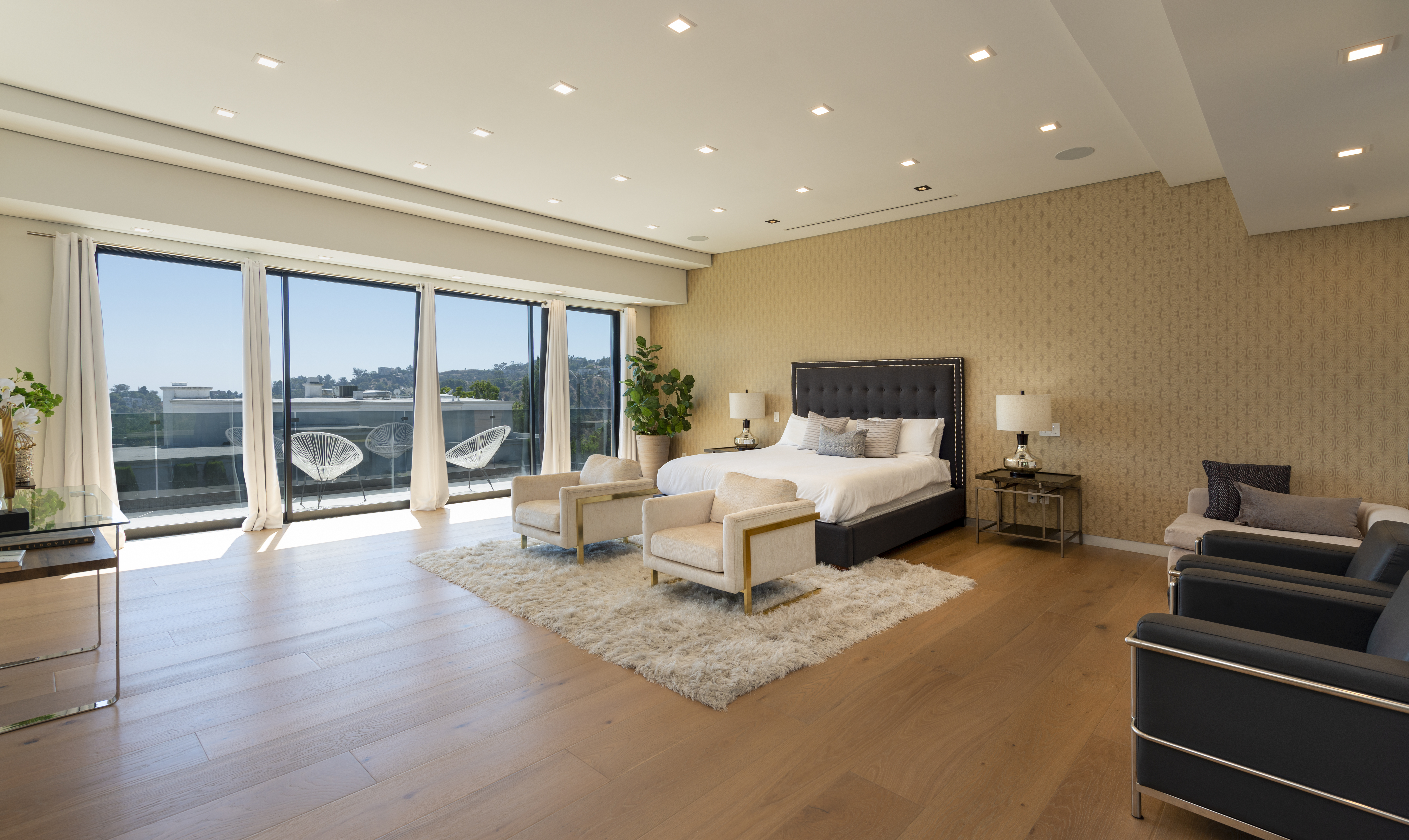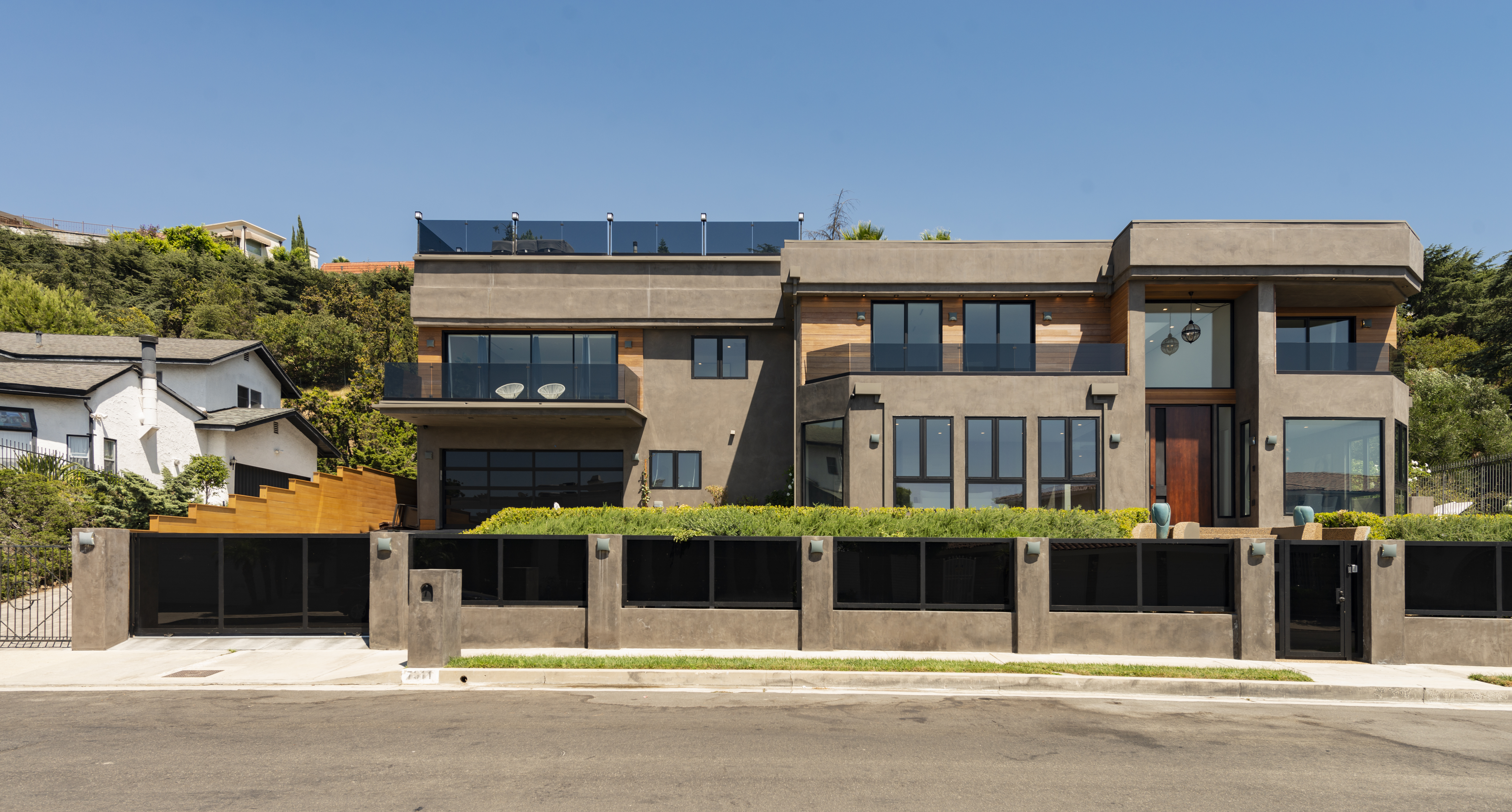 The ultimate luxury home in the hills, this striking, contemporary masterpiece sits in a most desirable area, near Mount Olympus. With a moody, dark exterior and a bright, spacious interior, it's a real statement home with impressive views across the city – especially at night.The emphasis here is on sociable space, so the living areas all flow neatly into one another and out into the garden. Comfy furnishings, modern art and clever use of natural light make for an open and inviting space, with a floating staircase providing a focal point. The kitchen is a chef's dream, and there's a choice of dining areas depending on your mood. But we think that while you're here you'll want to take full advantage of the professional grill station on the huge roof terrace.By day, dip in and out of your private pool and hot tub, or find a quiet space to relax – in one of two living rooms, on a bedroom balcony or up on the roof with a good book. And by night, head into the city for dinner, drinks and entertainment or host a soiree at home, light the fire pit and watch in wonder as the city lights start to sparkle.